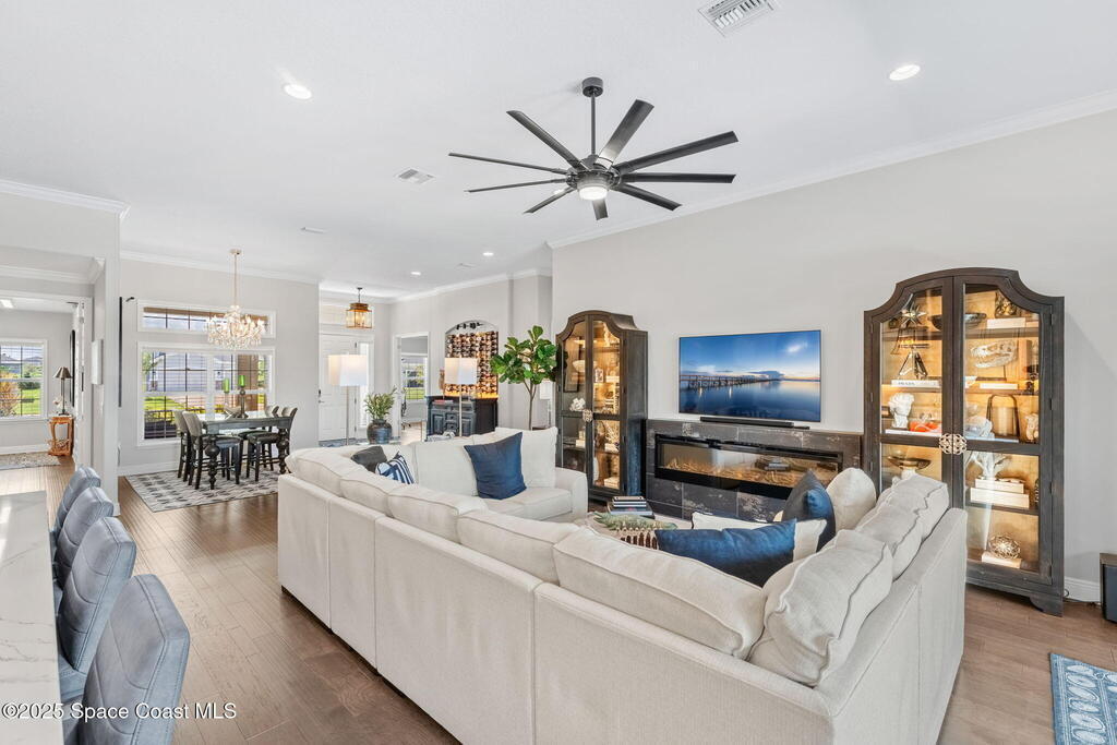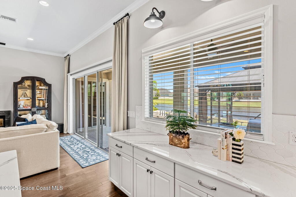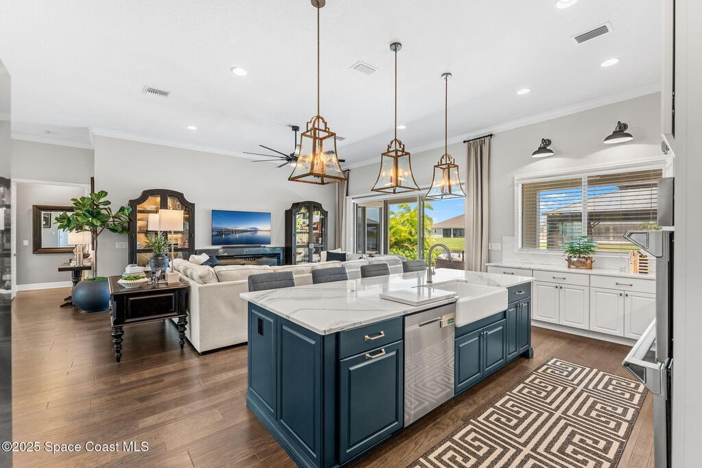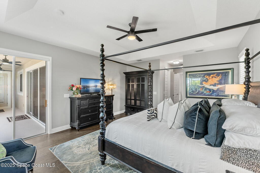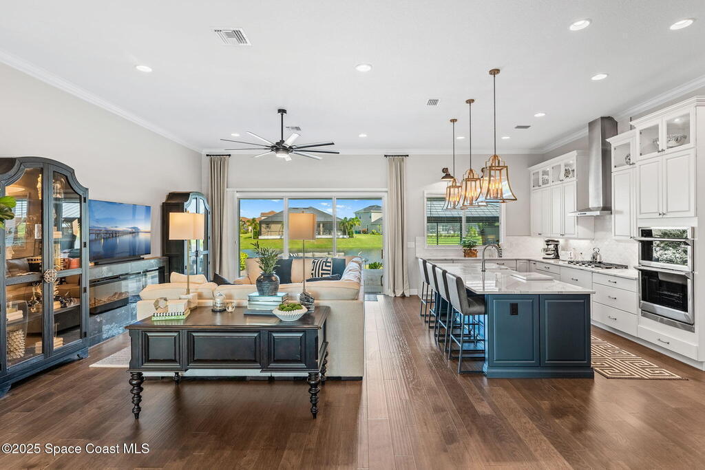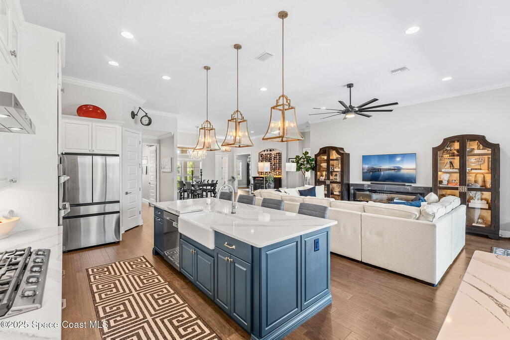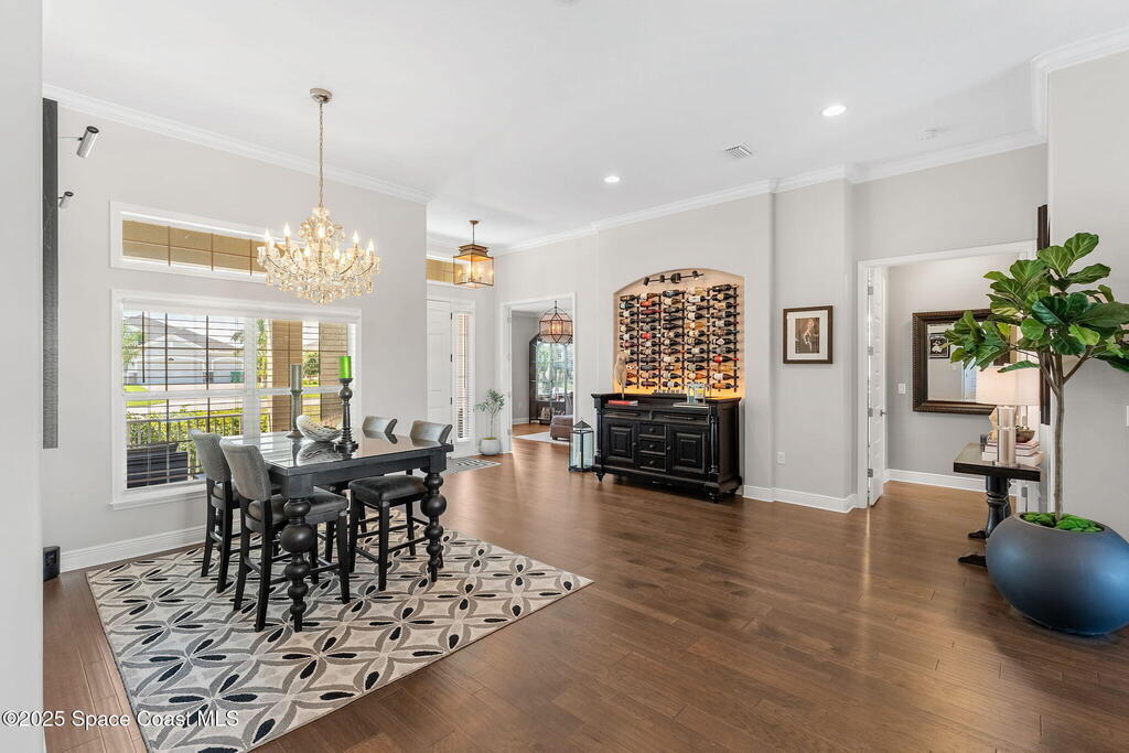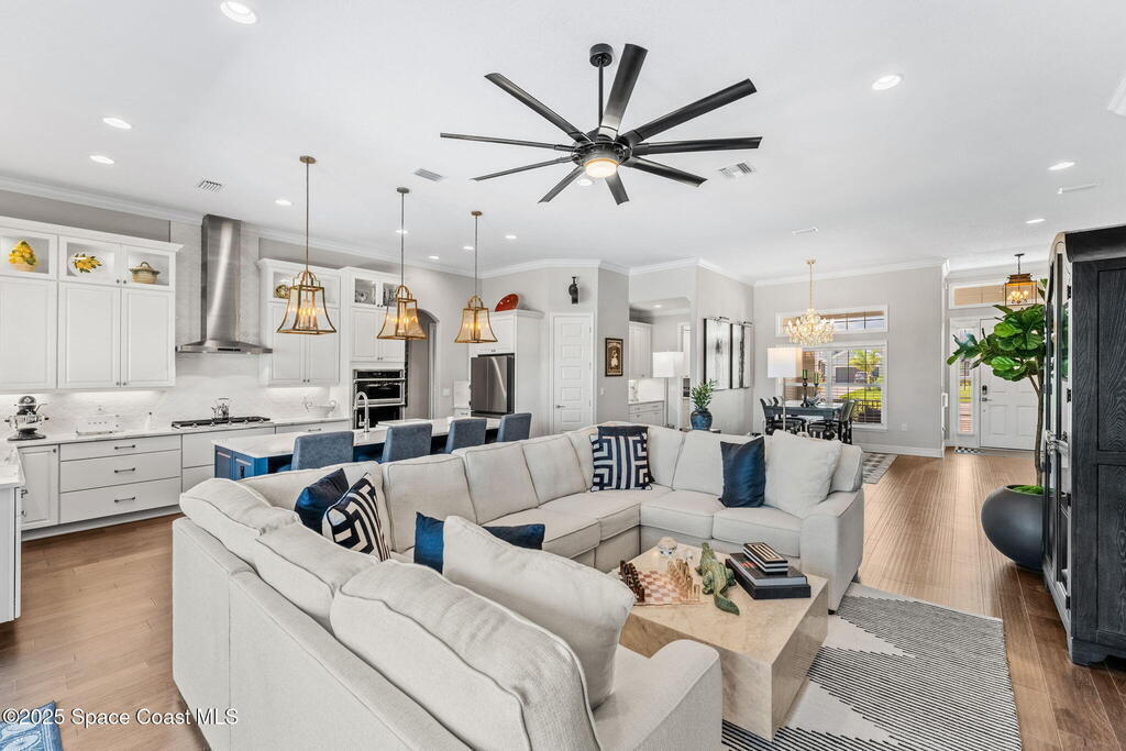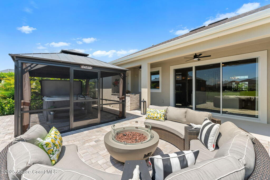 It almost sounds too good to be true: a fully redesigned 5-bed, 4-bath dream home where the showstopping kitchen is designed to entertain on a grand scale w/ 11'-4'' high ceilings throughout the main floor, multiple prep stations, abundant cabinetry, expansive counters & an XL walk-in pantry that transforms daily routines into gourmet experiences. Above the garage, a private mancave doubles as a 6th suite w/ built-in speakers, a bedroom, full bath & pre-plumbed for a wet bar--ready for game days or quiet escapes. A triple-pane slider opens to an extended paver patio featuring a natural gas line connected firepit & grill, full outdoor kitchen & hot tub tucked w/in a screened gazebo, all overlooking peaceful lake views w/ local exotic birds & star-filled skies. Add in the prestigious Addison Village lifestyle w/ access to resort-style pools, clubhouse, tennis & pickleball courts & community events, + the serenity of a quiet Viera neighborhood.