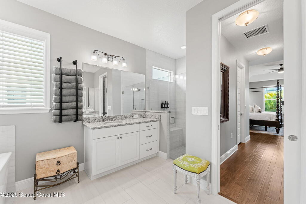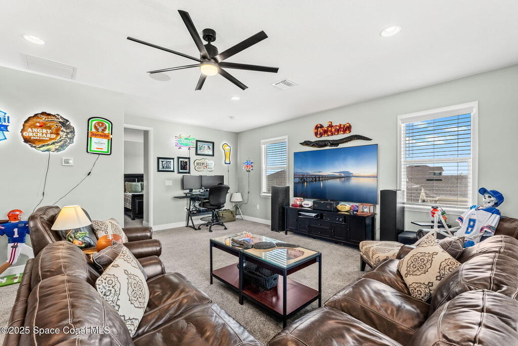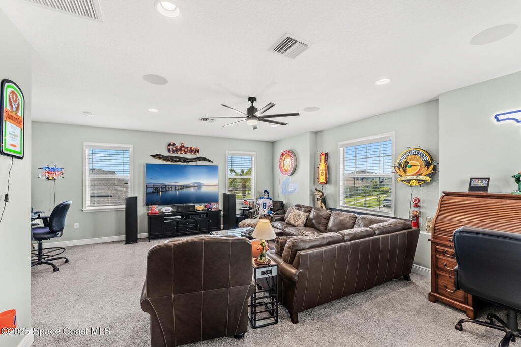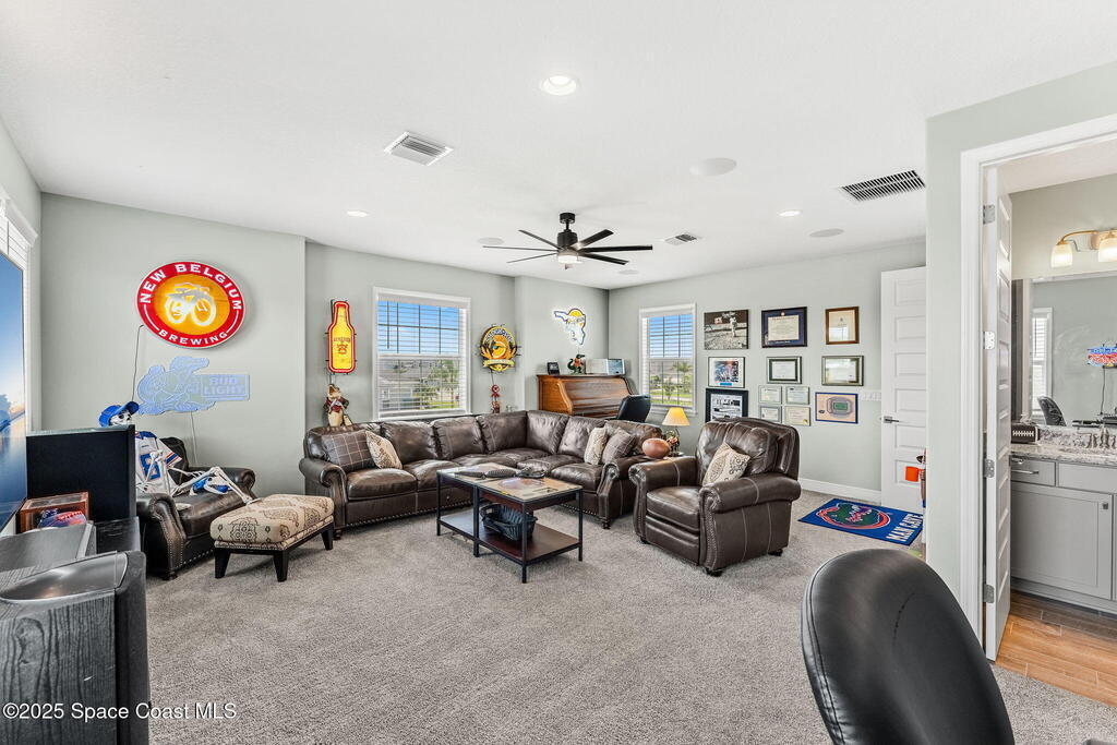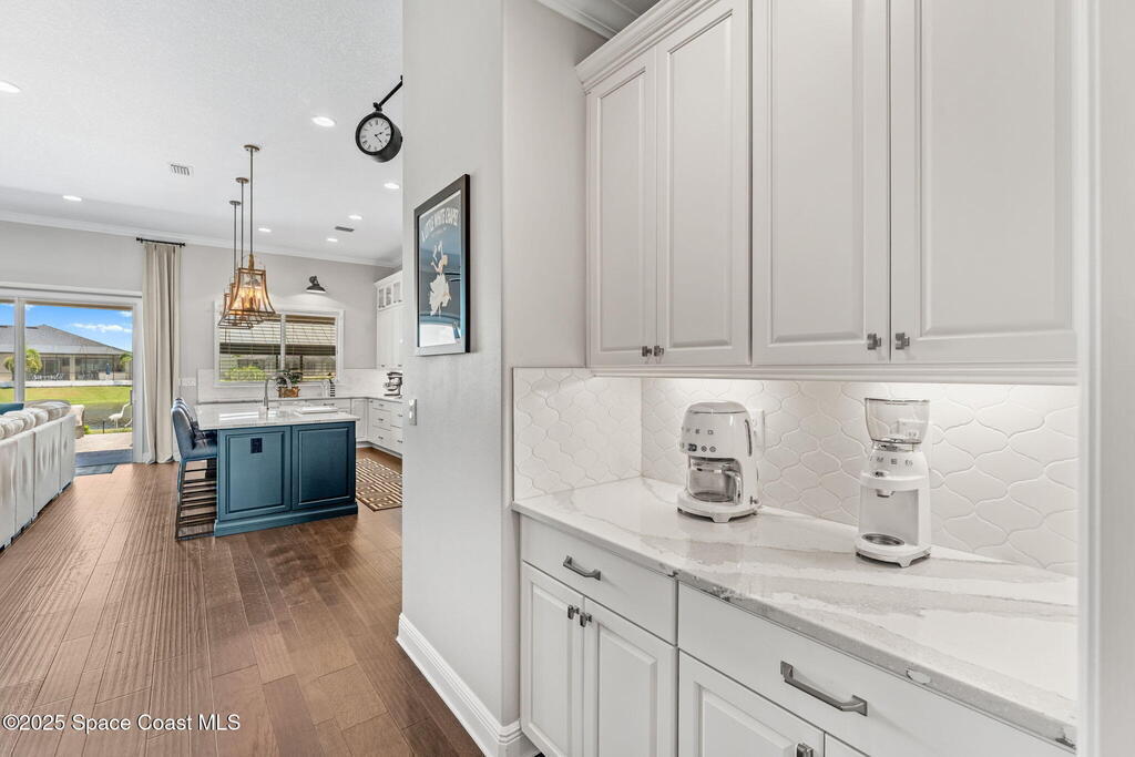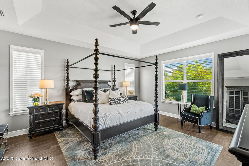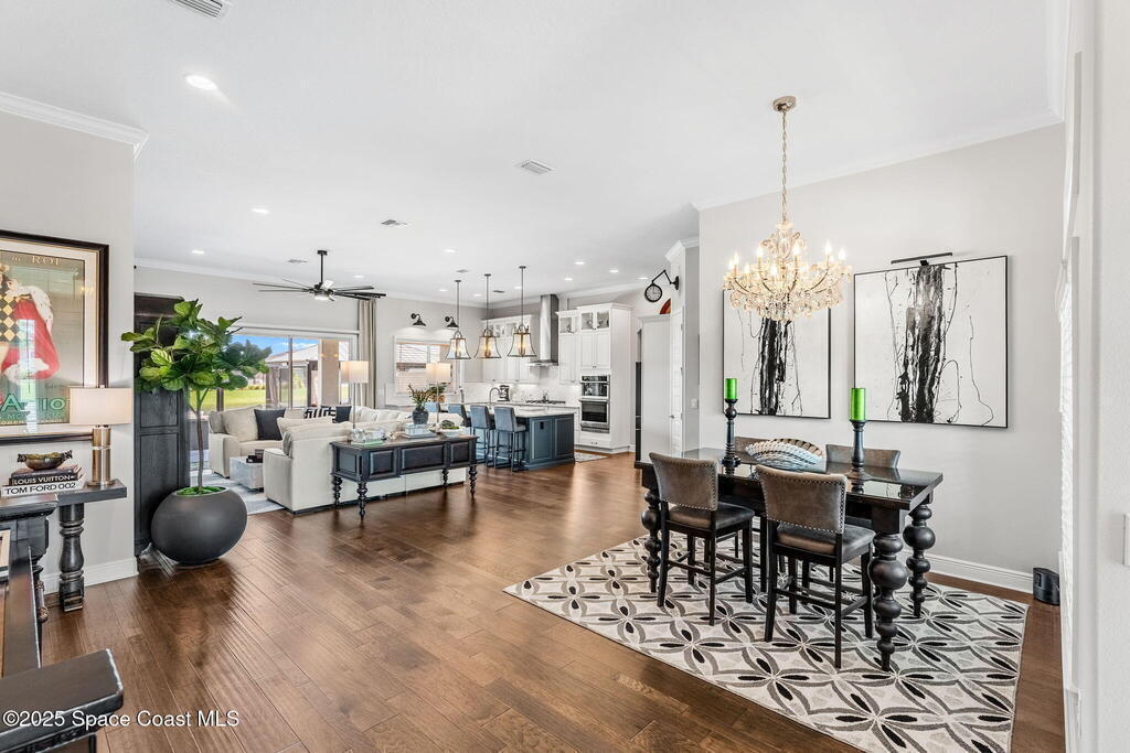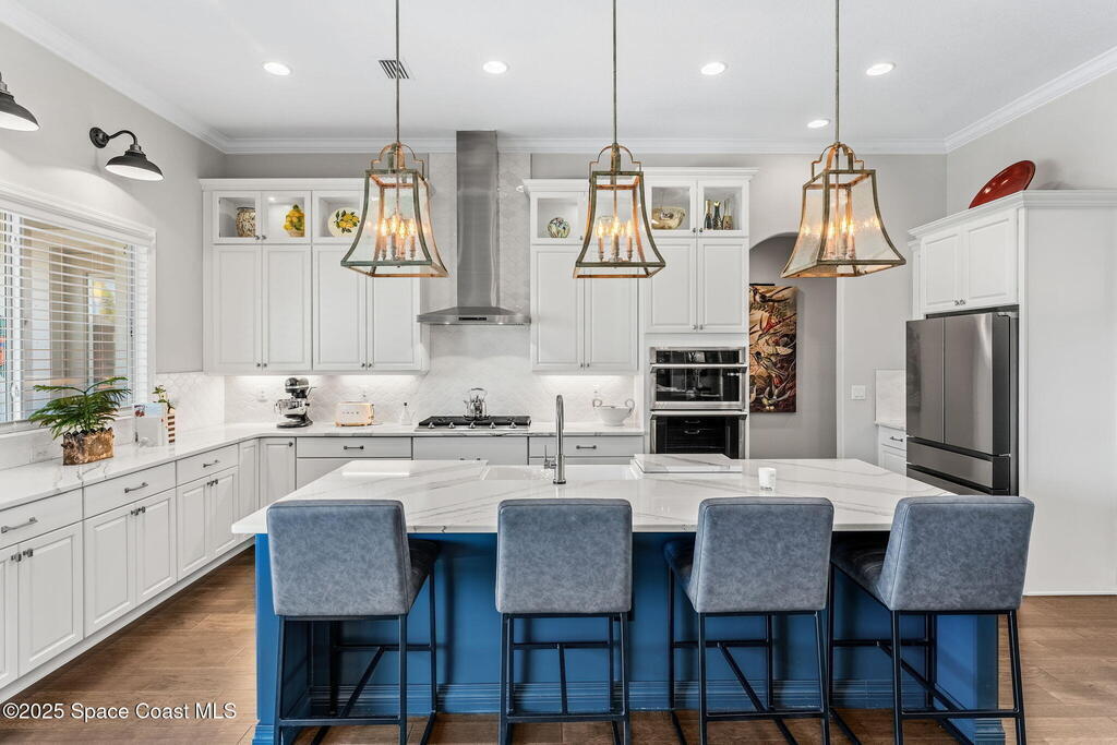 It almost sounds too good to be true: a fully redesigned 5-bed, 4-bath dream home where the showstopping kitchen is designed to entertain on a grand scale w/ 11'-4'' high ceilings throughout the main floor, multiple prep stations, abundant cabinetry, expansive counters & an XL walk-in pantry that transforms daily routines into gourmet experiences. Above the garage, a private mancave doubles as a 6th suite w/ built-in speakers, a bedroom, full bath & pre-plumbed for a wet bar--ready for game days or quiet escapes. A triple-pane slider opens to an extended paver patio featuring a natural gas line connected firepit & grill, full outdoor kitchen & hot tub tucked w/in a screened gazebo, all overlooking peaceful lake views w/ local exotic birds & star-filled skies. Add in the prestigious Addison Village lifestyle w/ access to resort-style pools, clubhouse, tennis & pickleball courts & community events, + the serenity of a quiet Viera neighborhood.