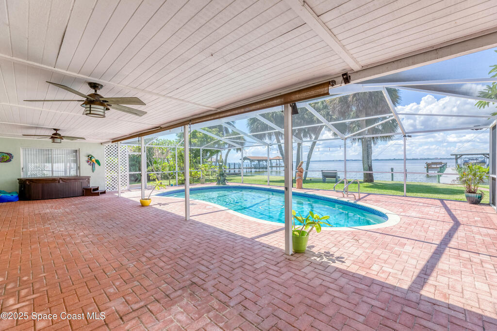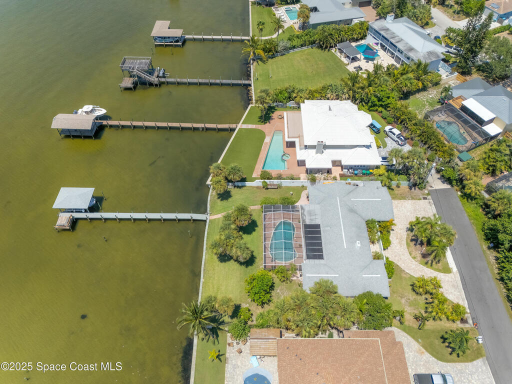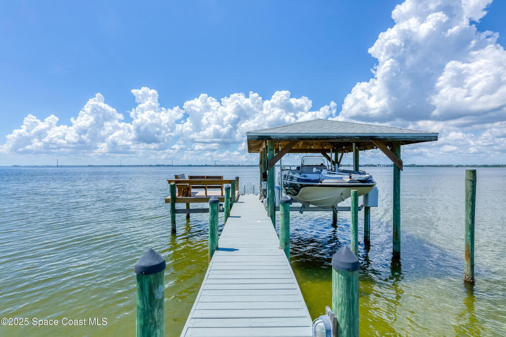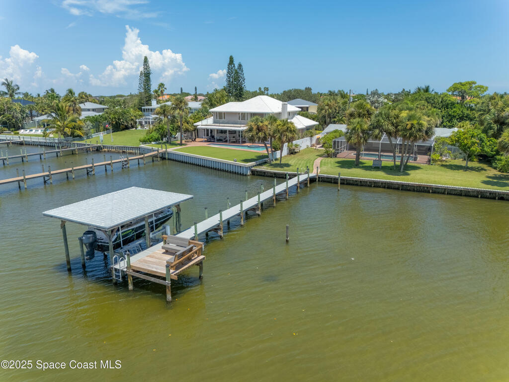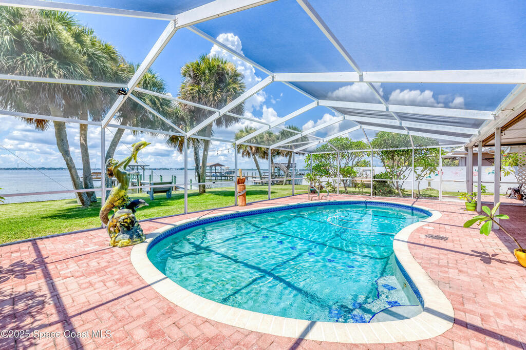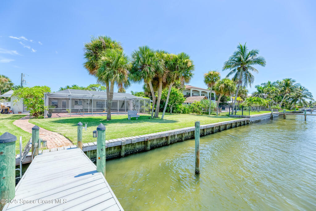 Riverfront Retreat in Melbourne Beach. Discover the perfect blend of tranquility and coastal luxury in this beautifully maintained 3-bedroom, 2-bath single-family home, ideally situated on a dead-end road for ultimate privacy. With 2,110 square feet of open-concept living, this home features 100 feet of direct frontage on the Indian River Lagoon with breathtaking 1-mile wide water views and unforgettable sunsets. Enjoy the Florida lifestyle to the fullest with a 100-foot private dock equipped with a 10,000 lb. boat lift and a cozy seating area, perfect for fishing, boating, or simply soaking in the serenity. The screened-in saltwater pool and paved lanai create the ideal outdoor oasis, surrounded by swaying palm trees and unobstructed water vistas.Inside, the home boasts tile flooring throughout, a cozy fireplace, and a modern kitchen with quartz countertop ideal for entertaining or family gatherings. The split bedroom floor plan ensures privacy,