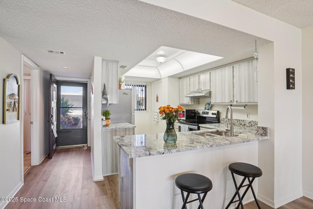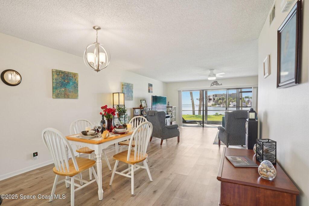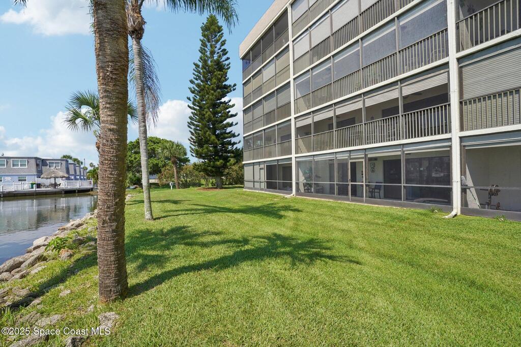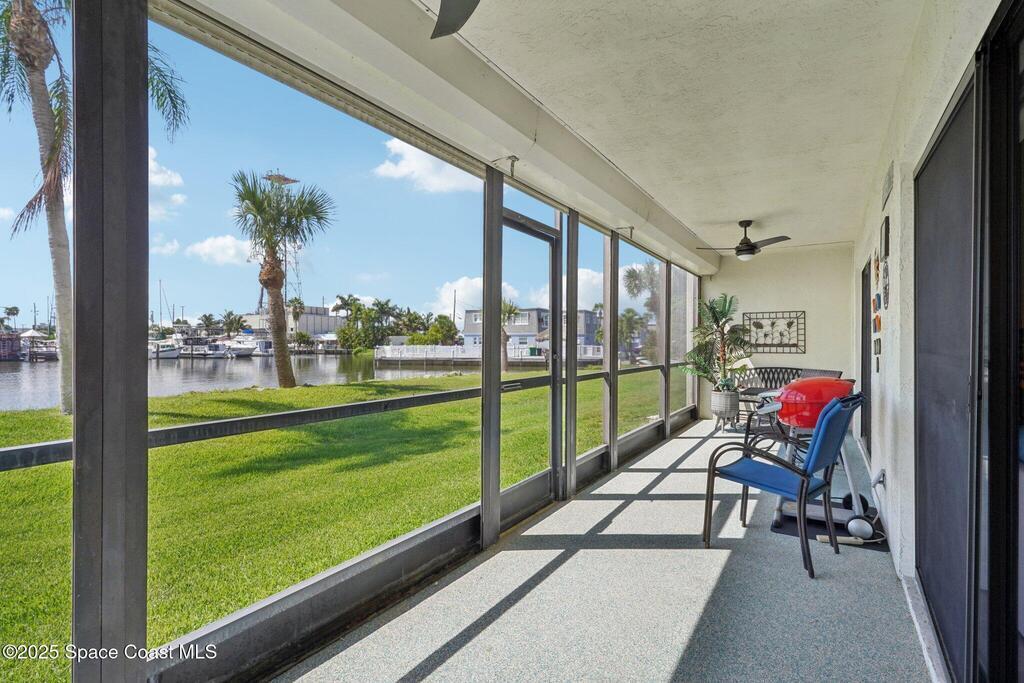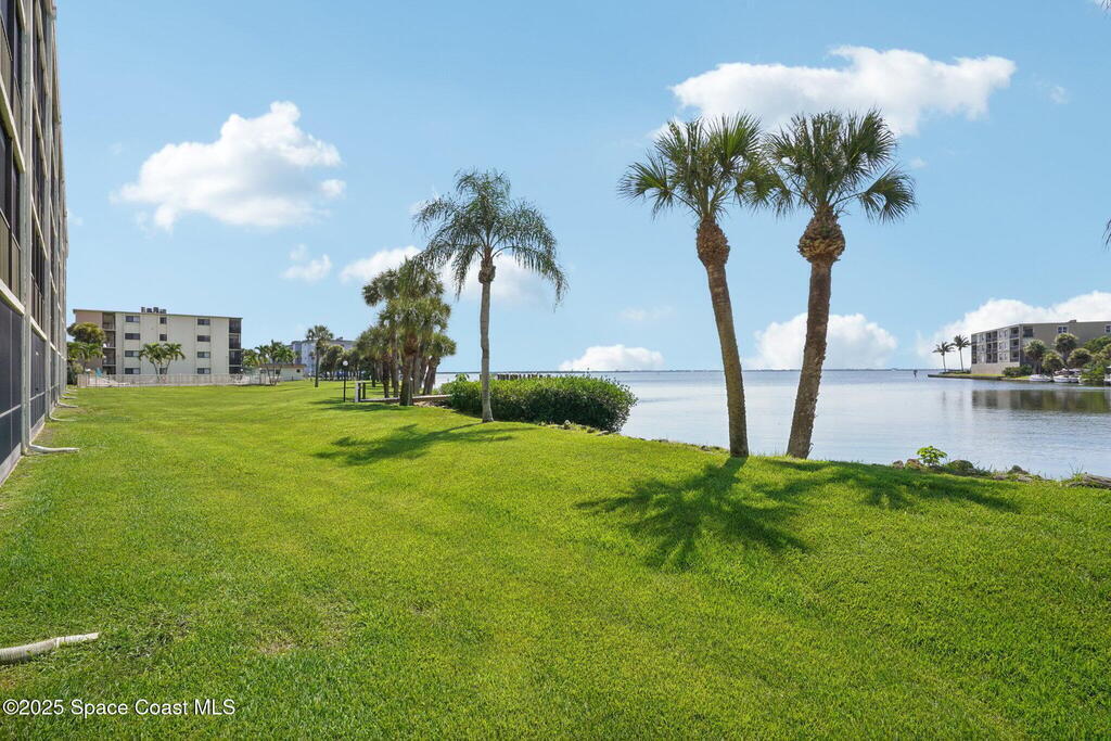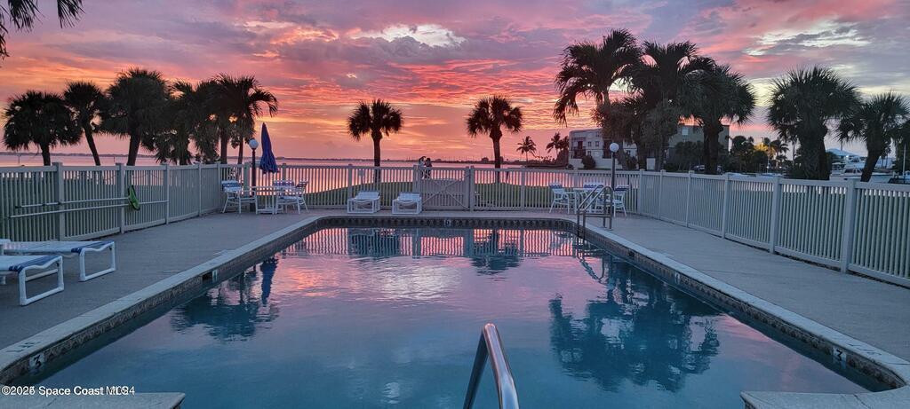 Imagine waking up to sparkling Waterfront views on the Banana River, where every day feels like Paradise. This direct Riverfront 1st-floor Cocoa Beach condo offers carefree, fully furnished living--no stairs, no elevator & your garage just steps away. From the moment you enter, water views fill the open floor plan through oversized sliders to your private balcony. Freshly updated with neutral paint, vinyl wood-look floors, remodeled kitchen with granite, cabinets & stainless appliances. Both baths are updated, including the owner's suite and the walk-in shower. Holidays are magical--decorate your balcony & gather with friends to watch the dazzling Christmas Boat Parade. Enjoy sunrise beach walks, surfing, kayaking, paddleboarding, fishing from the dock, or relaxing at your riverside pool. End each day with breathtaking sunsets & a cold drink. With festivals, art shows, Surfing Santa's & boat races nearby--your dream waterfront oasis awaits! AC 2021 & hurricane shutters.