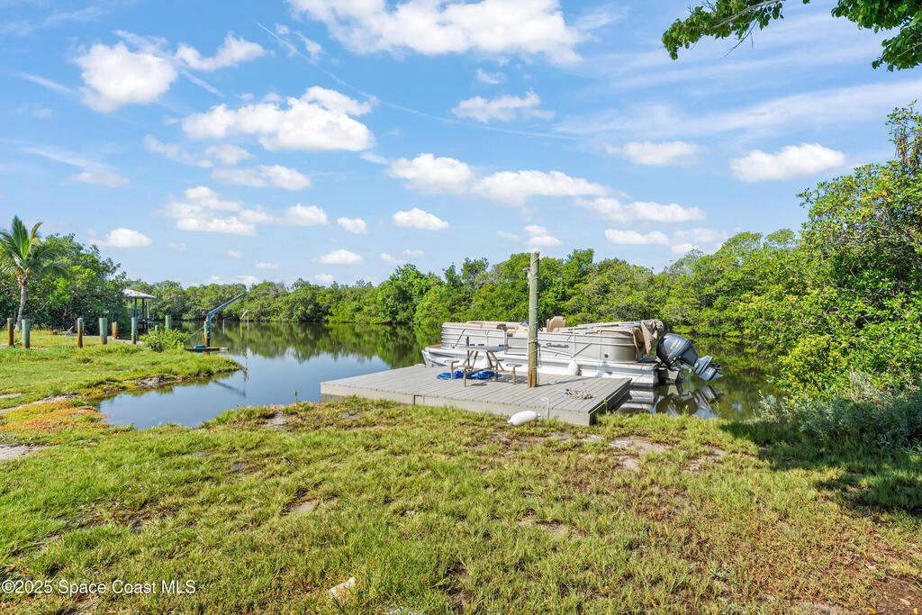 Discover a rare opportunity to own 1.66 acres of waterfront living in Merritt Island at 365 Newfound Harbor. This unique property offers both land and water access, creating a lifestyle that is private, spacious, and deeply connected to Florida's natural beauty. The home has been thoughtfully updated with a new metal roof, a fully renovated kitchen with stainless steel appliances, luxury vinyl plank flooring, and updated bathrooms. Fresh paint, modern finishes, and a beautiful interior make it move-in ready, while the 336 sq ft Florida room with dual ACs and a newly screened patio provide spaces to enjoy the outdoors year-round. Step onto your rebuilt dock and spend the day fishing, kayaking, or taking a boat out to the main river. With room to add a pool, outdoor kitchen, or even a guest house, this property offers endless potential. Large waterfront lots of this scale are a rarity in Merritt Island, making this a truly special find.