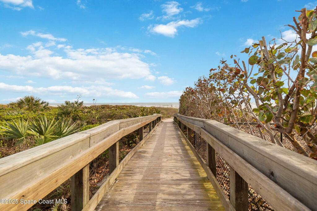 Well cared for furnished 2 bed/2.5 bath townhouse that features vaulted ceilings, an open floorplan and so much more! Enjoy coffee on your enclosed private patio or cool off in 1 of the 3 community pools this resort-style community has to offer. This quiet beachside retreat makes it a wonderful place to live or rent giving you the opportunity to own a slice of paradise. Living here offers a gated community, well-maintained community grounds, sun deck, very large workout facility, private & secured access to the beach but also racquet/pickleball and tennis court. Enjoy rockets launches in your backyard, colorful peacocks strolling around, 40 minutes to Orlando Airport/Parks and local restaurants in in this tropical community!