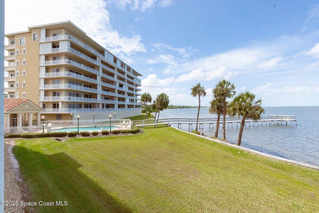 Coastal living at its best! Awaken each morning to million-dollar riverfront views and spectacular sunrises from the comfort of your large, wrap-around, private balcony. A wall of glass creates a seamless transition, showcasing amazing Indian River views from the comfort of your living room. Only 15 minutes from the Atlantic beaches, this spacious condo is truly the epitome of easy Florida living! The freshly painted, open floor plan unites the kitchen, dining area and living room, making entertainment a breeze! The kitchen is perfect for the culinary enthusiast, featuring a large island and an abundance of granite counter-tops and cabinetry. There are no compromises in this well-maintained condominium community which features a heated pool, clubhouse and one parking space w/ storage in the ground-floor garage. Additional open parking is available. An evening stroll on the pier may result in a dolphin or Manatee encounter! Why wait? Get your slice of Florida paradise now.