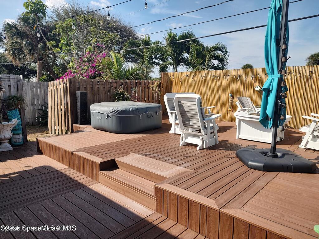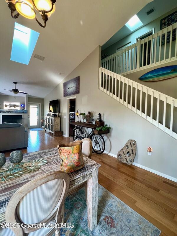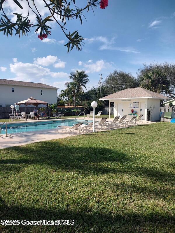 Florida Easy Living and Easy Maintenance! Updated, upgrades and beautiful 3 bedroom, 2 1/2 bath , 2 car garage home. Bring the Dog! It's across from the Dog Beach! Close to Beach Access, Dog Beach, Shopping, Restaurants and more. This beautifully redone home features hardwood floors, soaring ceilings, main floor owner retreat with garden tub, HUGE CLOSETS, gas fireplace, eat-in kitchen with massive cabinets, indoor laundry. Upstairs you have two bedrooms and a full bath. LARGE outdoor living deck, privacy fence, and right next to the community pool. Rent includes lawn care, Basic Cable, Pool, and Exterior. Gas Range and Gas Water Heater.