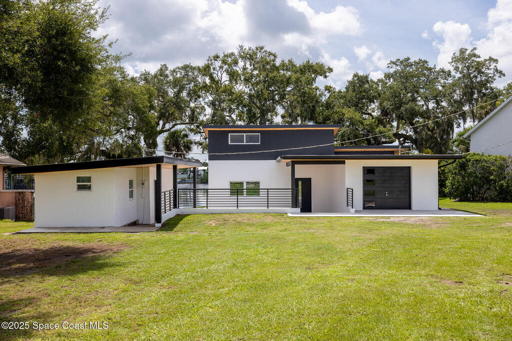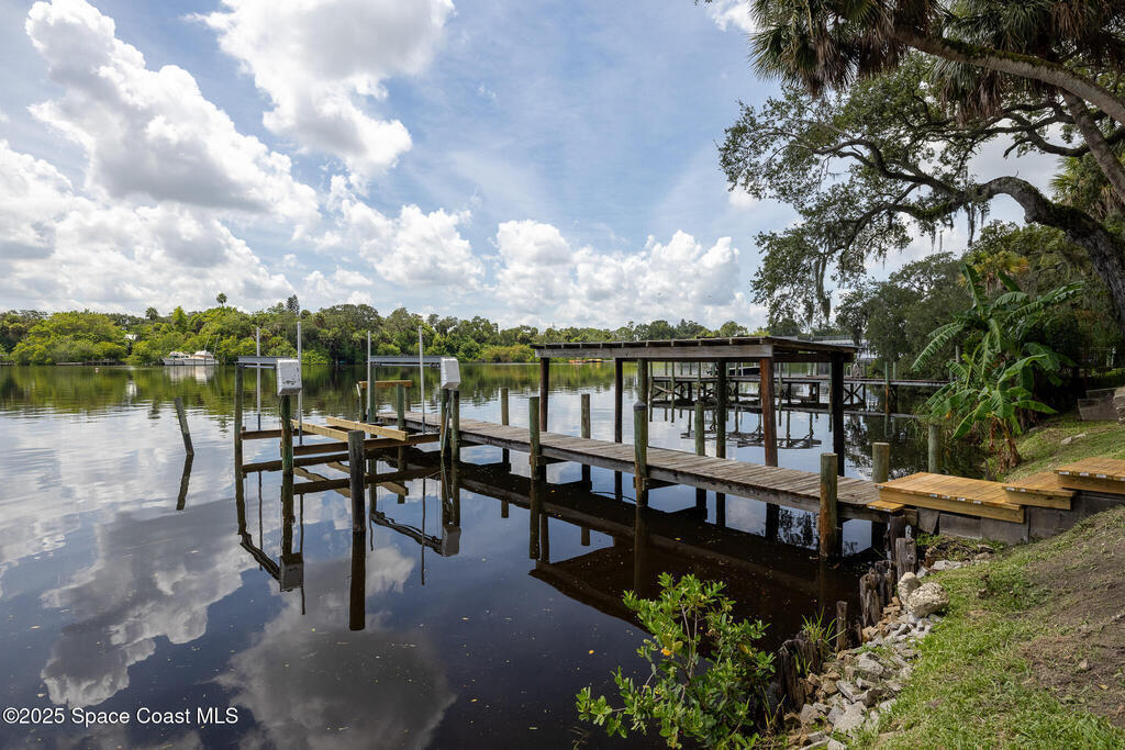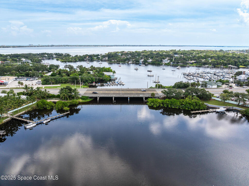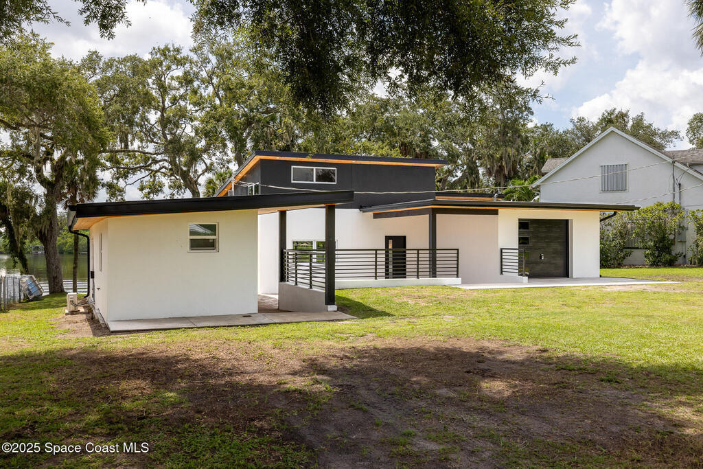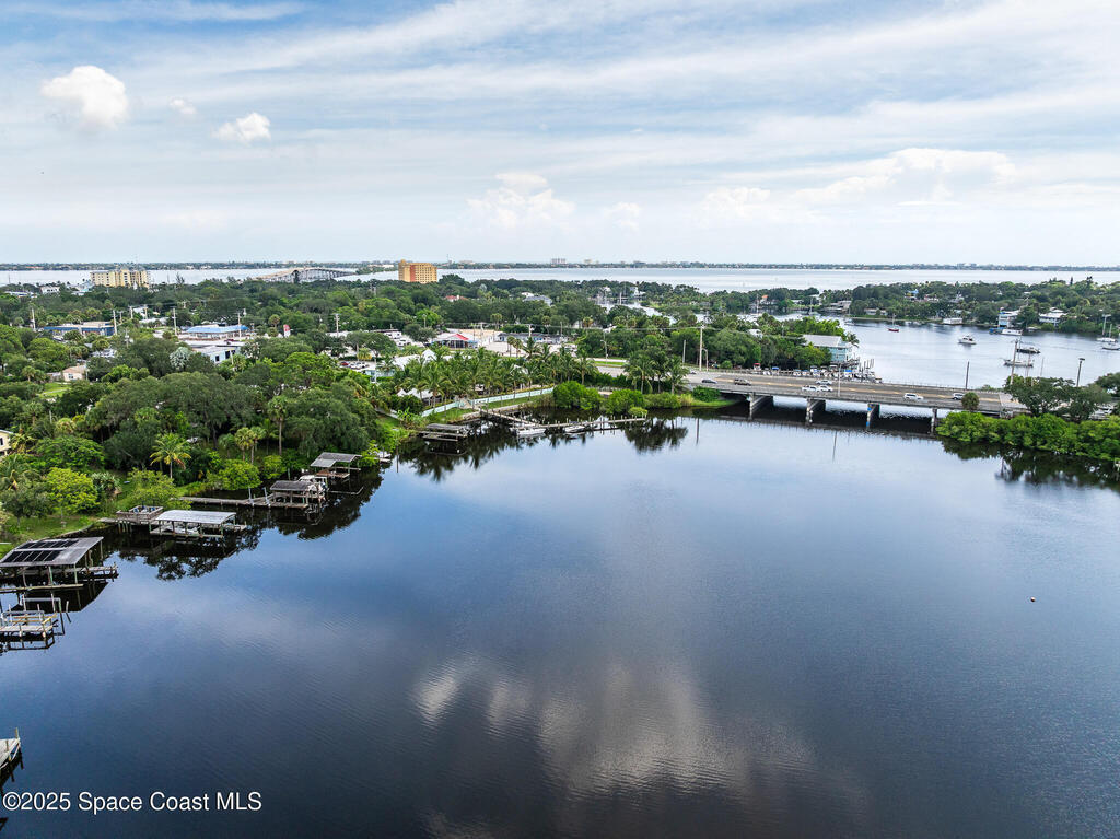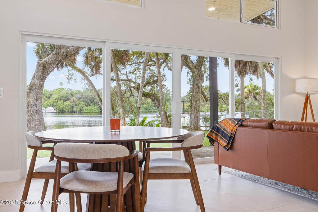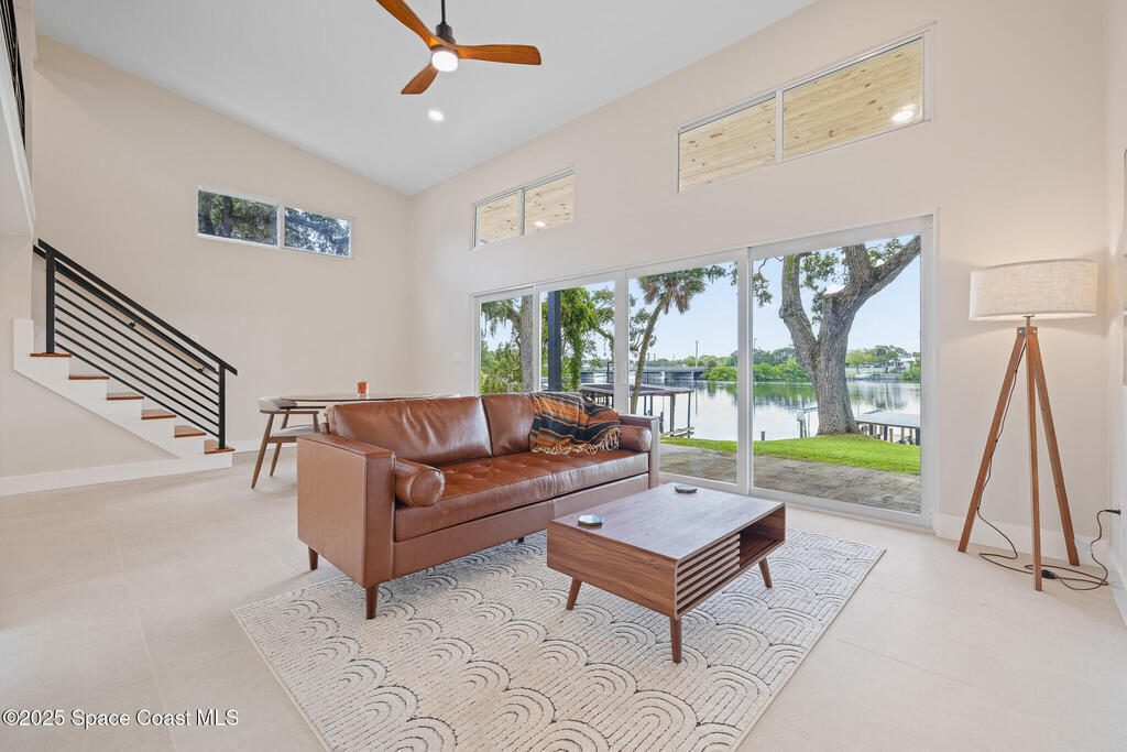 This 2025 remodeled riverfront sanctuary has been completely reimagined, blending sleek modern design with the timeless beauty of Old Florida. Nestled beneath moss-draped oaks on nearly half an acre, the property offers just over 2,000 square feet between the main home and detached guest suite. Taken down to the studs and rebuilt to today's highest standards, every element is new--roof, AC, electrical, plumbing, insulation, hurricane-impact windows and doors. Located just a half a mile from Downtown Eau Gallie, less than a 10 minute walk to bars, restaurants, shopping and only 10 minutes from the beach.The main home features three bedrooms and two baths with an airy open layout. Downstairs, expansive 24x48 porcelain tile creates a refined, contemporary feel, while the loft glows with beautifully restored real wood flooring. A chef's kitchen with all-new appliances opens to light-filled living and dining spaces, leading to an oversized covered back porch wrapped in