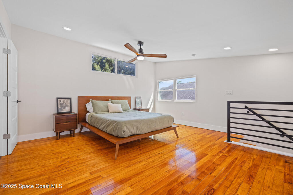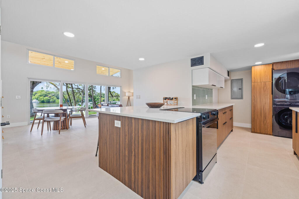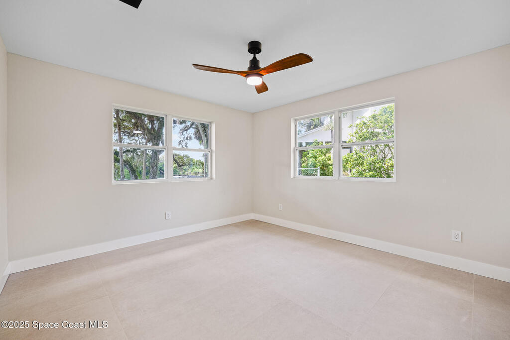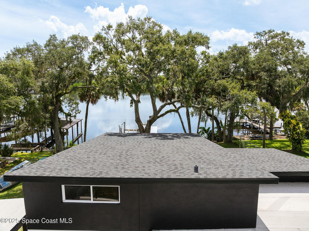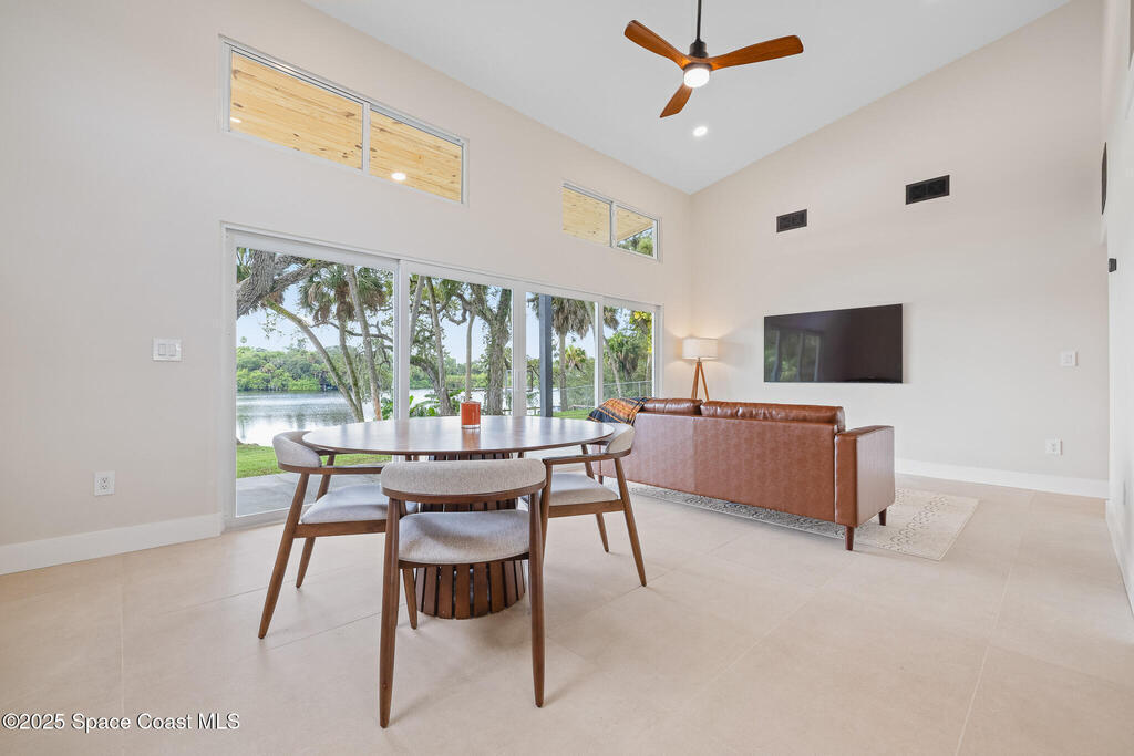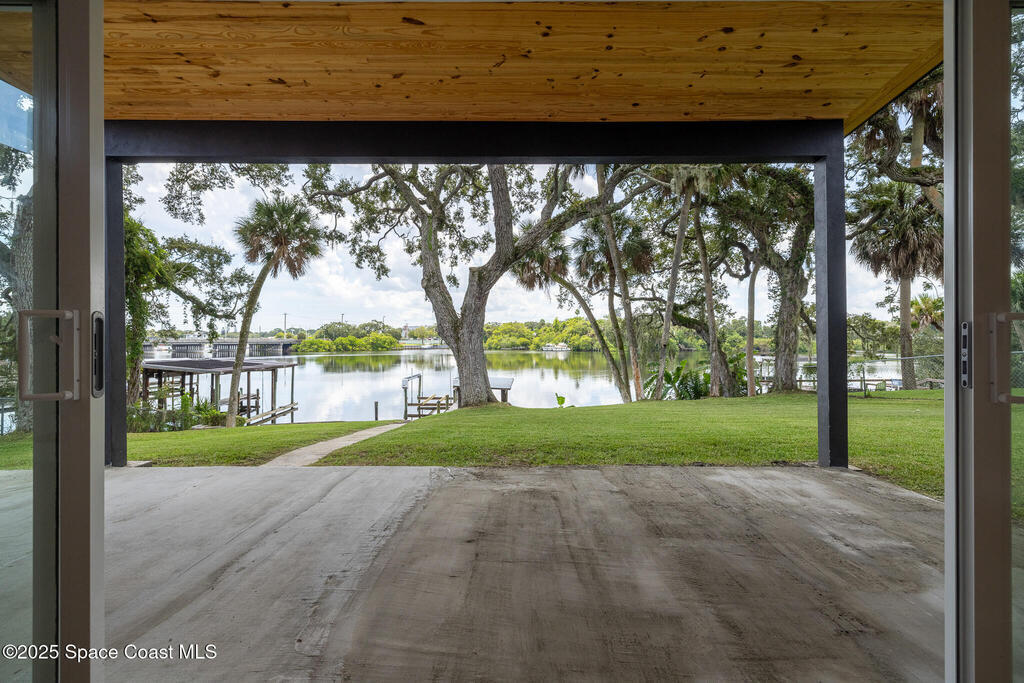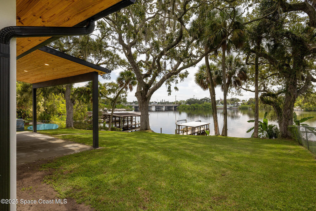 This 2025 remodeled riverfront sanctuary has been completely reimagined, blending sleek modern design with the timeless beauty of Old Florida. Nestled beneath moss-draped oaks on nearly half an acre, the property offers just over 2,000 square feet between the main home and detached guest suite. Taken down to the studs and rebuilt to today's highest standards, every element is new--roof, AC, electrical, plumbing, insulation, hurricane-impact windows and doors. Located just a half a mile from Downtown Eau Gallie, less than a 10 minute walk to bars, restaurants, shopping and only 10 minutes from the beach.The main home features three bedrooms and two baths with an airy open layout. Downstairs, expansive 24x48 porcelain tile creates a refined, contemporary feel, while the loft glows with beautifully restored real wood flooring. A chef's kitchen with all-new appliances opens to light-filled living and dining spaces, leading to an oversized covered back porch wrapped in