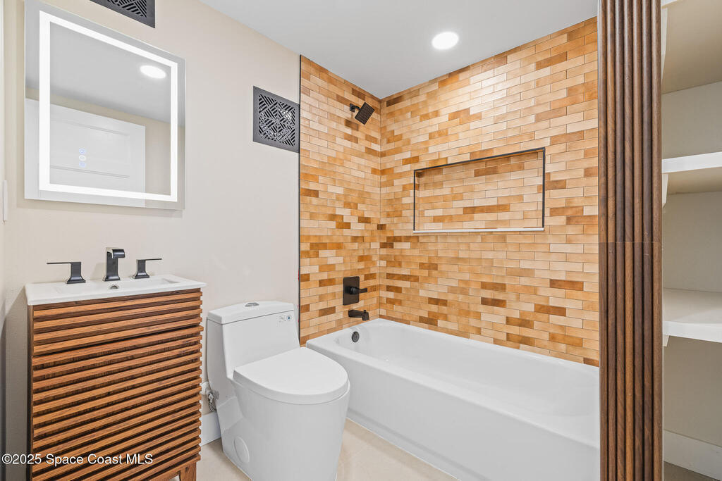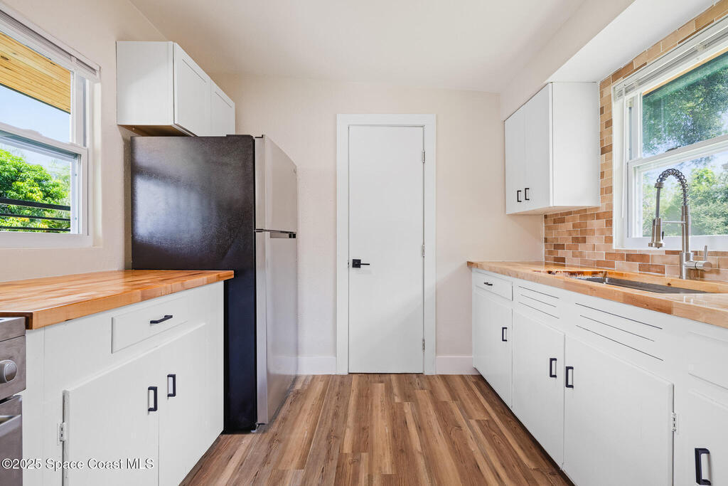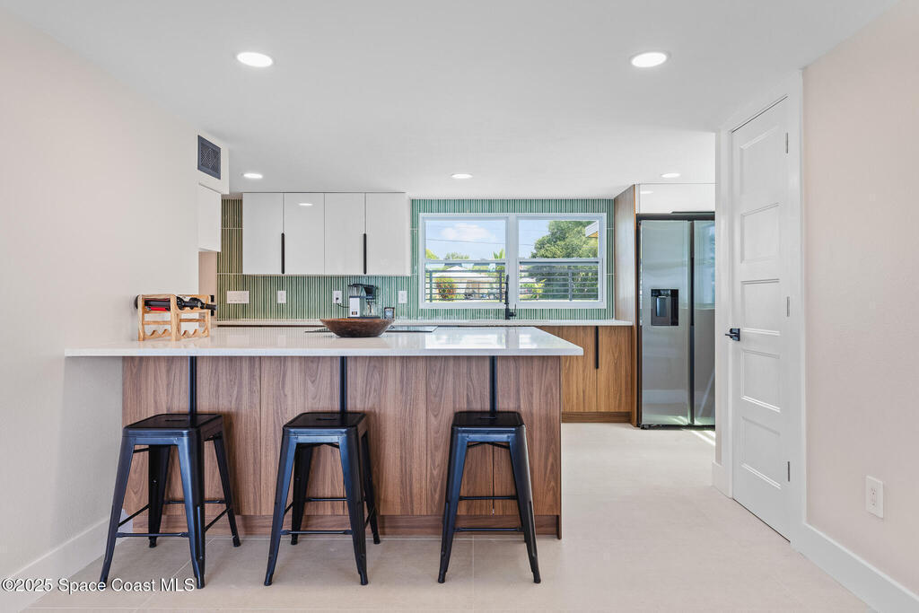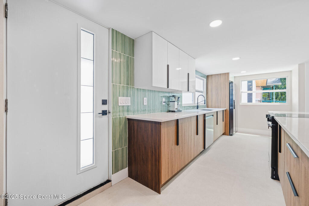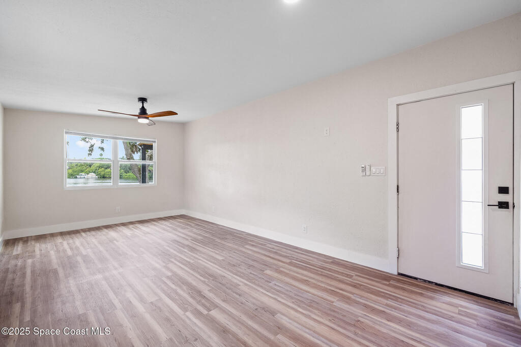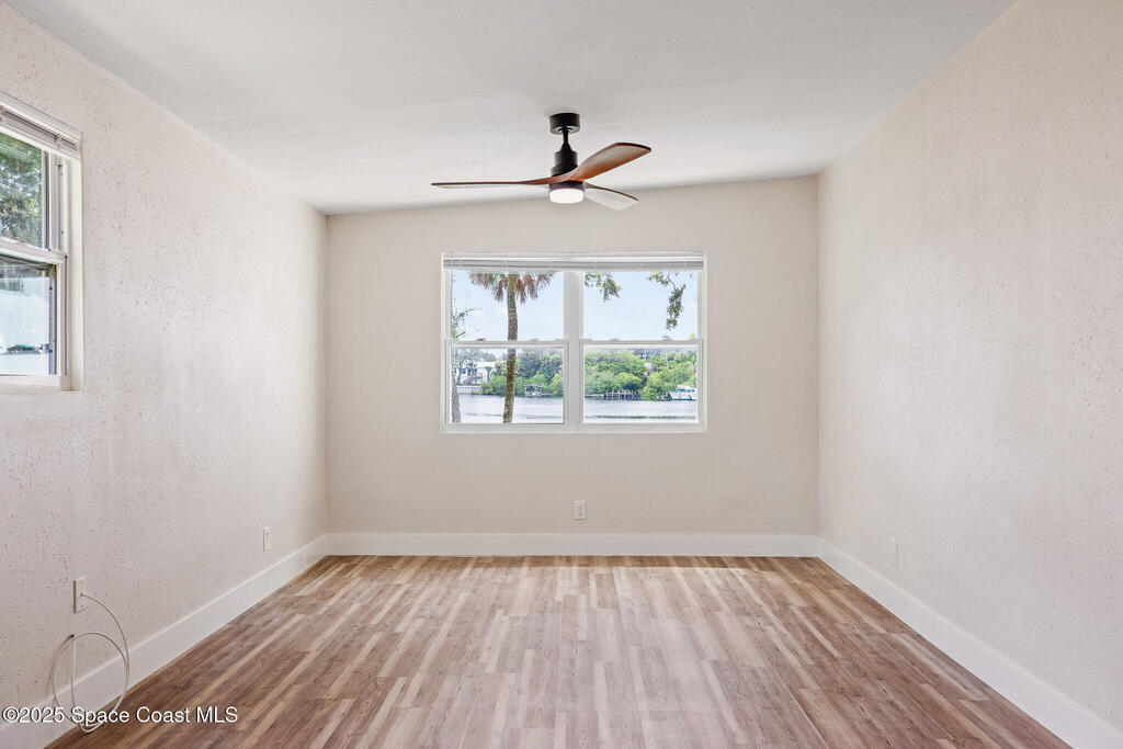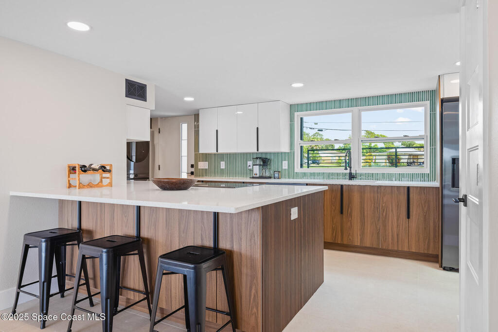 This 2025 remodeled riverfront sanctuary has been completely reimagined, blending sleek modern design with the timeless beauty of Old Florida. Nestled beneath moss-draped oaks on nearly half an acre, the property offers just over 2,000 square feet between the main home and detached guest suite. Taken down to the studs and rebuilt to today's highest standards, every element is new--roof, AC, electrical, plumbing, insulation, hurricane-impact windows and doors. Located just a half a mile from Downtown Eau Gallie, less than a 10 minute walk to bars, restaurants, shopping and only 10 minutes from the beach.The main home features three bedrooms and two baths with an airy open layout. Downstairs, expansive 24x48 porcelain tile creates a refined, contemporary feel, while the loft glows with beautifully restored real wood flooring. A chef's kitchen with all-new appliances opens to light-filled living and dining spaces, leading to an oversized covered back porch wrapped in