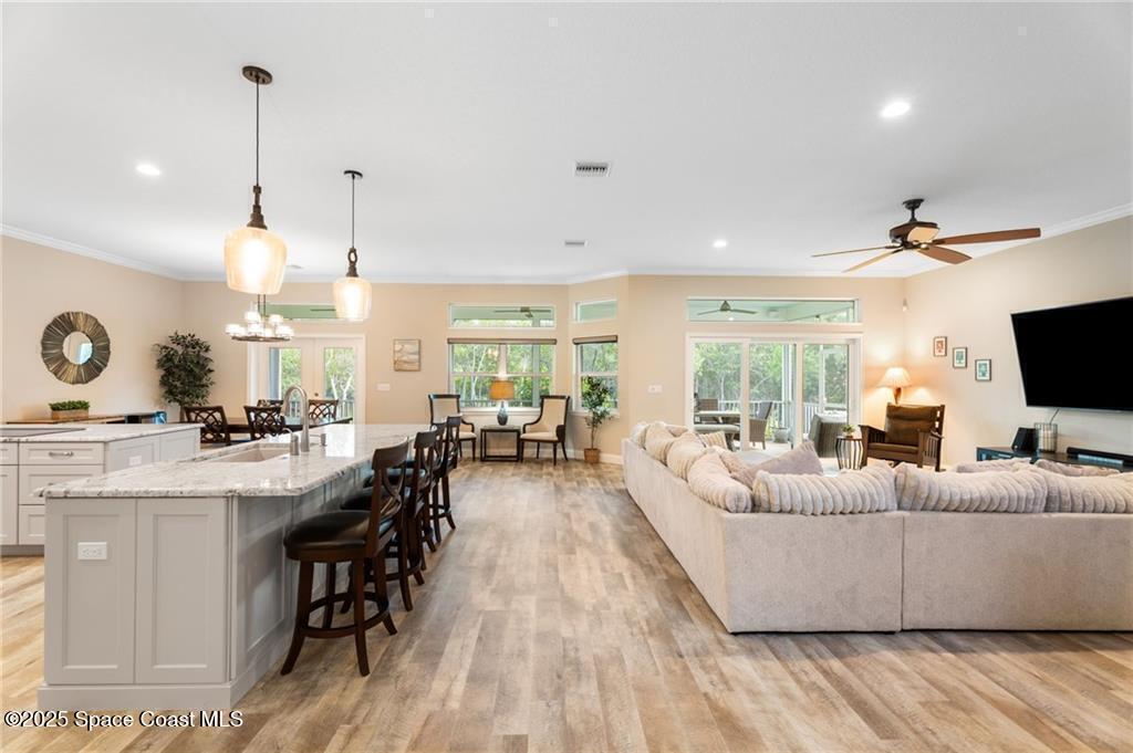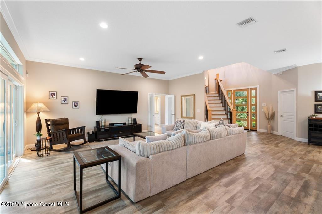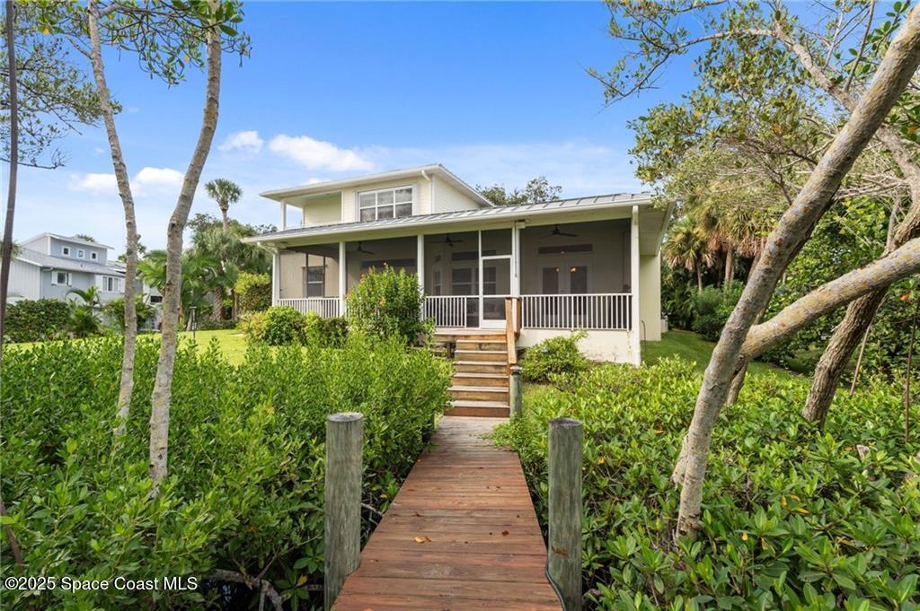 WATERFRONT! Incomparable value! Stately oak-canopied lane leads to this reimagined 4BD modern design of functionality, easy living, water + nature lover's paradise. Absolute privacy to enjoy magical sunsets, 2 docks with ample access for fishing, kayaking, jet skiing, manatee/otter/dolphin sightings. Solid construction, impact windows, metal roof, oversized garage, lavish maple & iron staircase, sumptuous new primary suite with ultra-luxurious bath, 2 whimsical porches, highly elevated lot. Prime location near beaches & Sebastian Inlet. Non-deed restricted. No HOA. Phenomenal Airbnb potential.