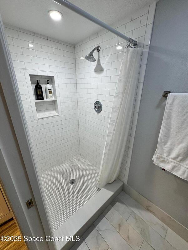 This home has calming natural light and a neutral paint scheme. The interior was completely remodeled (Nov 2019) and new roof (Aug 2025). Featuring Tempur-pedic carpet, new tile, recessed lighting, and new ceiling fans. Kitchen nicely updated with almond/coffee stained cabinetry, granite, and stainless steel appliances. The extra large living room and dining area open up to the covered screened porch. It offers 3 spacious bedrooms, 2.5 baths. Two of the upstairs bedrooms open to connected balcony perfect for rocket launches. Primary bedroom offers an ensuite bathroom with walk-in closet. Bathrooms completely updated with subway tile, white cabinetry and fixtures. This home is located in a desirable area- convenient to the YMCA, Tituslanding and more! Agent Owned and motivated to sell.