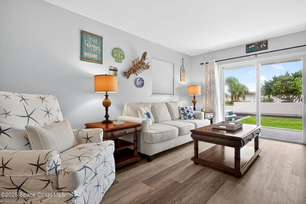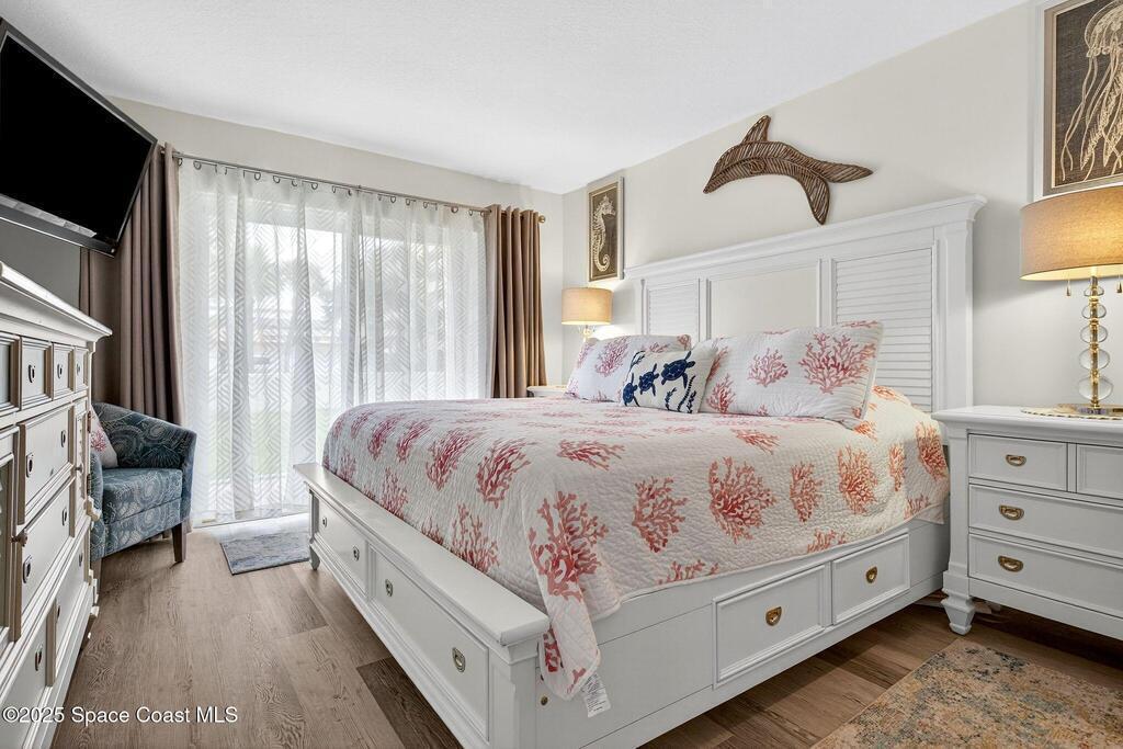 Beachside living at its finest! Priced under appraised value. Best priced condo on the beach! This beautifully updated, move-in-ready condo, with oceanfront living is ready to move in! Awaken to spectacular sunrises in this fully renovated 2-bedroom, 2-bath condo in Cocoa Beach! Situated in the central heart of the island, this modern, spacious end unit has Ocean views on a wonderful wrap-around patio with a storage shed protected by wrap around hurricane shutters. (New in 2023). Watch rockets galore from this luxury condo patio. Wonderful beach walks, vibrant sunrises and a private beach access await you! Ground floor. No elevator needed, easy for taking pets out your door! Low condo dues! The complex has recently undergone concrete restoration. All assessments have been paid in full. All reports are current and attached in ''documents''. This is a highly maintained complex ensuring long-term beauty and sustainability. (See additional Features and remarks)