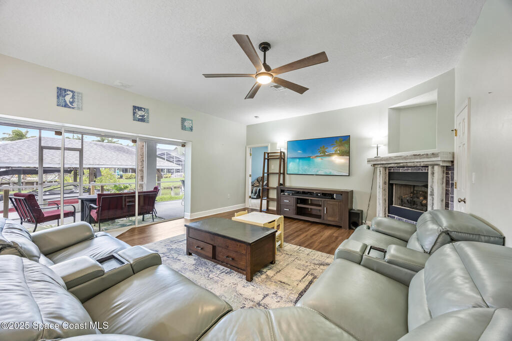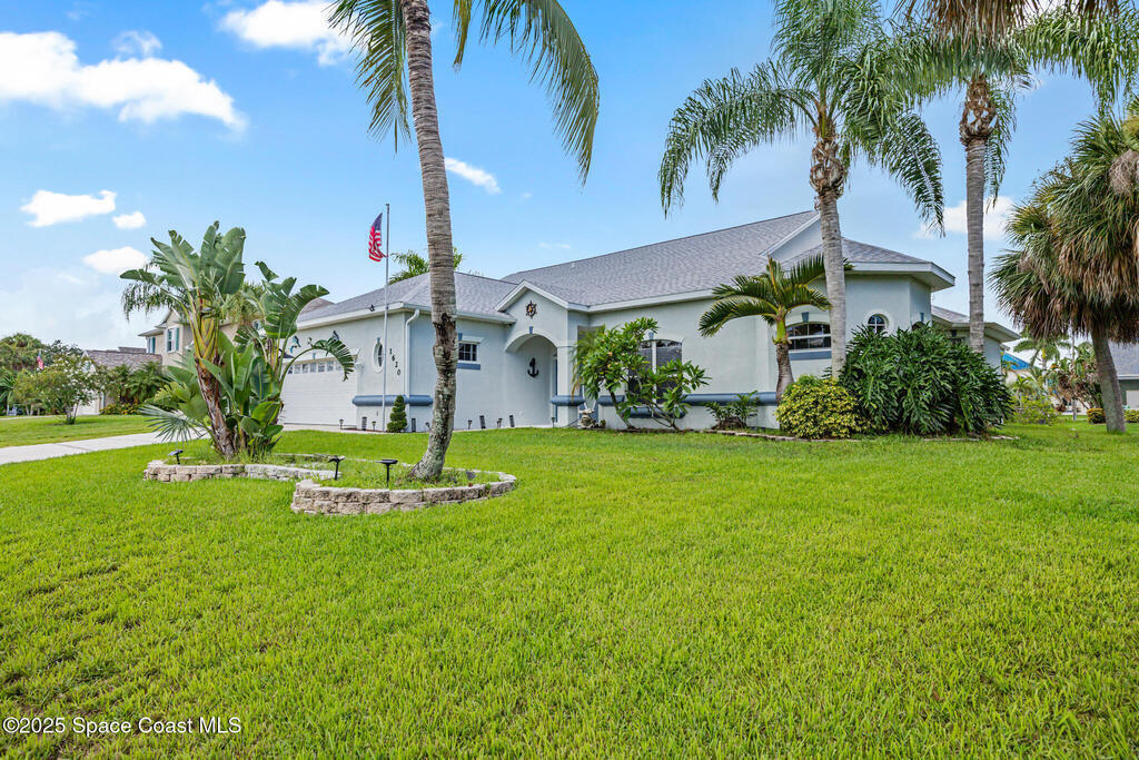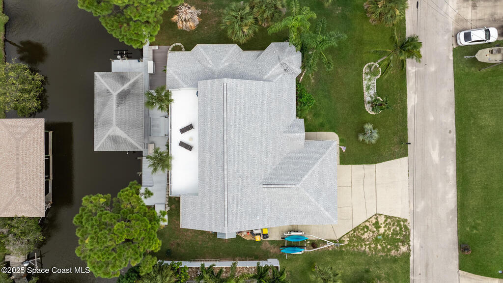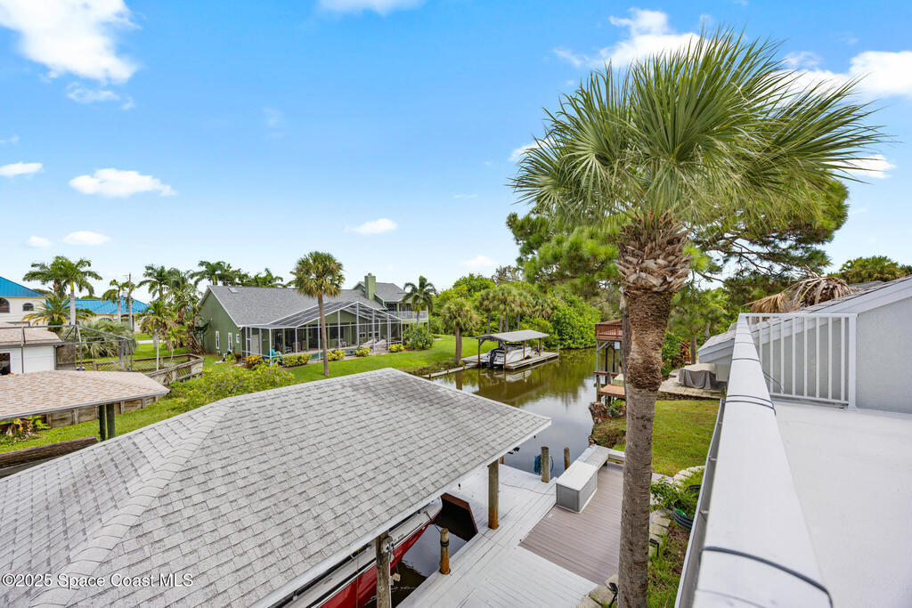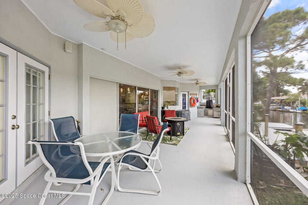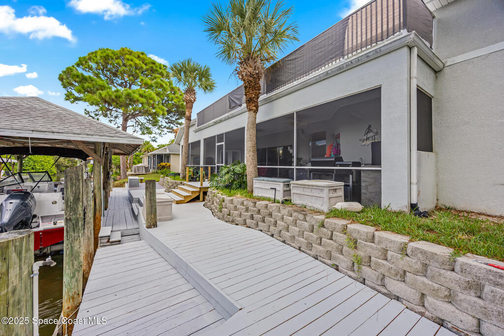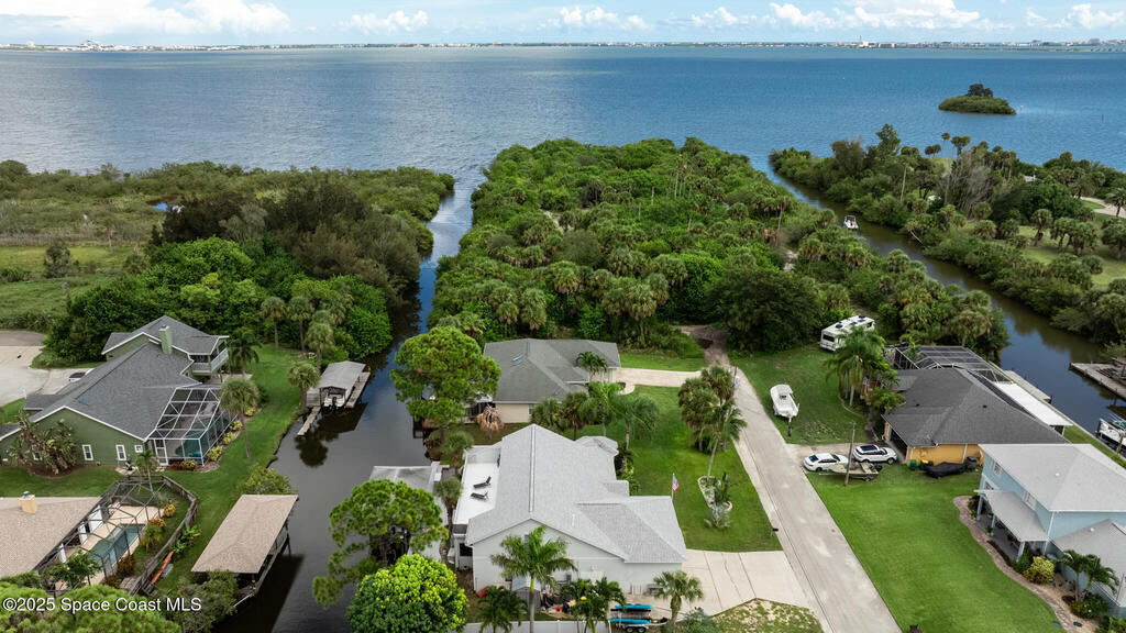 This beautifully maintained 4-bedroom, 3-bath custom home offers 2,769 square feet of light-filled living space with direct canal access to the Banana River. Built in 2001 w/ concrete block construction, the home boasts vaulted ceilings, an open floor plan, and a thoughtfully designed layout perfect for both entertaining and everyday living. The ground-floor primary suite features custom his-and-hers walk-in closets, an ensuite bath with jetted tub, and private access to the screened lanai. The gourmet kitchen includes a breakfast bar, and a sunny dining nook with views of the water. Step outside to your fully screened lanai with a summer kitchen and expansive outdoor living area, leading to a private dock with a boat lift and covered boathouse--perfect for boaters and water enthusiasts. Upgrades: Roof (2021), two HVAC systems (2020), Tankless gas water heater (2023), Whole house Rain Soft water softener. and an FPL electric car charger.