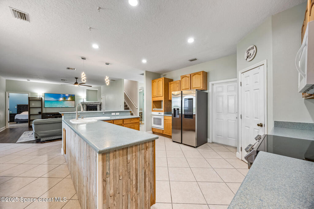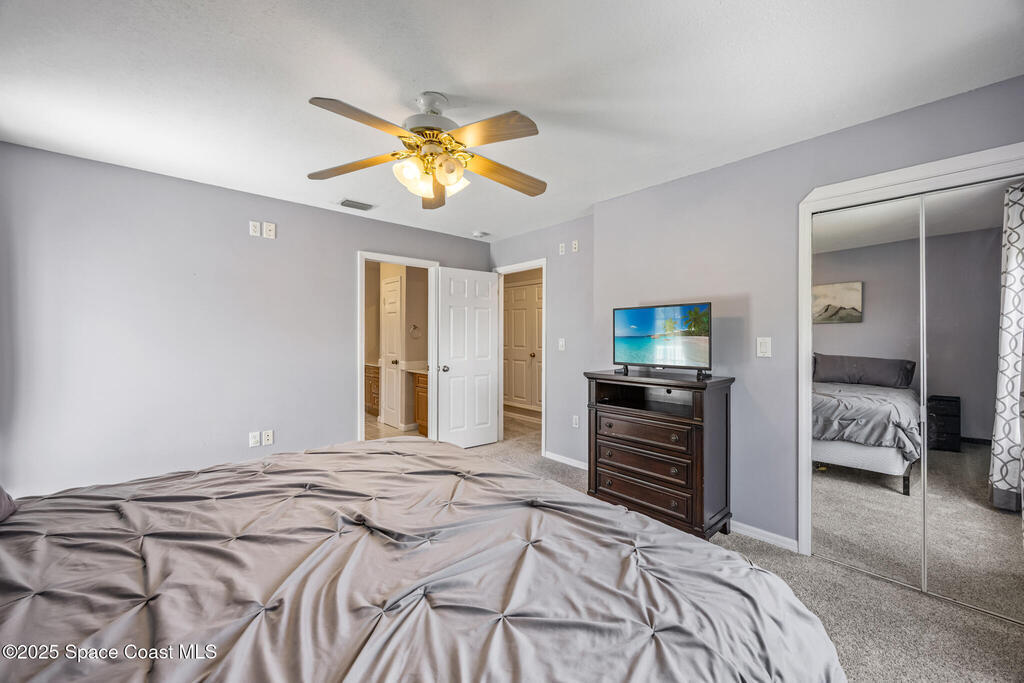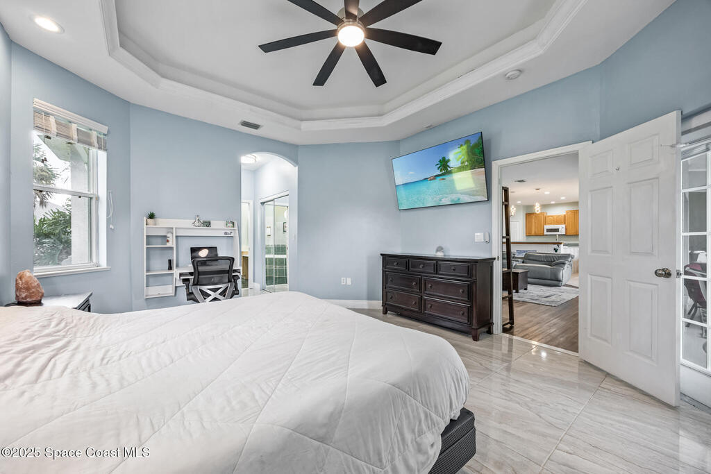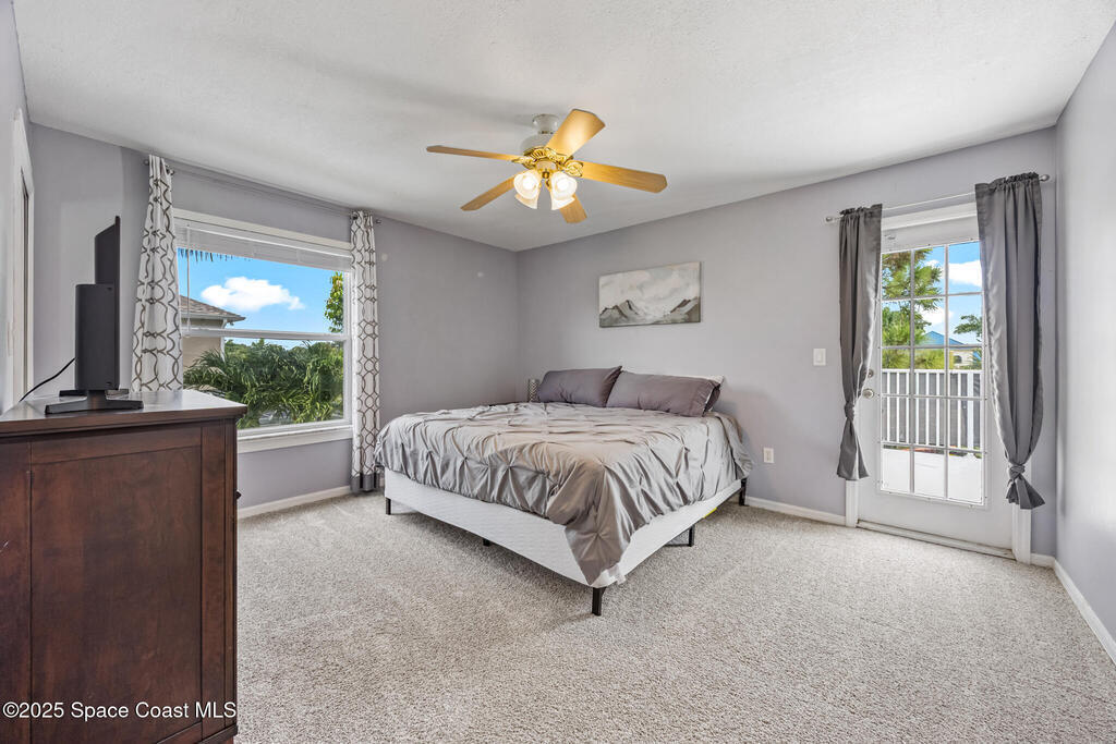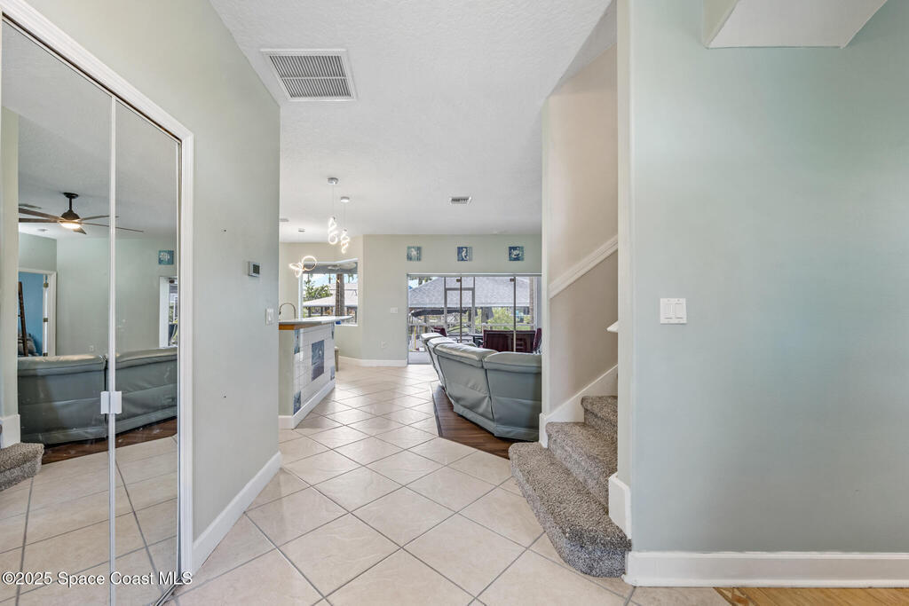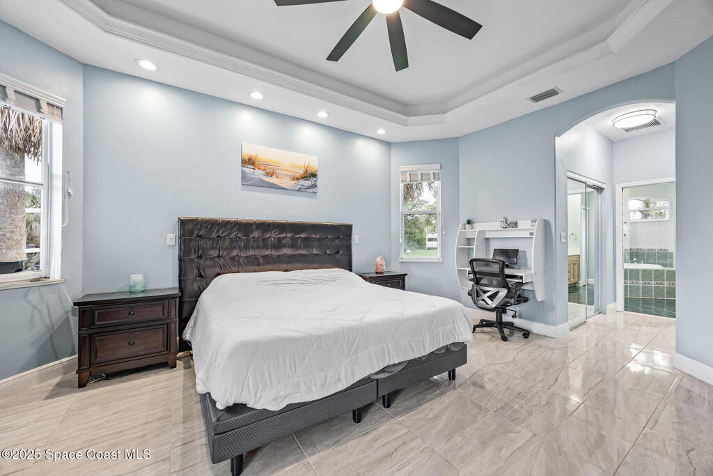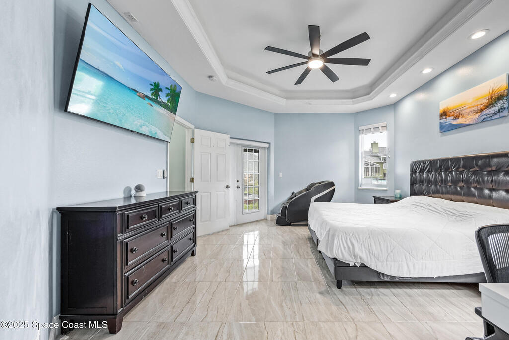 This beautifully maintained 4-bedroom, 3-bath custom home offers 2,769 square feet of light-filled living space with direct canal access to the Banana River. Built in 2001 w/ concrete block construction, the home boasts vaulted ceilings, an open floor plan, and a thoughtfully designed layout perfect for both entertaining and everyday living. The ground-floor primary suite features custom his-and-hers walk-in closets, an ensuite bath with jetted tub, and private access to the screened lanai. The gourmet kitchen includes a breakfast bar, and a sunny dining nook with views of the water. Step outside to your fully screened lanai with a summer kitchen and expansive outdoor living area, leading to a private dock with a boat lift and covered boathouse--perfect for boaters and water enthusiasts. Upgrades: Roof (2021), two HVAC systems (2020), Tankless gas water heater (2023), Whole house Rain Soft water softener. and an FPL electric car charger.