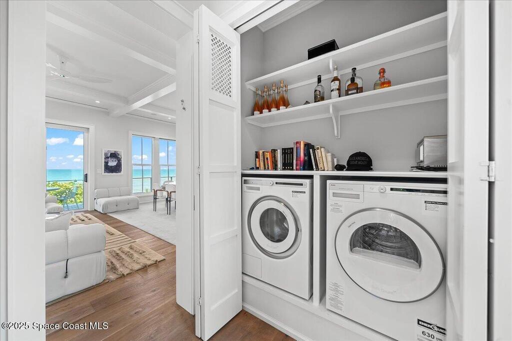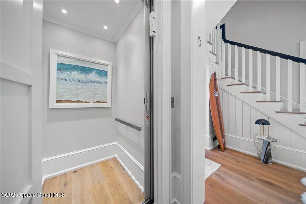 Spend your days where Florida's wild beauty meets refined coastal living. This impeccably maintained three-story oceanfront residence, gracefully set between the Atlantic Ocean and the heart of Melbourne Beach, offers a rare blend of privacy, natural wonder and modern elegance. Wake to sunrise over the Atlantic on a quiet stretch of shoreline with direct private access to uncrowded beaches, perfect for morning walks or surfing just steps from your door. The community is known for its laid-back coastal charm, A-rated schools and family-friendly atmosphere, making it ideal for both full-time living and a vacation retreat. Inside, traditional architectural style meets luxury with hurricane impact windows and doors, rich real wood flooring throughout, sun-filled living spaces and a chef's kitchen featuring Wolf stainless steel appliances for entertaining. Expansive oceanfront balconies provide the perfect vantage point for rocket launches, star-gazing or simply soaking in the salt air.