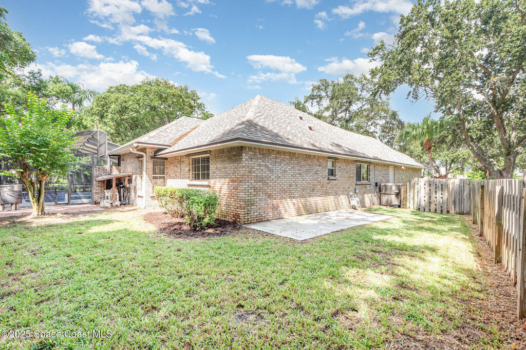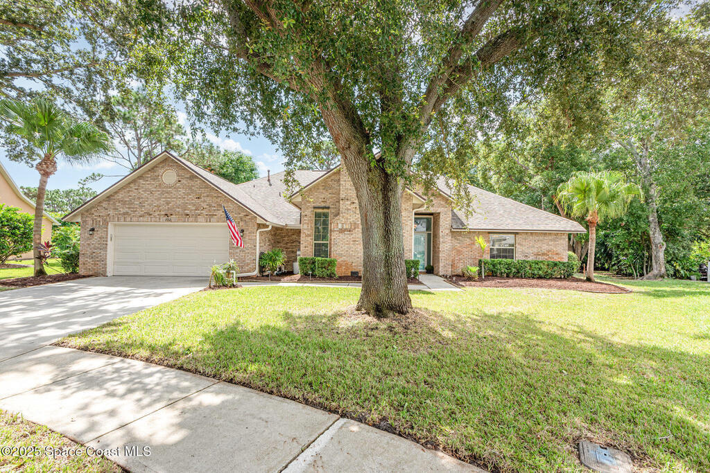 **MAJOR PRICE REDUCTION** This is the one you've been waiting for! Stunning SUNTREE/VIERA BRICK CUL-DE-SAC home with COASTAL VIBES on a PRIVATE, WOODED lot. You'll love the large, RENOVATED KITCHEN with QUARTZ COUNTERTOPS, SS APPLIANCES, and GAS RANGE with HOOD. Casually dine at the kitchen's BAR or BREAKFAST NOOK, or choose the DINING ROOM with its GLASS FRENCH DOOR views to the pool. The house features VAULTED CEILINGS, LIVING ROOM with a GAS FIREPLACE, and TONS OF NATURAL LIGHT. Includes a WHOLE-HOUSE BRITA WATER FILTRATION SYSTEM. The primary suite offers DOUBLE WALK-IN CLOSETS, GARDEN TUB, a shower with DUAL SHOWER HEADS, and GLASS FRENCH DOORS that open to the pool deck. NEW AC SYSTEM (2024) AND DUCTWORK. One guest bedroom is SEMI ENSUITE with direct access to the guest bathroom. NEW RECESSED LIGHTING and SELECT FANS throughout. Enjoy the POOL or SPA in your PRIVATE WOODED BACKYARD with HALF-YARD PRIVACY FENCE. BRAND NEW GAS POOL HATER. Roof (2020). A-RATED SCHOOL DISTRICT.