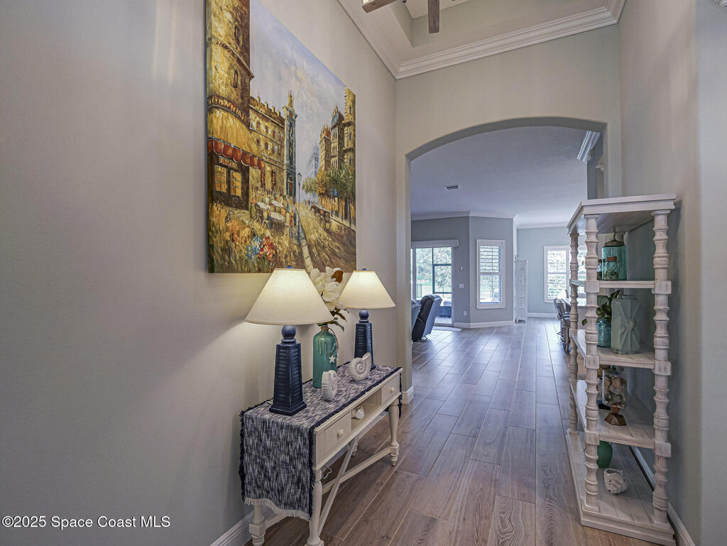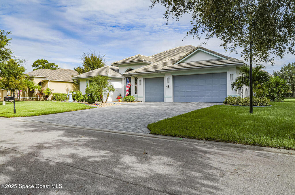 Immaculate GHO home on a serene lakefront lot. Beautifully landscaped w/ premium touches, river rock accent, concrete curbing, & fully fenced yard. Impact windows, plantation shutters, & level 4 porcelain tile flow seamlessly throughout, upscale lighting & designer ceiling fans. The gourmet kitchen boasts a striking granite island, custom backsplash, & a durable granite sink that resists scratches. Spacious walk-in closets, large laundry room, 3-car garage w/ epoxy flooring provide ample storage & convenience. Enjoy the upgraded back patio w/ privacy wall, perfect for relaxing or entertaining.