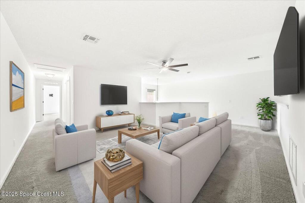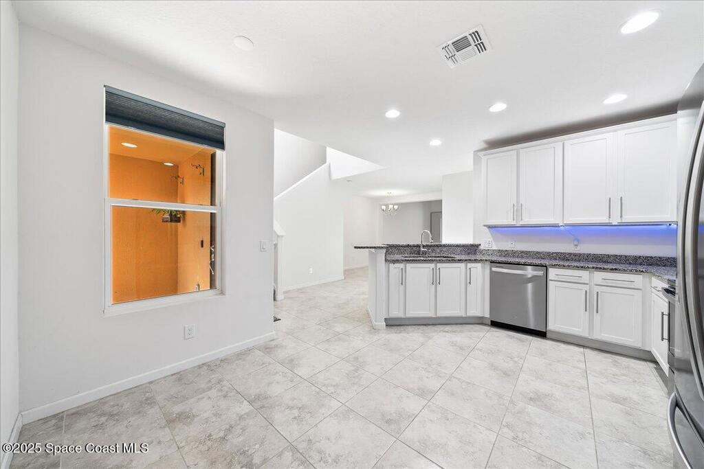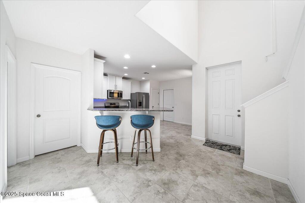 HUGE PRICE DROP! Experience the pinnacle of coastal luxury living in the exclusive, gated community of Montecito. This stunning townhome, built in 2020, is CONCRETE BLOCK both levels, boasts a stylish barrel tile roof, blends refined design with effortless functionality to create the ultimate beachside retreat.The main level showcases an elegant primary suite for convenience and privacy, complemented by designer tile flooring throughout. The chef-inspired kitchen boasts white shaker cabinetry, granite countertops, and premium stainless steel appliances, seamlessly connecting to open living spaces ideal for entertaining.Upstairs, two generous guest suites with walk-in closets and a spacious bath offer comfort for family or visitors. The versatile loft, complete with a built-in kitchenette, provides the perfect setting for a media lounge, private retreat, or guest accommodations.Outdoors, your private lanai oasis awaits--enhanced with custom paver decking, lush tropical foliage,