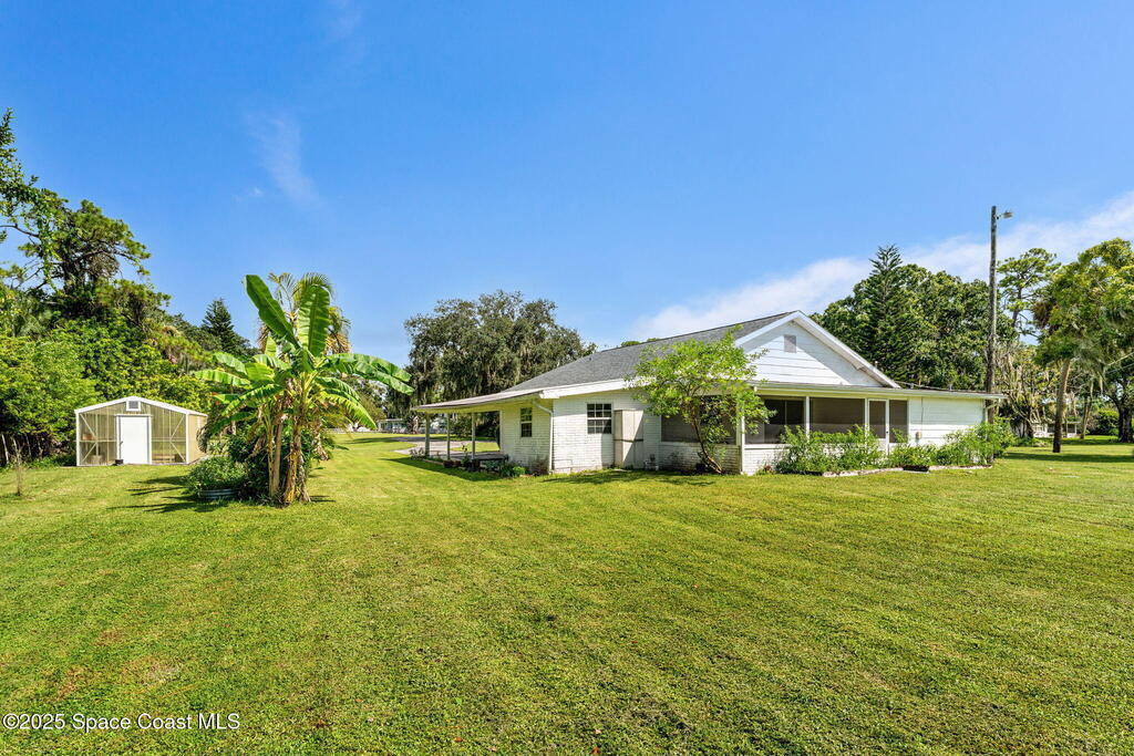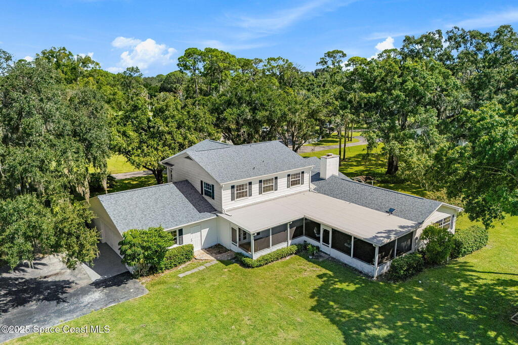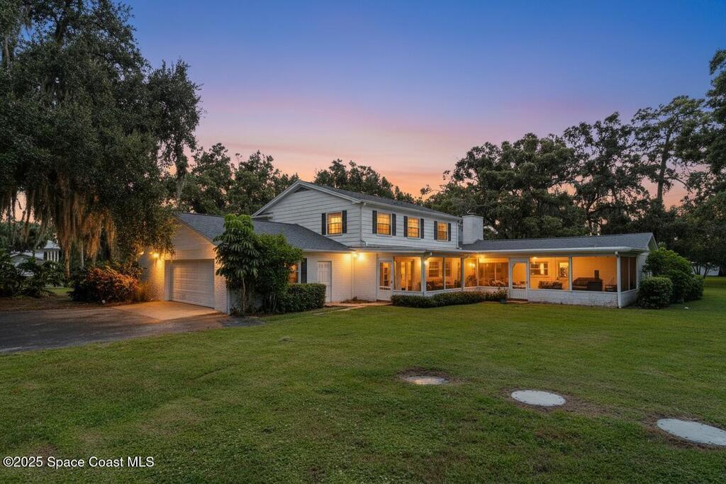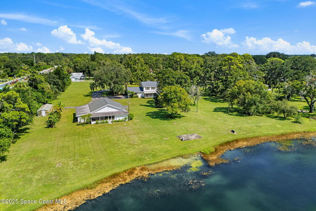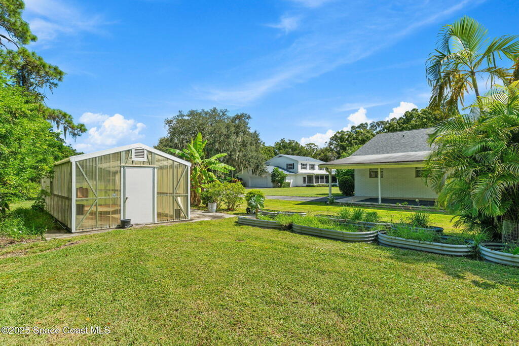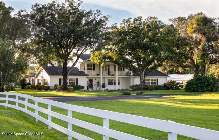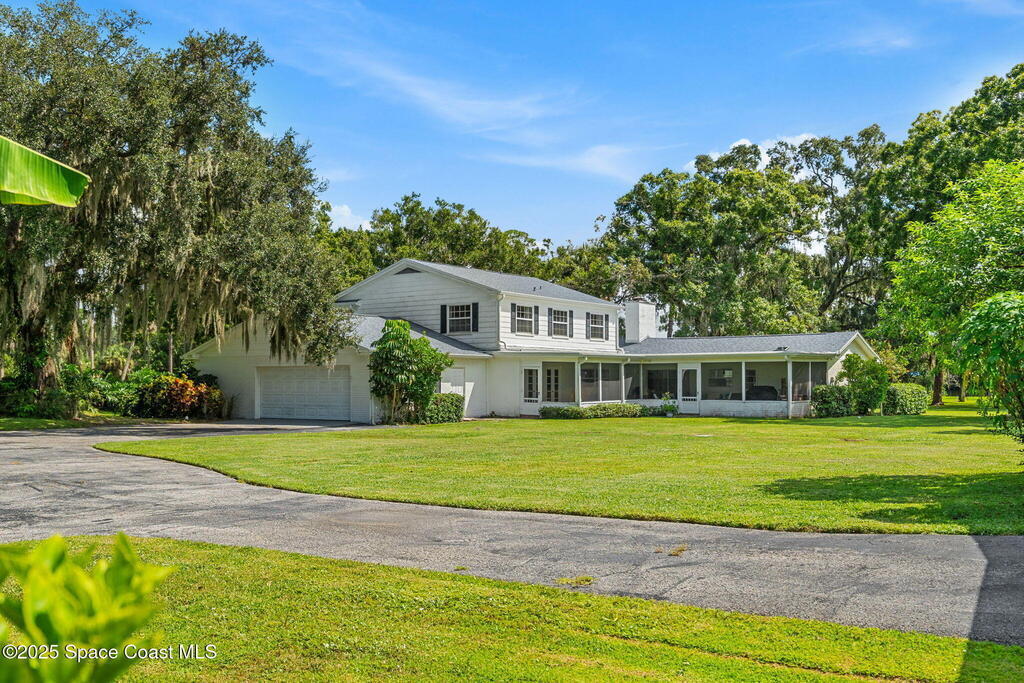 Discover a property that rarely comes on the market! Don't miss the opportunity to own this spacious property set on nearly 4 acres of beautifully maintained land - offering room to roam, relax, and enjoy the best of Florida lifestyle. The main 4BR/3.5BA Colonial home features a beautifully renovated kitchen w/ quartz countertops, island seating, custom cabinetry, and Bosch stainless appliances. The inviting primary suite includes a cozy wood-burning fireplace and a spa-inspired bath w/ dual quartz vanities, tub w/ separate walk-in shower. Enjoy breathtaking property views from the upstairs balcony or direct water views from the enclosed lanai. Explore the newer greenhouse and the separate 2BR/2BA dwelling ideal for extended family, guests, or rental income. With 4,845 total sq ft of living space, this estate offers a peaceful, private setting with ample room for a pool, RV/Boat parking, gardens, or future projects. Minutes to beaches, shopping, L3 Harris, Grumman and much more!
