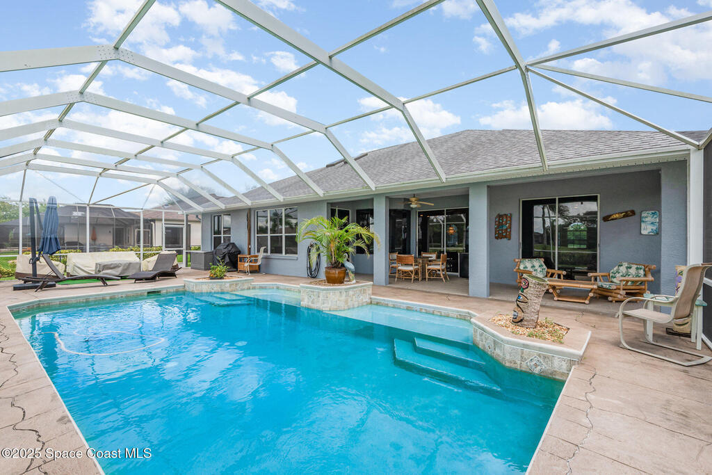 Discover NEW VALUE on this beautifully maintained 3 Bed | 2 Bath POOL home -perfectly situated in the heart of Florida's SPACE COAST within a lovely golf club community! This spacious MERRITT ISLAND, residence features a bright open layout with soaring ceilings, multiple living spaces and a gourmet kitchen with sleek appliances and bar seating. Step outside to your private tropical retreat complete with a sparkling pool, serene fairway views and the unique ability to watch ROCKET LAUNCHES right from your backyard! Recent improvements include fresh interior and exterior paint, updated HVAC systems with new ductwork (2020 & 2023) and a newer water heater (2024), offering both comfort and peace of mind. Conveniently located near East Coast beaches, Port Canaveral and Orlando attractions, this home delivers an exceptional blend of luxury, convenience, and true Florida Space Coast living--all at an improved price. This one is a MUST SEE....and includes FLEXIBLE SELLERS!