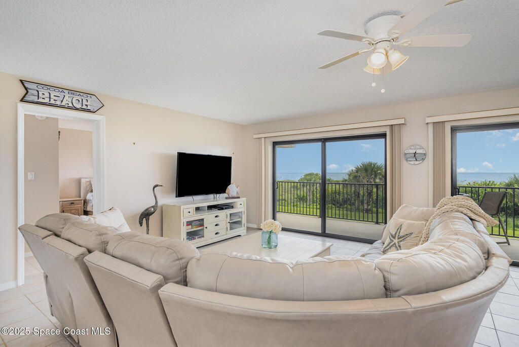 Turnkey oceanfront living in the heart of Cocoa Beach! This spacious 2-bedroom, 2-bath condo is located in the desirable Windrush community and offers direct ocean views and watch the gorgeous sunrise from your oversized private balcony. Enjoy a bright, open floor plan with tile flooring throughout, a unique custom-built bar, and in-unit laundry for added convenience. Located on the second floor with elevator access, this fully furnished unit also includes a shared two-car garage and even comes with a vehicle -- just bring your bags! Community amenities include a resort-style pool, spa, fitness center, and private beach access. Excellent location within walking distance to restaurants, bars, and shopping. Only 45 minutes to Orlando and close to Port Canaveral. Watch rocket launches from your balcony!