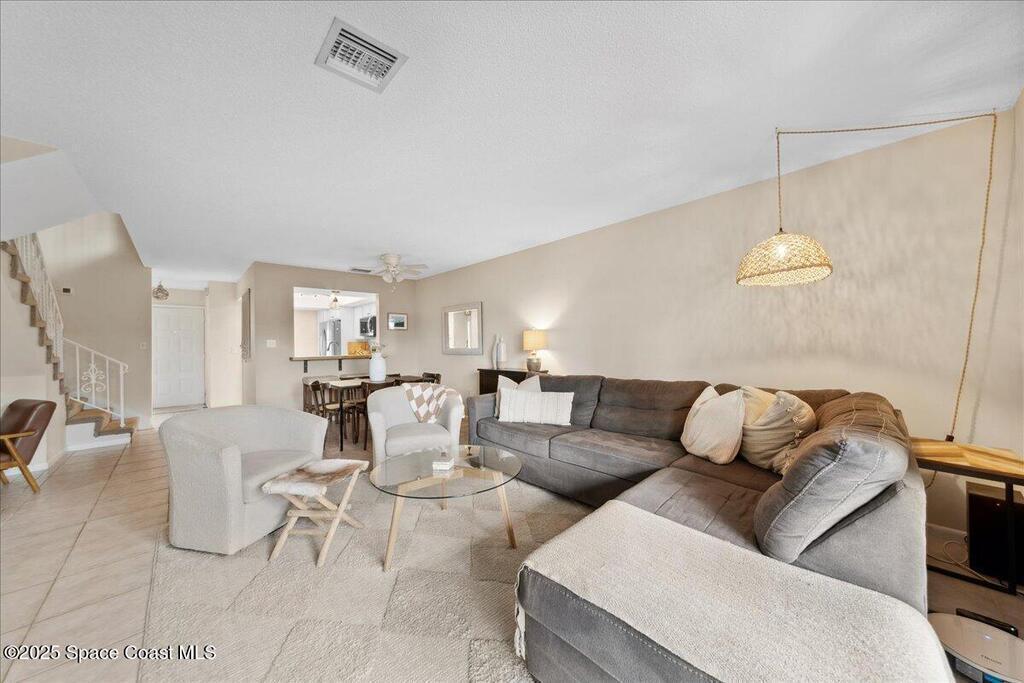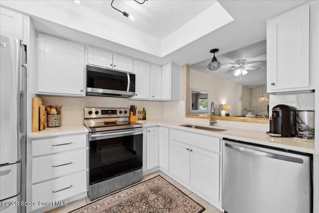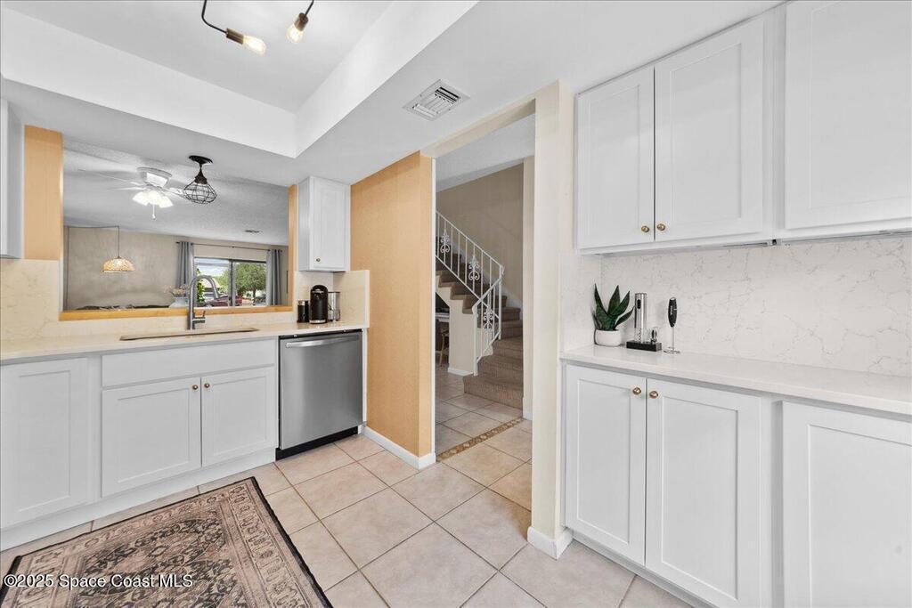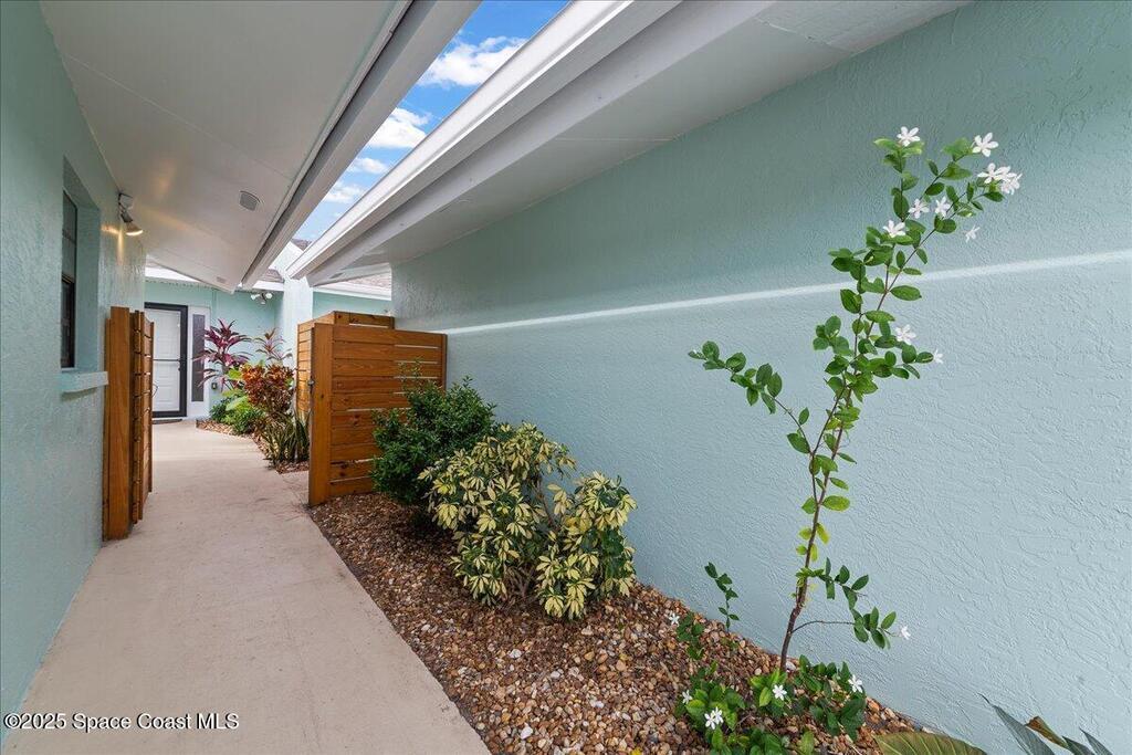Location, location! Enter through the private, gated courtyard into this 2BR, 2.5 bath unit. The kitchen is most delightful with upgraded shiny quartz countertops, new white cabinets, plenty of counter space, SS appliances and a coffee bar area too! The passthru to the breakfast bar and dining area offers convenience. Open to the inviting living space with tile floors and plenty of room to roam. Living room has sliders leading to rear screened porch. A great place for gatherings. Custom work space built under the stairs. Cozy 1/2 bath downstairs for guests. Two huge bedrooms upstairs each with a walk in closet and their own bathroom. The primary bedroom has a balcony. The primary bathroom has a beautiful shower and tile floors. The second bathroom has a tub/shower and tile floors.ONE CAR GARAGE! All located near the beaches in one direction and local canals in the other. HOA includes ext building maintenance, exterior ins and roof. NEW EXTERIOR PAINT!! Pet Friendly!