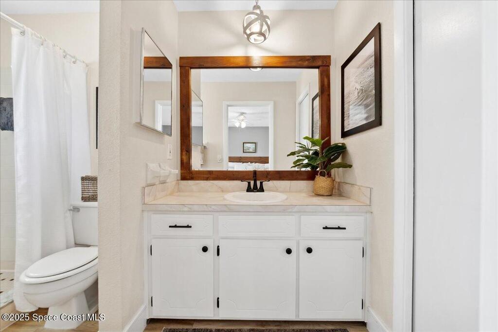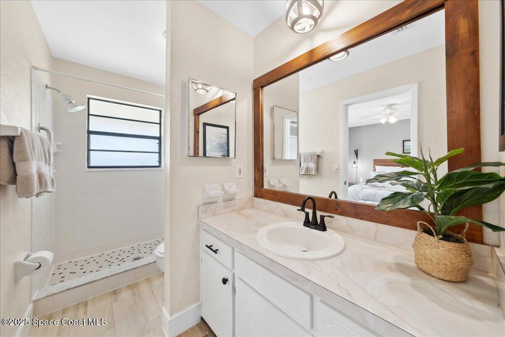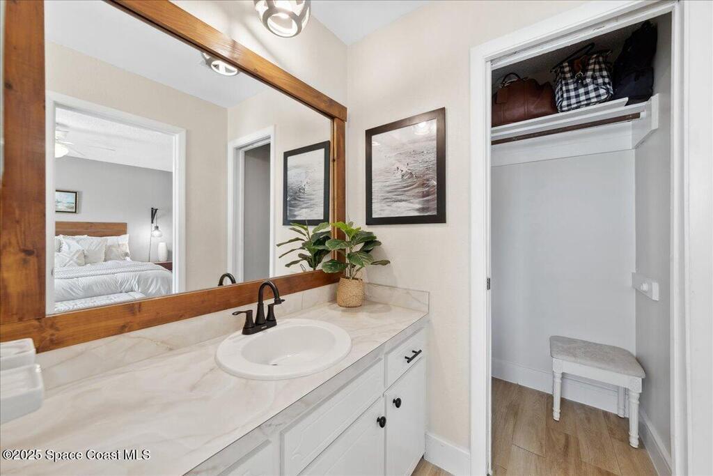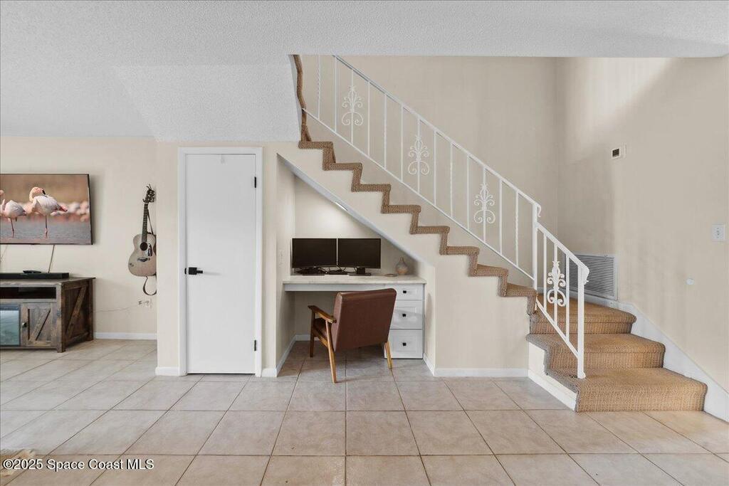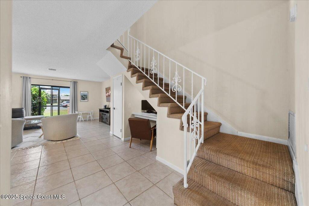 Location, location! Enter through the private, gated courtyard into this 2BR, 2.5 bath unit. The kitchen is most delightful with upgraded shiny quartz countertops, new white cabinets, plenty of counter space, SS appliances and a coffee bar area too! The passthru to the breakfast bar and dining area offers convenience. Open to the inviting living space with tile floors and plenty of room to roam. Living room has sliders leading to rear screened porch. A great place for gatherings. Custom work space built under the stairs. Cozy 1/2 bath downstairs for guests. Two huge bedrooms upstairs each with a walk in closet and their own bathroom. The primary bedroom has a balcony. The primary bathroom has a beautiful shower and tile floors. The second bathroom has a tub/shower and tile floors.ONE CAR GARAGE! All located near the beaches in one direction and local canals in the other. HOA includes ext building maintenance, exterior ins and roof. NEW EXTERIOR PAINT!! Pet Friendly!
