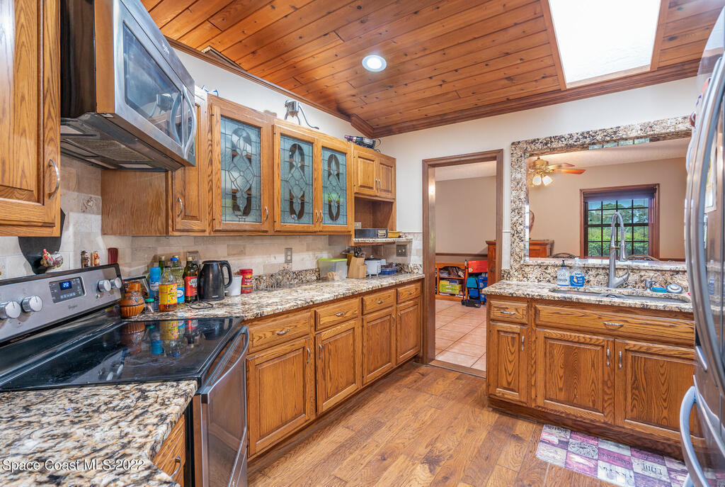 Private 13.5-acre oasis--an extraordinary estate offers endless possibilities including ability to subdivide. Enter through a gated driveway to discover a fully stocked pond, an 8-stall barn, a massive aviary for bird enthusiasts, two oversized dog pens, RV parking with 30-amp hookup, gazebo, shed, enclosed bullpen, and a licensed helicopter pad. Every structure is thoughtfully equipped with power and water, including a sprawling two-story barn/event facility totaling 2,400 sq ft with bathrooms and ample space to host weddings, parties, or private gatherings. The main residence offers 4 bedrooms and 3 bathrooms, featuring a spacious step-down living room, granite countertops in the kitchen, and abundant storage. An oversized screened-in deck provides the perfect outdoor retreat, while the enclosed 1,040 sq ft garage includes 2 additional bedrooms, 1 bathroom, and flexible living space--ideal for guests, extended family, or rental potential. This one-of-a-kind property is a rare find!