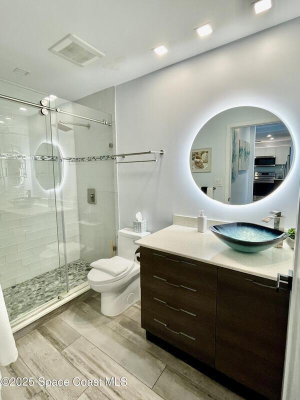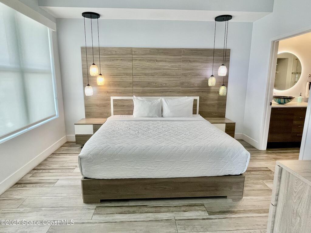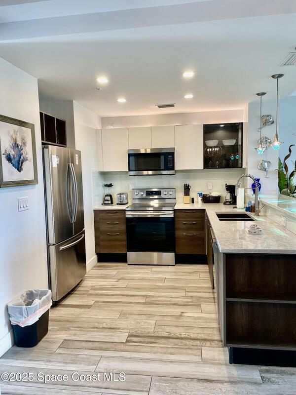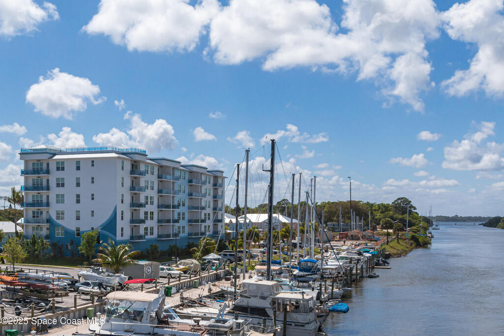 Welcome to luxury resort-style, waterfront living! This 3-bed, 2-bath fully furnished condo offers low-maintenance comfort in a prime location. The open layout features tile flooring throughout, a balcony for relaxing, and a spacious kitchen with ample storage, SS appliances, and quarts countertops. The primary suite includes a walk-in closet and private bathroom. There is a parking garage under the building and in unit laundry. Enjoy community amenities like a sparkling pool with a spa, fitness center, sauna, and on-site restaurant. Short-term rentals are allowed without restrictions, making this a perfect investment, vacation retreat, or full-time home.This waterfront community is situated on a marina and navigable canal to Indian River and Banana River with ocean access. Close to beaches, dining, shopping, Kennedy Space Center, and Port Canaveral!