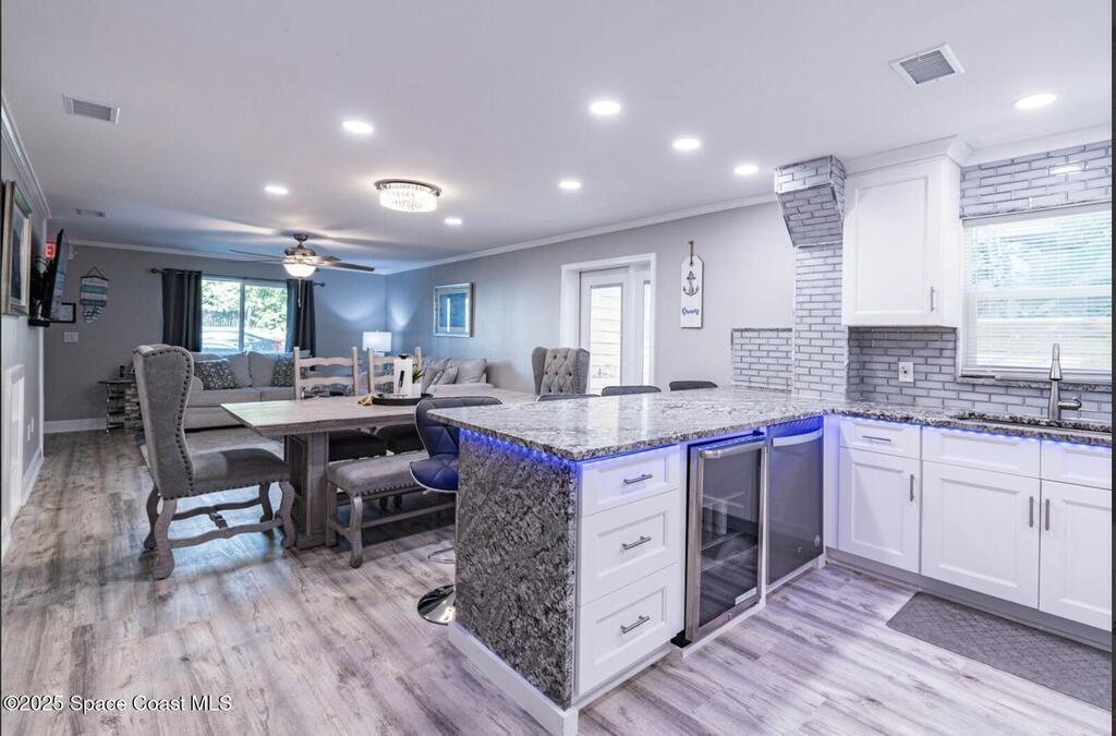 Welcome to your next unforgettable getaway! This tropical 3 bedroom and 3.5 bathroom townhouse has everything you need to make this your ultimate retreat. Just steps aways from the world-famous sand of Cocoa Beach, this newly renovated townhouse features FIVE comfortable beds, a fully stocked kitchen, a spacious living with a large TV, and your own covered private outdoor patio and sitting area to enjoy the ocean breeze. Walk-into the well lit family room furnished with a comfortable sofa and loveseat. This is the perfect place to throw on your favorite show and unwind after a fun day at the beach. The completely remodeled kitchen comes with brand new stainless steel appliances, including a gas stove, coffee makers, and plenty of countertop space! This property comes with a large outdoor patio that is covered with plenty of seating and a TV. When it's time to catch some sleep, enjoy one of the five beds tucked away in the back of the property to give you peace and quiet.