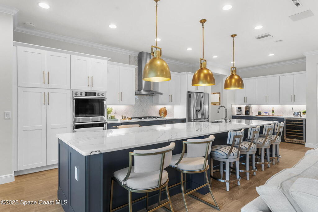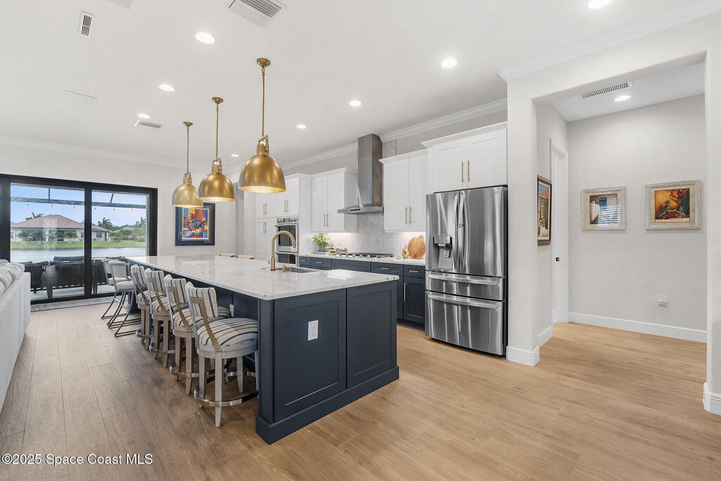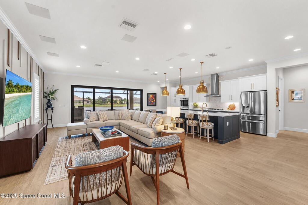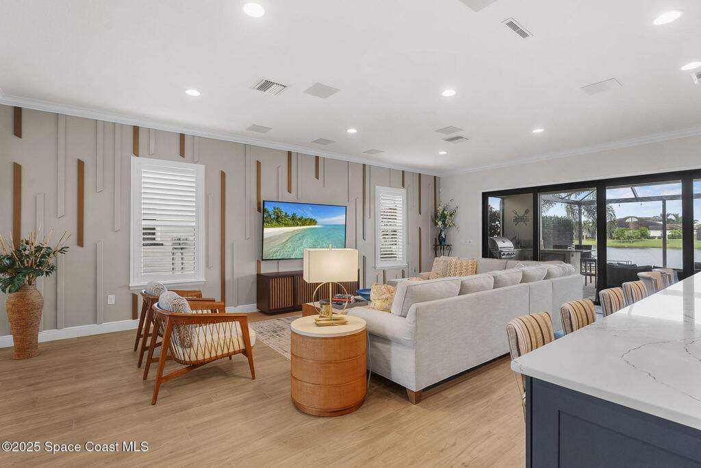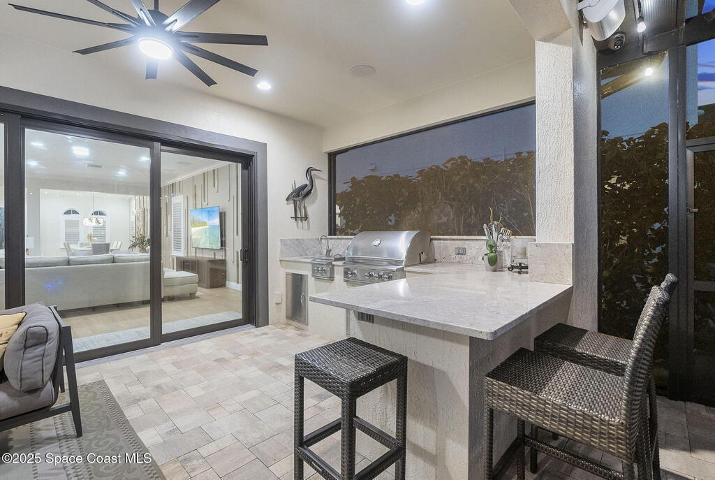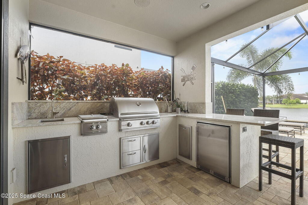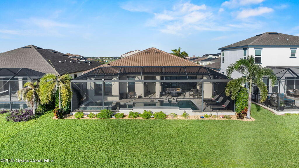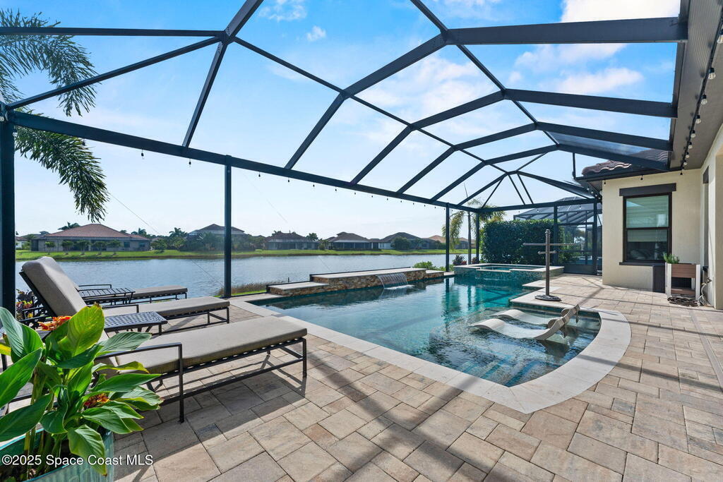 Offering a 1% lender credit when you use preferred lender!! W. Viera Lake front Pool Home in Reeling Park South offers the perfect blend of luxury & function. Designed for Florida living, showcasing a gorgeous pool & spa over looking the water, amazing outdoor kitchen, tile roof & hurricane-impact windows & doors. The oversized 2-car garage w/golf cart space adds convenience, while whole-home surround sound extends indoors & onto the back patio for seamless entertaining. Entertain in a gorgeous chef's kitchen w/ stunning 16-ft quartz island, Restoration Hardware pendant lights, SS appliances & abundant storage overlooking a spacious great room. The private primary suite features a walk-in closet & spa-like bath, while 2 guest bedrooms & baths provide comfort & flexibility. Modern upgrades shine thru-out. Residents enjoy a prime Viera location near The Avenues, Shopping, Dinning, golf, schools & beaches, Addison Village amenities including clubhouse, fitness center & resort-style pools