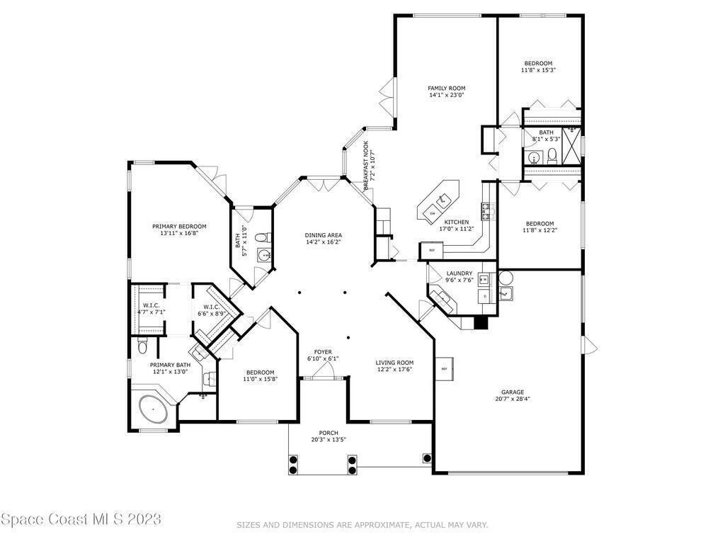 Are you ready to start living on island time? This spacious 4BR / 2.5BA home has a split floor plan with views of the water and preserve from almost every room. The open-concept kitchen is a chef's dream, featuring stainless steel appliances, a gas stove, rich wood cabinetry, granite countertops, and a breakfast bar. Perfect for entertaining, the home's French doors lead to a screened pool patio, ideal for relaxing and grilling and enjoying a swim in the solar-heated pool. Easy waterfront access to Sykes Creek, the barge canal, Indian River, Banana River, or Cape Canaveral Locks for exciting deep-sea fishing excursions. Easy kayak launch with floating dock. Nestled in the picturesque waterfront community of Sykes Cove, residents enjoy amenities such as a playground, a lakeside gazebo for fishing, and seasonal neighborhood activities that bring families together. This home is truly a waterfront vacation every day.