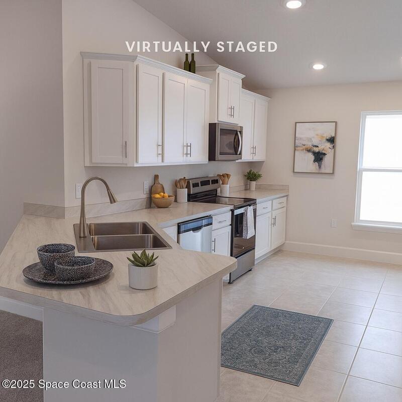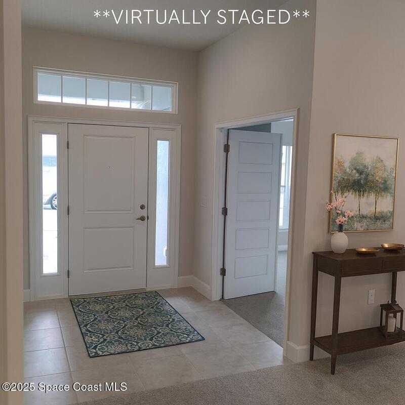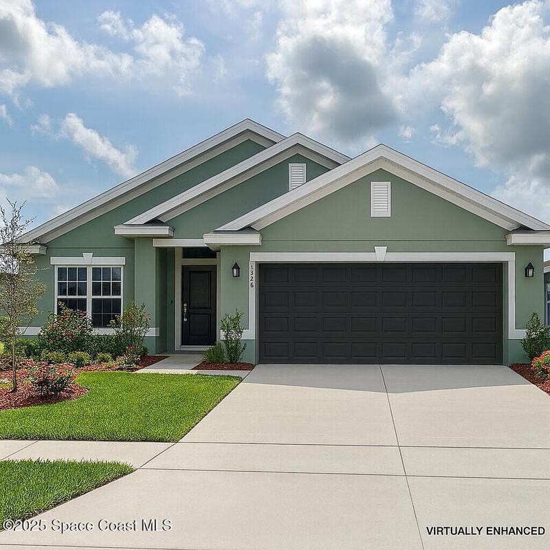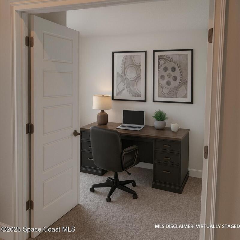 The 1820 plan blends flexibility and style in a 4 bedroom, 2 bath design made for Florida living. A front bedroom with double doors works perfectly as a home office, hobby room, or guest retreat. Enjoy gatherings in the formal dining room or casual meals in the bright eat-in kitchen with breakfast bar, stainless appliances, generous counter space, and abundant cabinets with soft-close doors. Elevated ceilings and tall windows welcome in streams of natural light, creating an airy, cheerful feel throughout the home. The private owner's suite offers dual vanities and a large walk-in closet. Tile flooring in the kitchen and bathrooms makes cleanup easy, while thoughtful details like designer lighting, lever-handle door hardware, and ceiling fans add both function and style. With its open flow and modern finishes, this home is ideal for entertaining, relaxing, and enjoying the Florida sunshine every day.