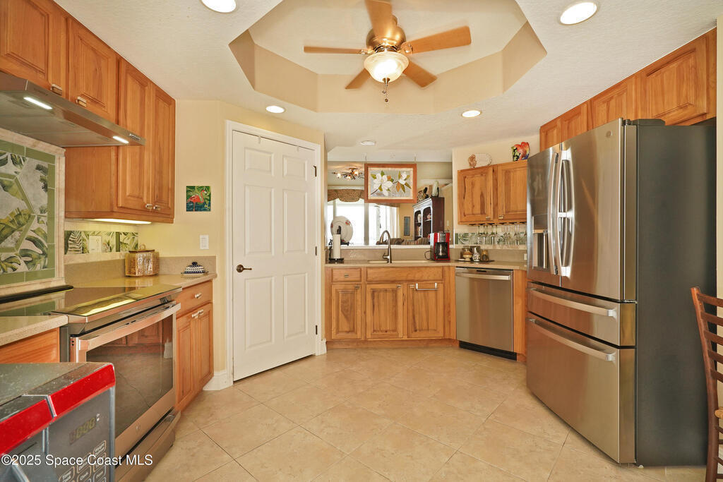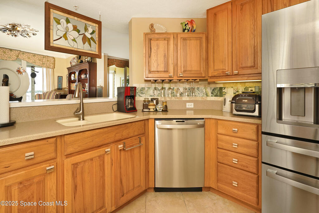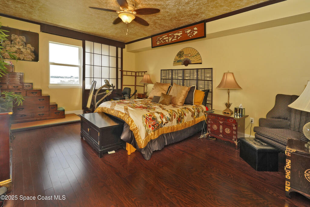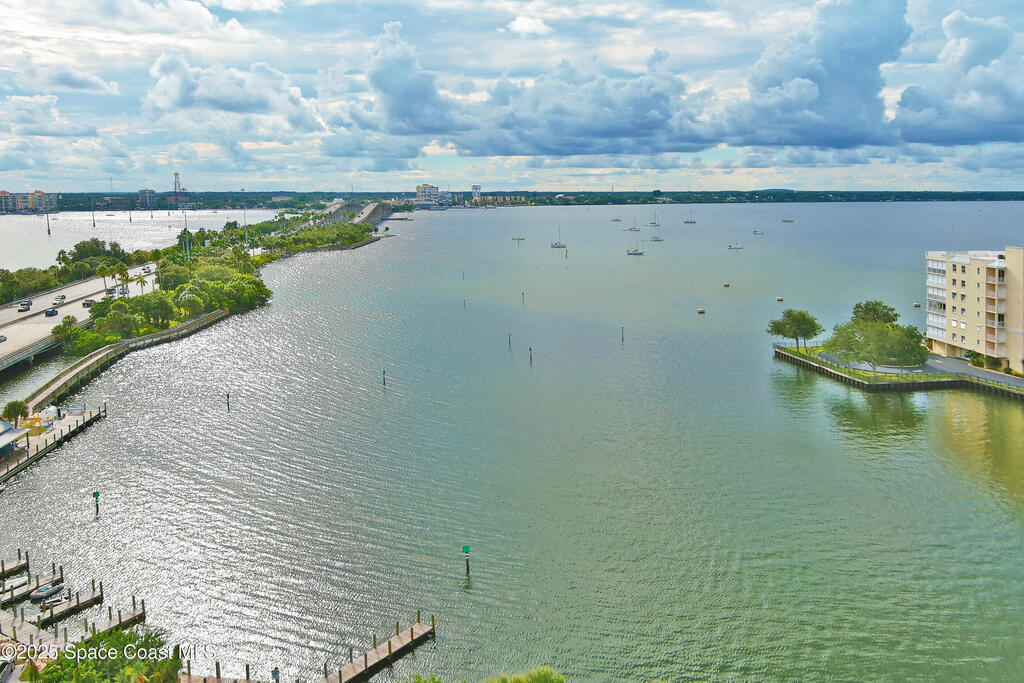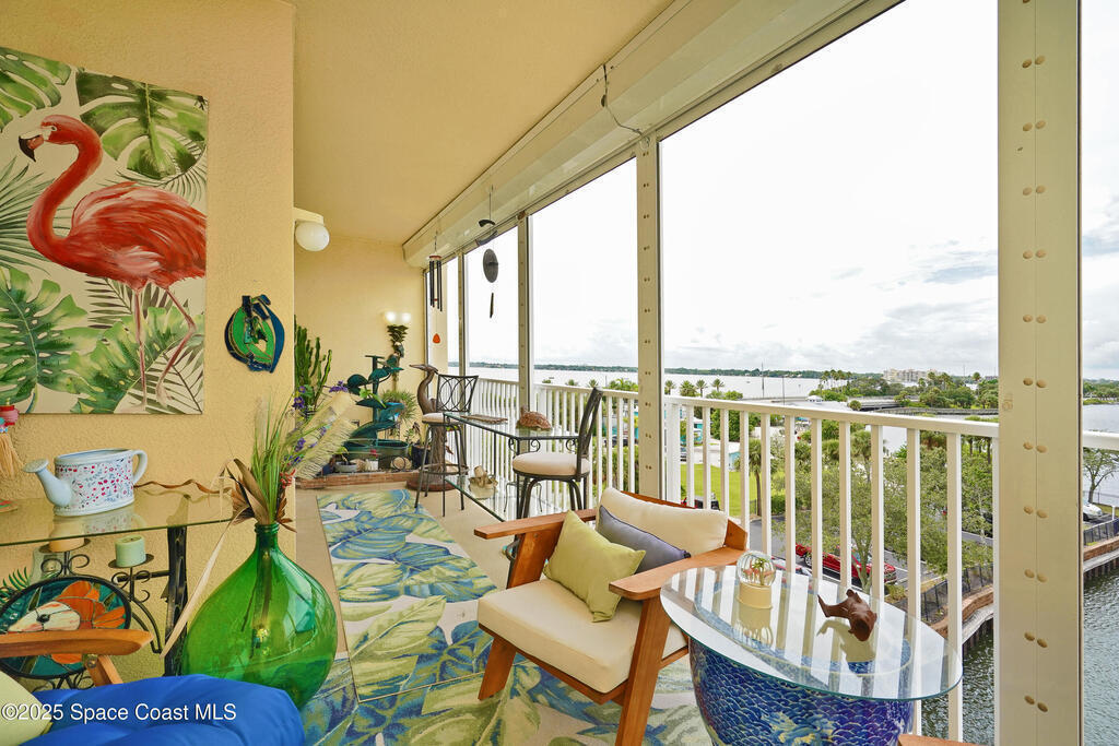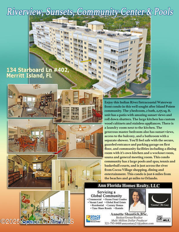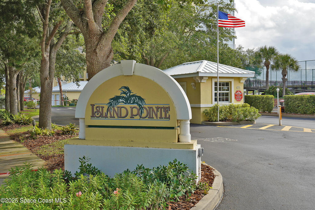 Step into this spectacular Direct Indian River view gated community condominium. 3 larger than usual bedrooms two renovated bathrooms, custom hand painted tiles, cozy family room, 4th floor gem with one car garage under building plus one assigned parking outside. Ample visitor parking. This was a former builders model unit boasting 2,323 square feet of inviting living space in the sought after Island Pointe Condominium complex. This 2006 built condo combines modern updates with timeless appeal, NEW AC 2023, ROOF IN 2024, PARKING LOT REPAVED 2024.This unit has many upgrades and added features such as the built - in cabinets to show off and display your items of interest. This modern resort has two swimming pools, two tennis courts, pickle-ball, clubhouse, with full exercise facilities. Spacious balcony with amazing views of launches and the Indian River. The wildlife such as the dolphins and manatees swim right by regularly. Perfectly finished wood and tile flooring throughout.