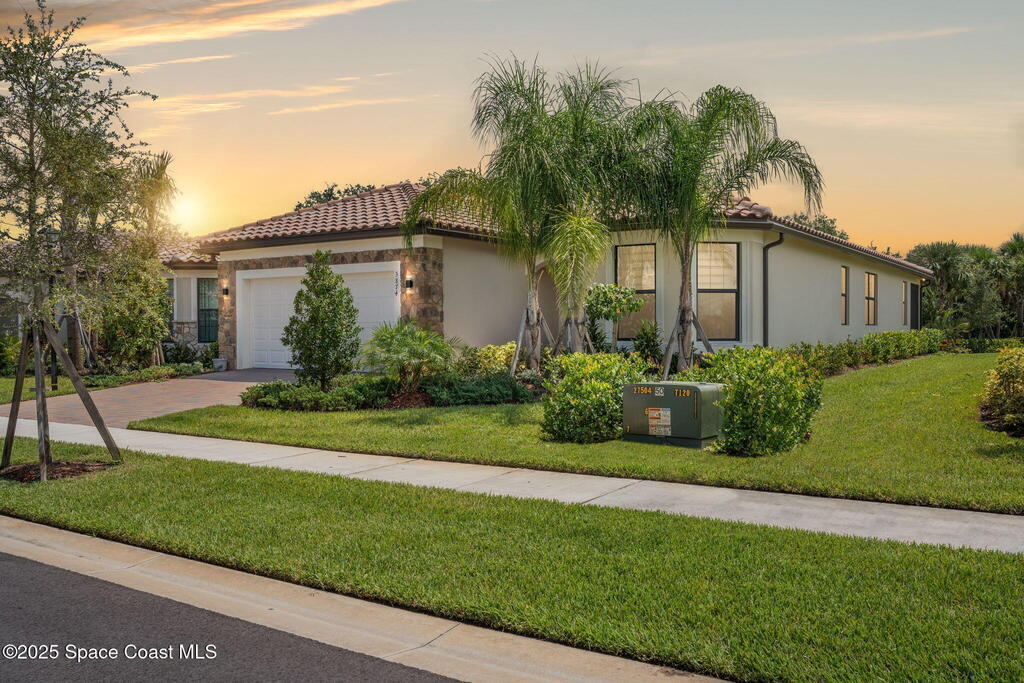 Welcome to your 2024 dream home in the prestigious Preserve at Waterway Village in Vero Beach! This stunning single-family home boasts 3 bedrooms, 2 bathrooms, a 2-car garage, and an office for all your work-from-home needs. The modern kitchen features stainless steel appliances, quartz countertops, and tile flooring throughout. Situated on a spacious corner lot with a serene preserve behind the house, you'll enjoy privacy and tranquility in your own backyard. The bonus room can be used as a home office or additional living space. Hurricane impact windows, doors and tile roof.