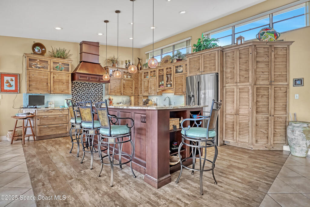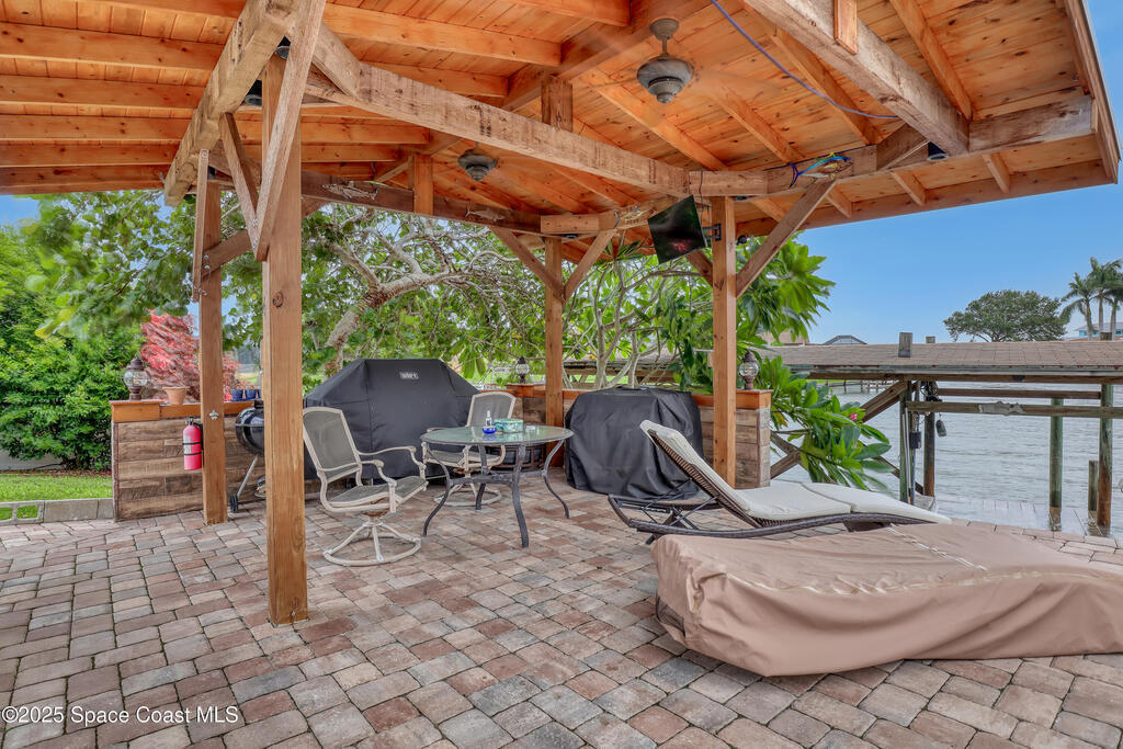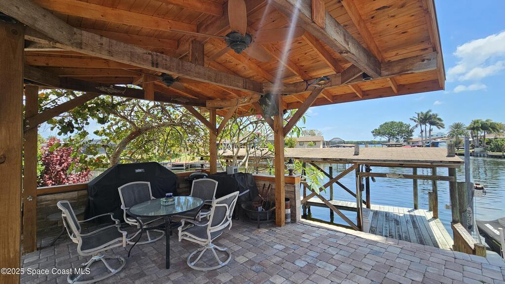 Experience unparalleled water views from this stunning pool home, ideally situated at the intersection of two canals. It features a covered boat dock with a lift, as well as a jet-ski lift, making it an ideal spot for water enthusiasts. The outdoor area is a true oasis, complete with a tiki covered patio, a sparkling pool, and a relaxing hot tub, all surrounded by majestic queen palm trees. Inside, the kitchen is a chefs dream equipped with a natural gas commercial range and oven, a beautifully vented ornate hood, custom cabinetry and gorgeous granite countertops. The kitchen is seamlessly open into the dining and living room areas, offering panoramic views of the water and pool. There are 2 master suits, each equipped with sliding doors that take you outside to a brick paver patio area. This home features Anderson Hurricane Windows and also full hurricane protection with electric powered hurricane shutters. Newer roof as well.