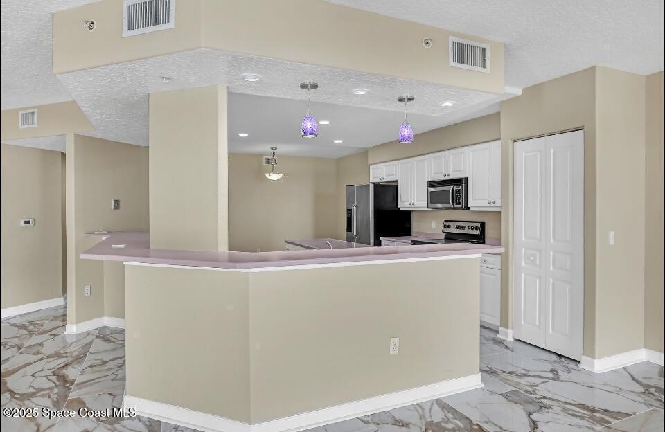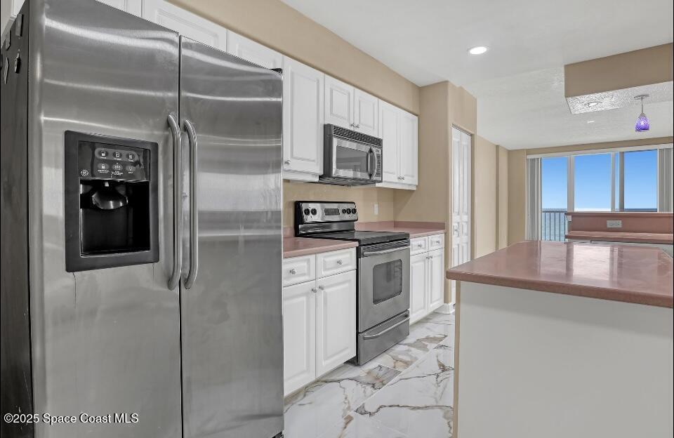 Experience the Ultimate Florida Luxury Lifestyle in this stunning oceanfront corner unit with breathtaking, panoramic views of the Atlantic! This condo offers THREE CAR GARAGE space and over 2,500 sq. ft. of living space, featuring 3 bedrooms + a flex room in a desirable split floor plan. The spacious primary suite boasts his-and-hers walk-in closets, a private ocean-view balcony, and a well-appointed ensuite bath with a tub and shower. The open-concept great room is bathed in natural light, seamlessly connecting to the kitchen, which offers a large island, breakfast nook, and ocean vistas perfect for entertaining. Enjoy exclusive resort-style amenities, including private beach access, a clubhouse, a sparkling oceanfront pool, Don't miss your chance to own a piece of paradise--schedule your private showing today!