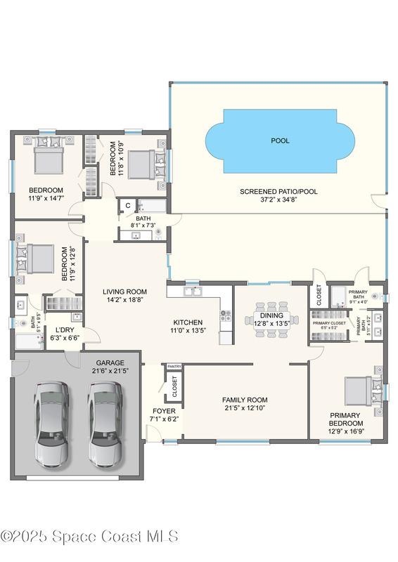 Rooms: Bedroom 2, Bedroom 3, Bedroom 4, Dining Room, Family Room, Kitchen, Laundry, Living Room and Primary Bedroom