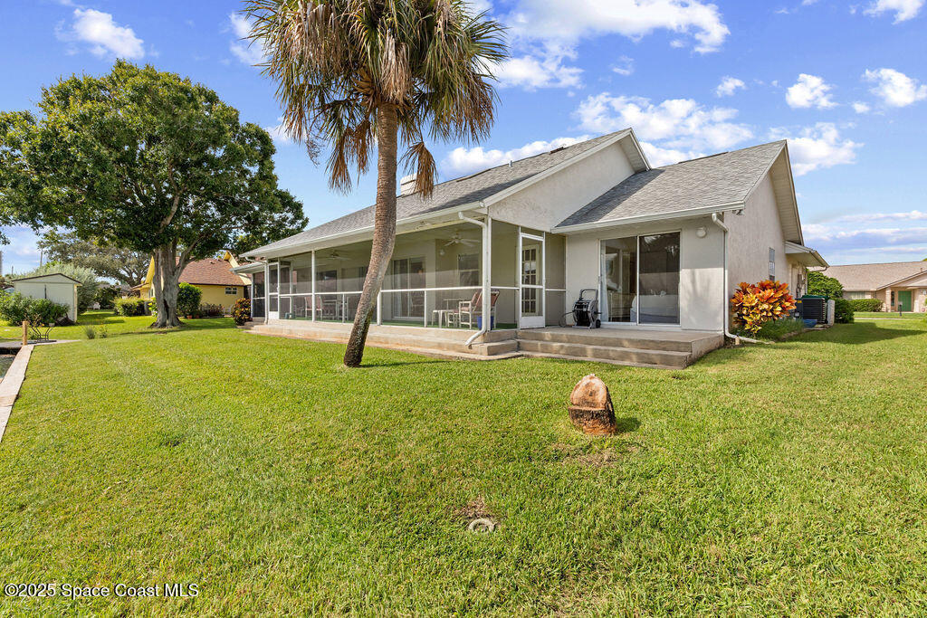 Move-In-Ready 3-Bedroom Lakefront Home with Spacious Layout and Screened Porch - Well-cared-for 3-bedroom, 2-bath home offering 1,739 sq. ft. of comfortable living space situated on a peaceful private lake, this home is filled with natural light and features an open, airy floor plan designed for everyday comfort and entertaining. The spacious family room provides plenty of room for gatherings, while the large screened-in back porch overlooks the lake--perfect for morning coffee, relaxing evenings, or hosting guests with a beautiful waterfront backdrop. Enjoy added peace of mind with a newer roof and a well-maintained interior that makes this home move-in ready. The oversized 2-car garage offers ample space for parking, storage, or a workbench setup. Conveniently located just minutes from the Indian River, local parks, and the beach. View the full 360 virtual tour: https://my.matterport.com/show/?m=C53bsZ4GurB