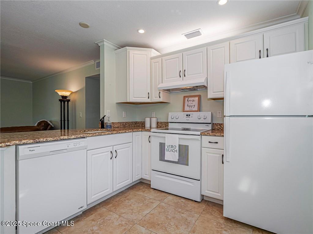 SIMPLY STUNNING REMODEL IN VISTA ROYALE! Beautifully remodeled 2/2 1st floor condo that blends modern elegance w/ the active lifestyle of Vero Beach's premier 55+ community. Every detail has been thoughtfully updated, starting w/ impact windows & doors for peace of mind, a 2023 roof, 2023 AC & private enclosed paver patio offering sweeping views of golf course & shimmering lake. Inside, you'll find a light-filled open floor plan, highlighted by an updated kitchen w/ sleek finishes and completely renovated baths that bring a touch of luxury to everyday living. Office photo is virtually staged.