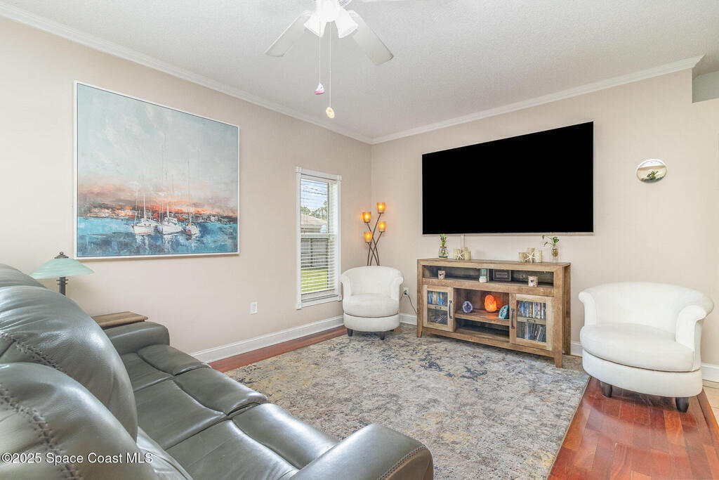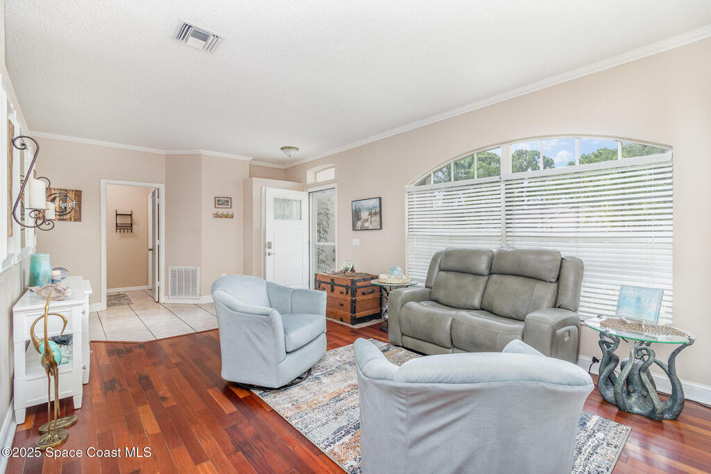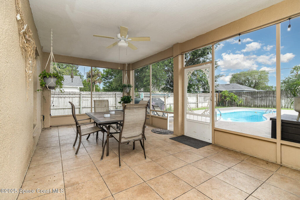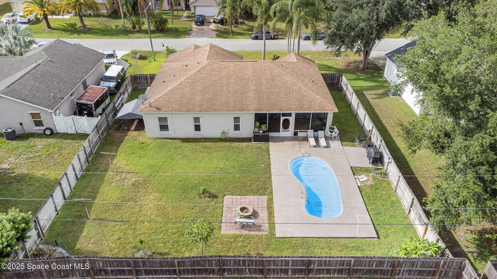 This 3-bedroom, 2-bath pool home offers the perfect mix of comfort and convenience. Set on a 1/4-acre lot, the backyard is a private oasis with fruit trees, a veggie garden, asparagus patch, and irrigation system. Inside, the bright split floor plan features tile and wood floors throughout--no carpet! The spacious primary suite includes a soaking tub and walk-in closet, while the open kitchen offers updated appliances including a double oven and microwave. Relax on the screened porch or enjoy the pool and fire pit. Bonus features: hurricane shutters, indoor laundry, 2-car garage, storage shed, whole-home replumbing, and new exterior doors. Move-in ready and designed for easy Florida living!
