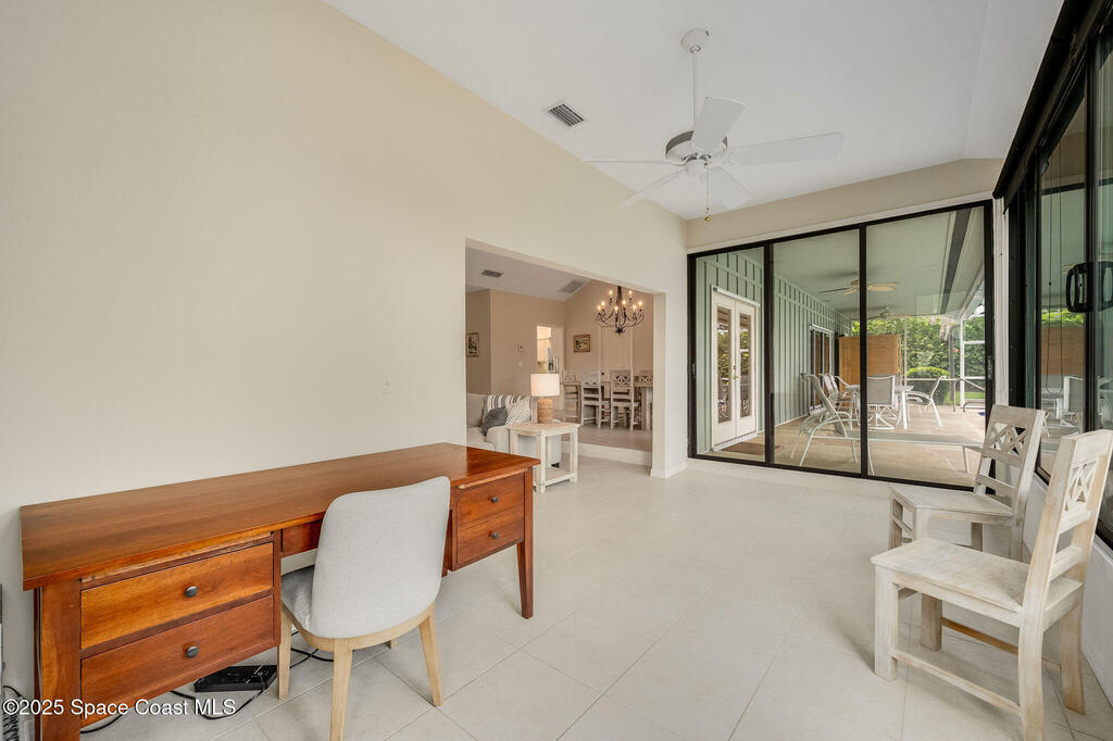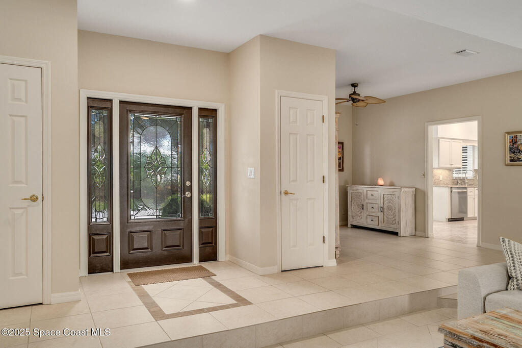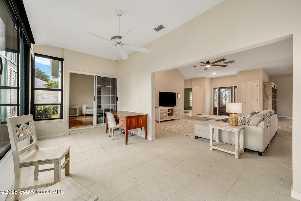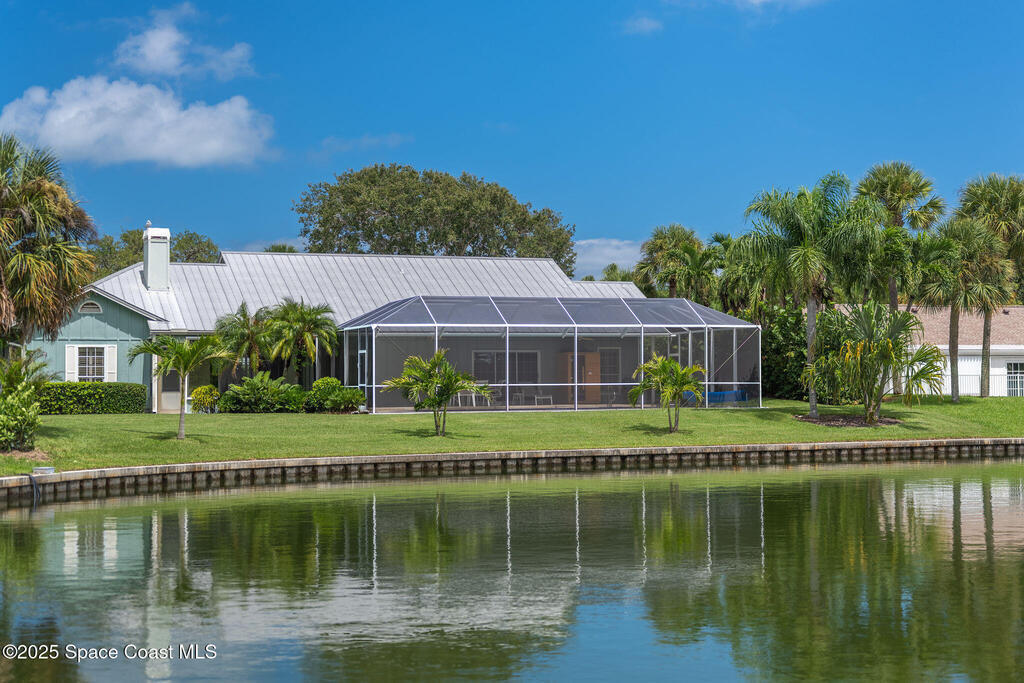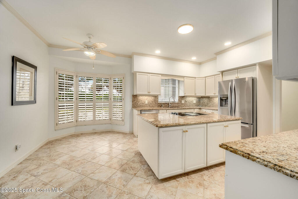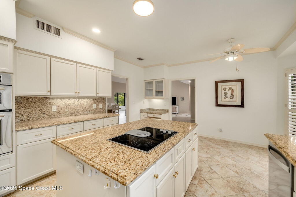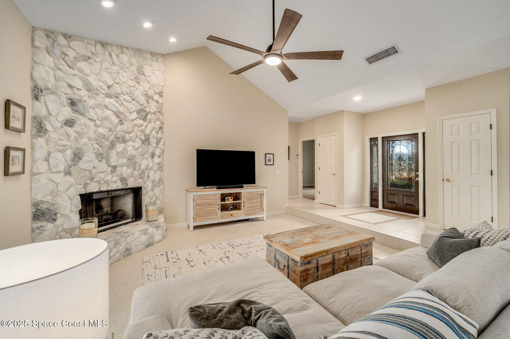 Nestled in the gated community of Cache Cay along the Indian River Lagoon, this meticulously maintained 3BR/2.5BA home blends elegance and comfort. The expansive kitchen offers granite counters, island cooktop, wall oven, and off-white cabinetry. French doors open to a screened pool, patio, & sauna. A sunroom/office, white stone fireplace, crown molding, recessed lighting, and wood & tile floors add charm. The split floor plan ensures privacy, with a two-car garage for convenience. Minutes from the Atlantic and Ocean Drive's dining and shops, this residence captures the best of coastal living.