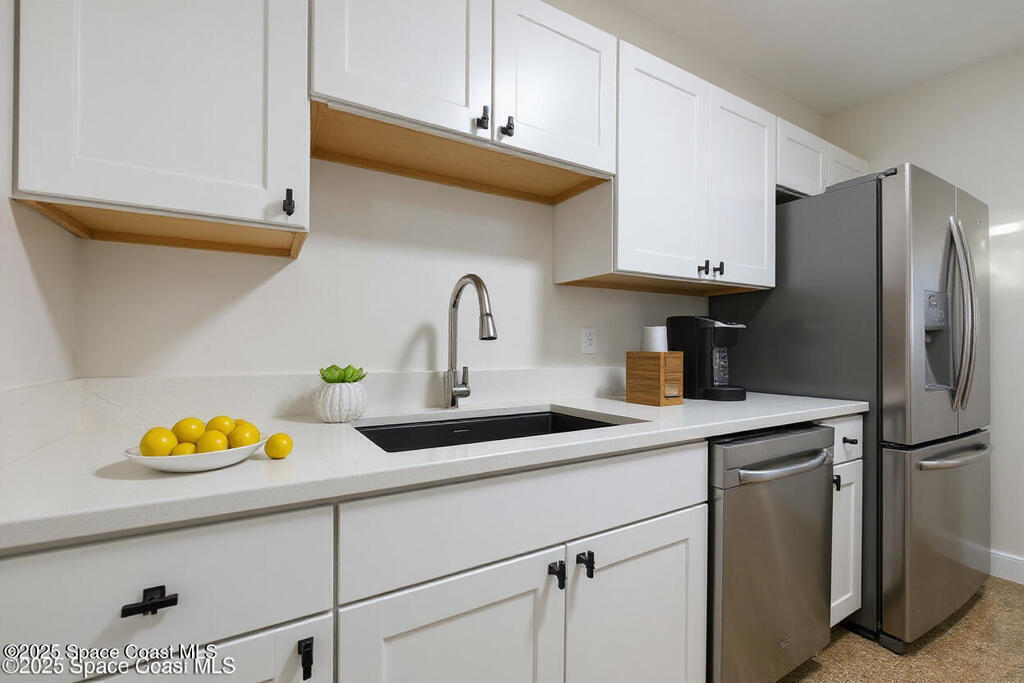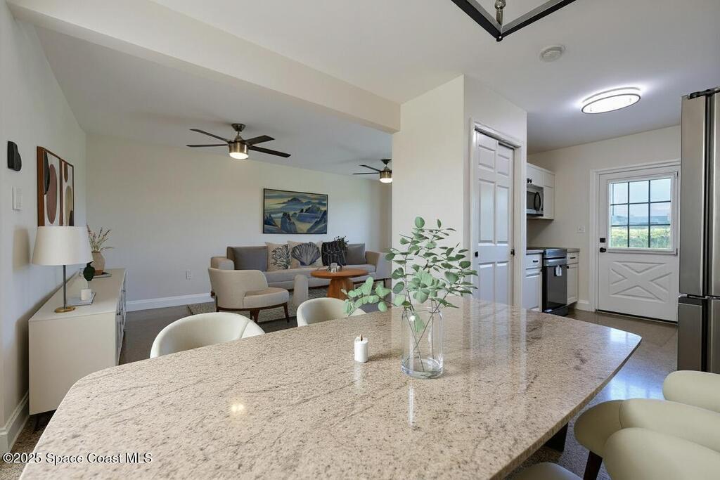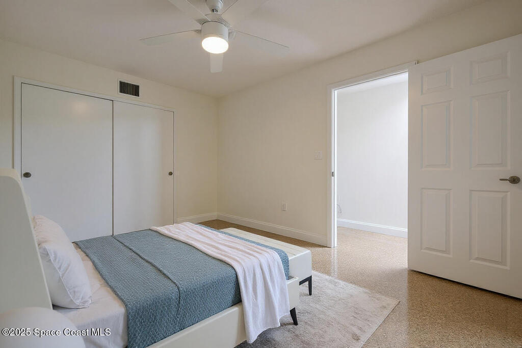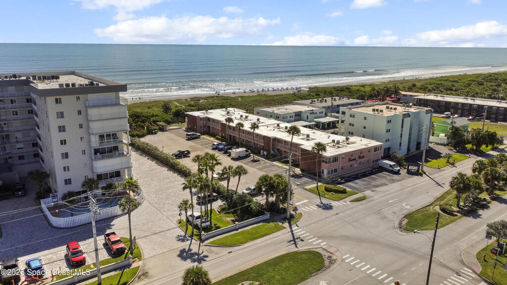 This beautifully updated condo is steps to the direct access to pristine sands, perfect for a morning swim. You are just steps from local shops and restaurants, Ron Jon Surf shop, the pier and other attractions offering the best of both relaxation and convenience. This one bedroom features brand new appliances, newer electric panel and central A/C unit. Washer and dryer are included. Polished terrazzo in excellent condition makes this a one of a kind unit. Kitchen has new cabinets and beautiful quartz countertops. Bathroom was completely renovated. HOA includes: cable, sewer, maintenance, pest control, trash and water. it also offers the convenience of being on the first floor for the elderly or pet owner. No special assessments pending and no milestone inspections to worry about as this building only as 2 stories.