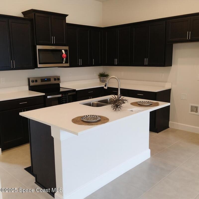Welcome to this stunning 4-bedroom, 2-bath home where style and comfort combine to offer a bright, open, split layout perfect for relaxing or entertaining. The heart of the home is the kitchen, featuring sleek stainless steel appliances, ample counter space, large island, and a large pantry with double doors--perfect for culinary adventures and entertaining. The open living and dining areas extend to a spacious covered porch, inviting you to soak in Florida's sunshine and breezes. The split-bedroom layout ensures privacy, with a serene owner's suite that boasts dual vanities, tiled floors, separate shower, a soaking tub, and a private water closet. Adams Homes feature, as standard, taller windows, 2 ceiling fans, LED lighting, seeded glass fixtures, lever handle door knobs, 5 panel doors, 5'' baseboards, and vaulted ceilings. All homes in St. John's have in-ground irrigation, city water and city sewer. Wells are provided for lawn care.