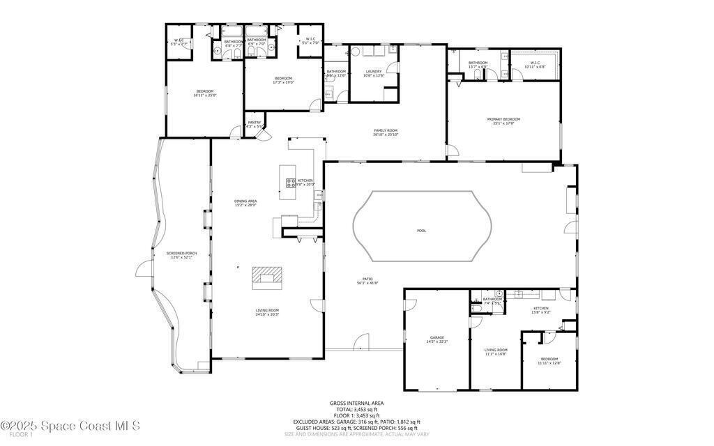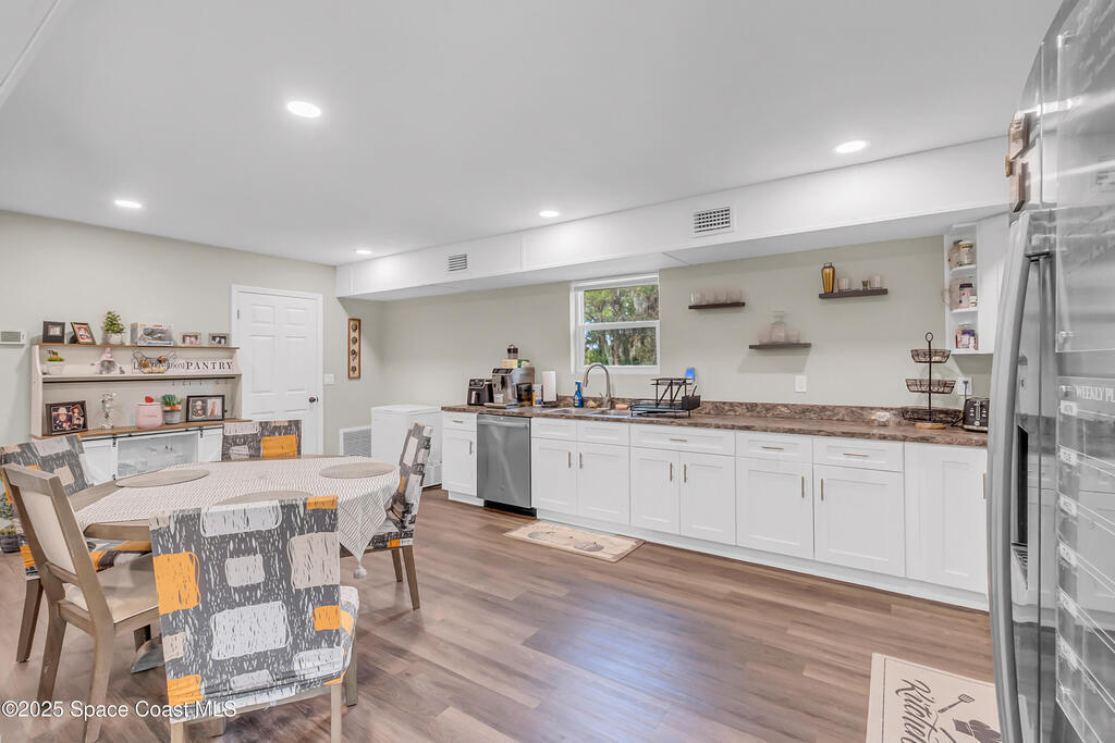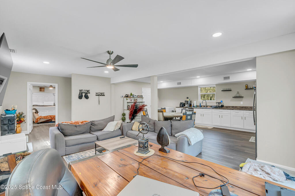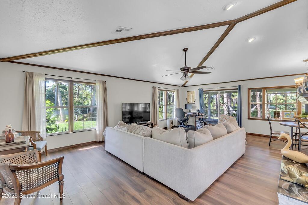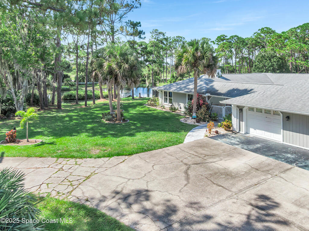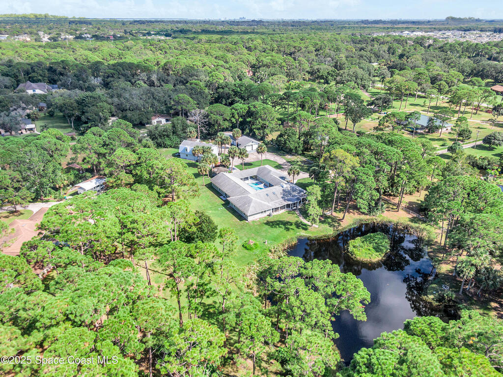 2 HOMES-2.5 ACRES-ENDLESS POSSIBILITIES!! Main home has 4240 SF, 3 bdrms each with their own en-suite bath and walk-in closets. Features include a spacious and open floor plan, perfect for entertaining. Recently remodeled kitchen with white shaker cabinets, quartz, SS appliances and huge island. The In-law suite is next to the main home with 1/1 and small kitchen. Guest home is almost 2100 SF with 4/2/2. (tenant in place mo. to mo.) There are 7 garages for boat, RV storage + workshop. Incredible sunsets overlooking the private pond, or view the courtyard pool (re-surfaced in '22) from anywhere in the home. Outdoor screened lanai and grilling area, flag lot and private natural foliage. Roof updated in '18, new AC '22, new luxury vinyl floors in main living areas and 2 new septic tanks '22. This truly versatile estate has so much to offer with the income potential and multi-generational living opportunities for extended families. Close to the KSC and easy access to the beaches! no HOA!