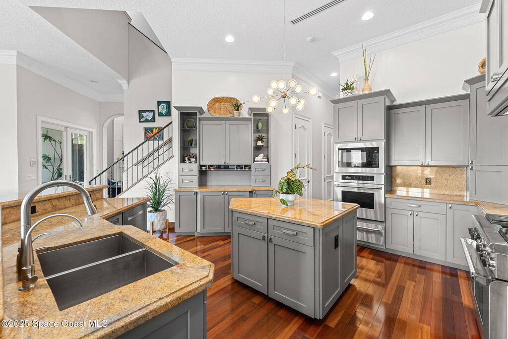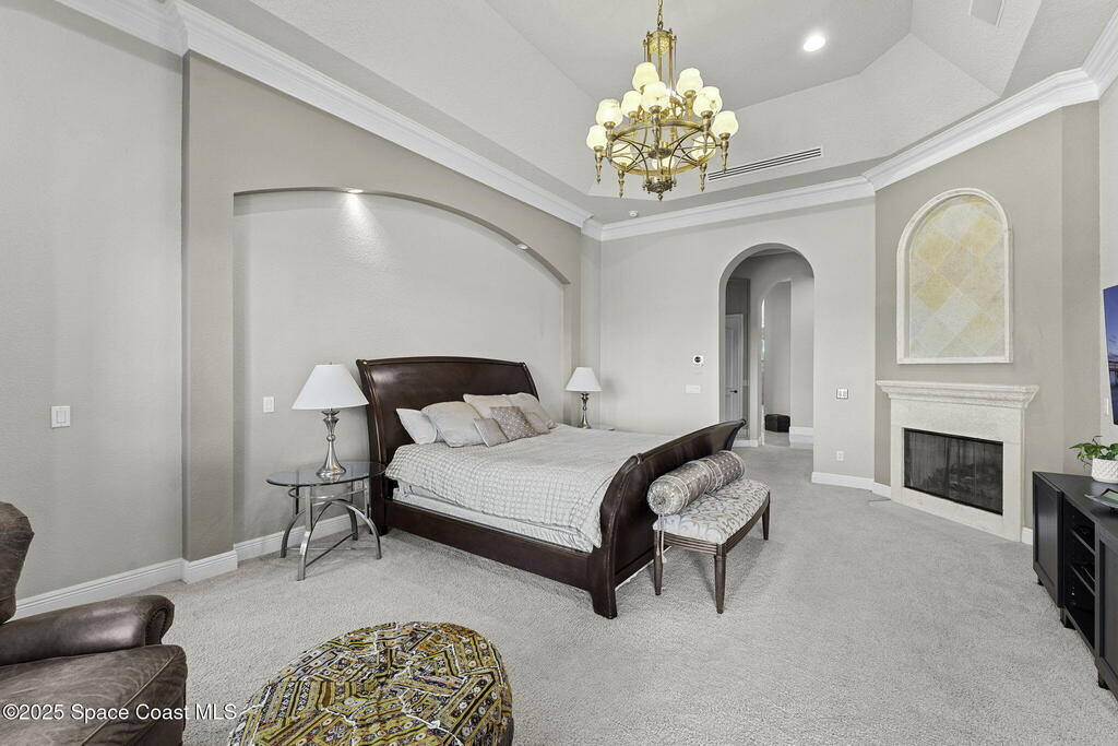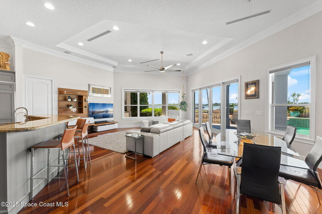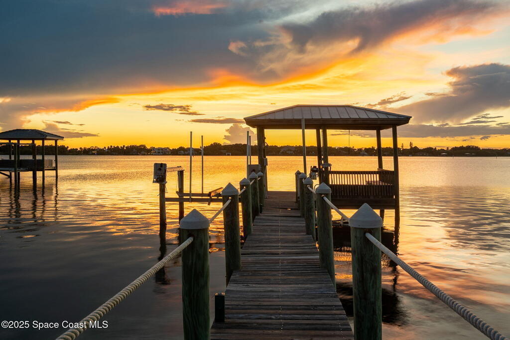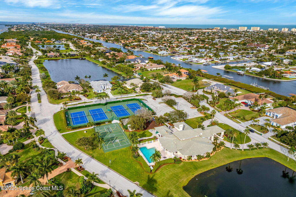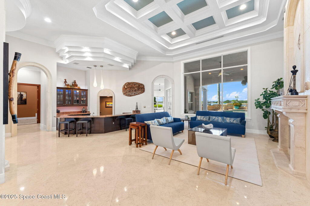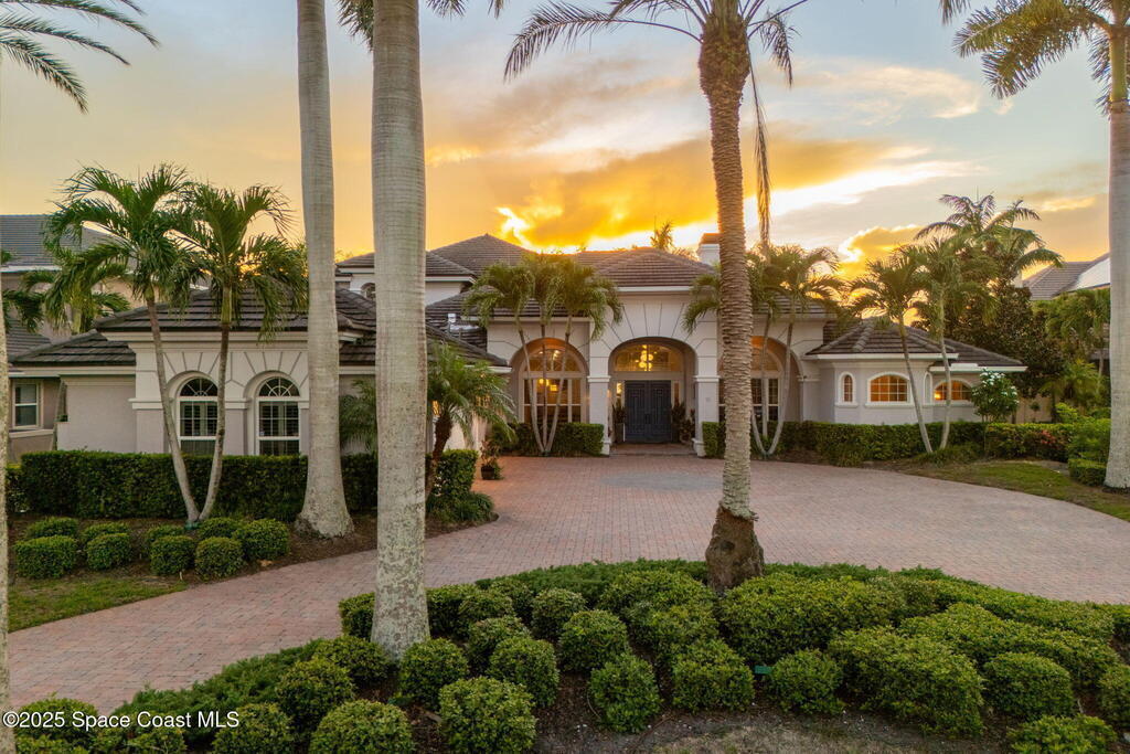 This rare Lansing Island estate defines waterfront luxury w/ nearly 6,000 sq ft on over 1/2 acre along the Banana River. Behind the gates of this exclusive enclave, craftsmanship reigns supreme w/ marble & wood floors, travertine, coral stone castings & solid-core doors. Designed for entertaining & retreat, the home offers 4 BD, 5 full & 2 half BA, multiple gas FP, a soaring vaulted foyer & a sweeping floor plan flowing from a formal LR w/ river views to a dining hall w/ full bar & pool table. The chef's kitchen boasts river vistas, granite, Thermador gas island stove, butler's pantry & morning kitchen w/ pool access, while a state-of-the-art theater enhances nights in. The primary suite is a sanctuary w/ sitting rm, FP, wet bar, dual closets & spa bath w/ jetted tub, walk-in showers & coffered ceilings. Upstairs features a loft, bonus rm & guest suites w/ balconies. Outdoors, enjoy your private pool, cascading spa, lanai & summer kitchen all overlooking the river.