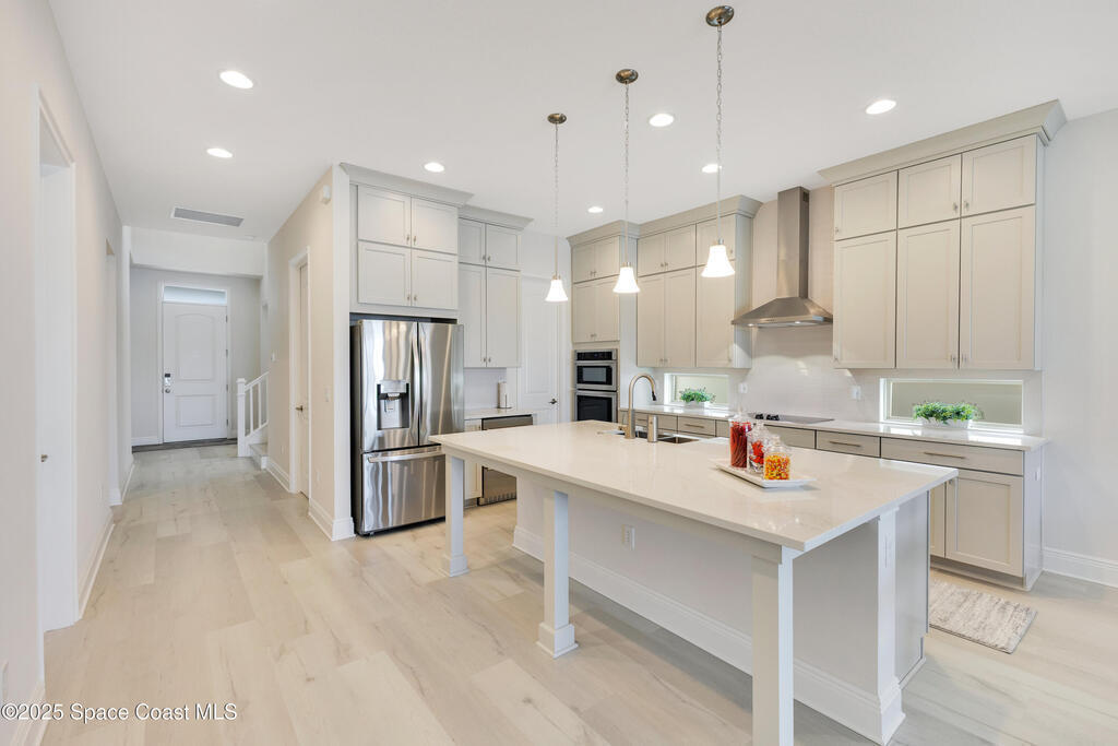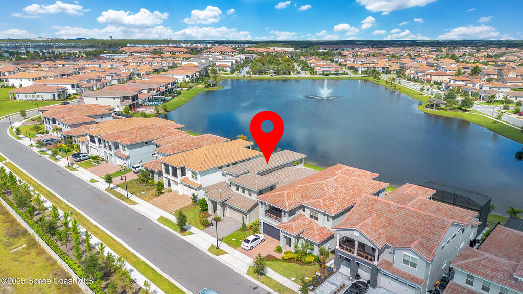 Welcome to luxury living in the heart of Lake Nona's most coveted gated community which includes the Eagle Creek Golf Club. This beautiful home has plenty of room to live and entertain. The chef's kitchen contains a large kitchen island, Quartz countertops and walk in pantry. The open concept living area is perfect for entertaining. The breathtaking view of water outside the expansive sliders lets lots of natural light into the living room, kitchen and dining. The first floor has a huge primary bedroom with large windows with a fabulous view of the water. The primary bathroom includes double sinks, and a huge walk in shower with 2 showerheads. The first floor also has a guest bedroom, guest bathroom and a mudroom. The second floor has 3 bedrooms and 2 bathrooms. The media room and covered porch has fabulous views of the water and fountain. The garage has a separate workshop. Close to Lake Nona, Medical City, theme parks, Orlando airport, shopping, dining and highly rated schools.