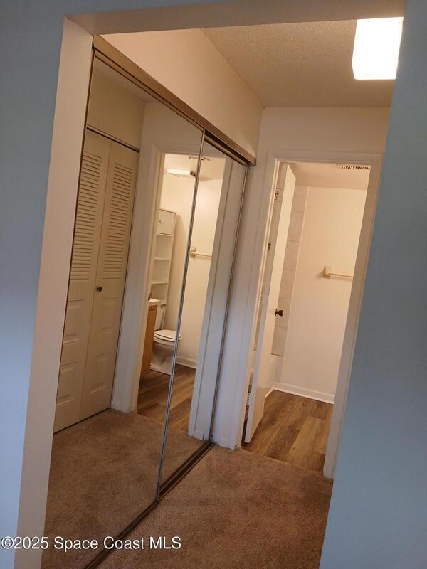 SELLER WANTS ME SOLD!! I am a beautiful 2BR/2BA second floor condo in central Palm Bay location. New plank flooring and carpeting in the bedrooms enhances this well-maintained unit. View from the screened balcony is to the west so you don't miss any glorious sunsets. HOA fee covers everything except your FPL bill. Great value for your dollar, be you a 1st-time buyer, a retiree, or an investor.. Solid block construction with block walls between each unit and cement between the floors. New A/C May 2025.