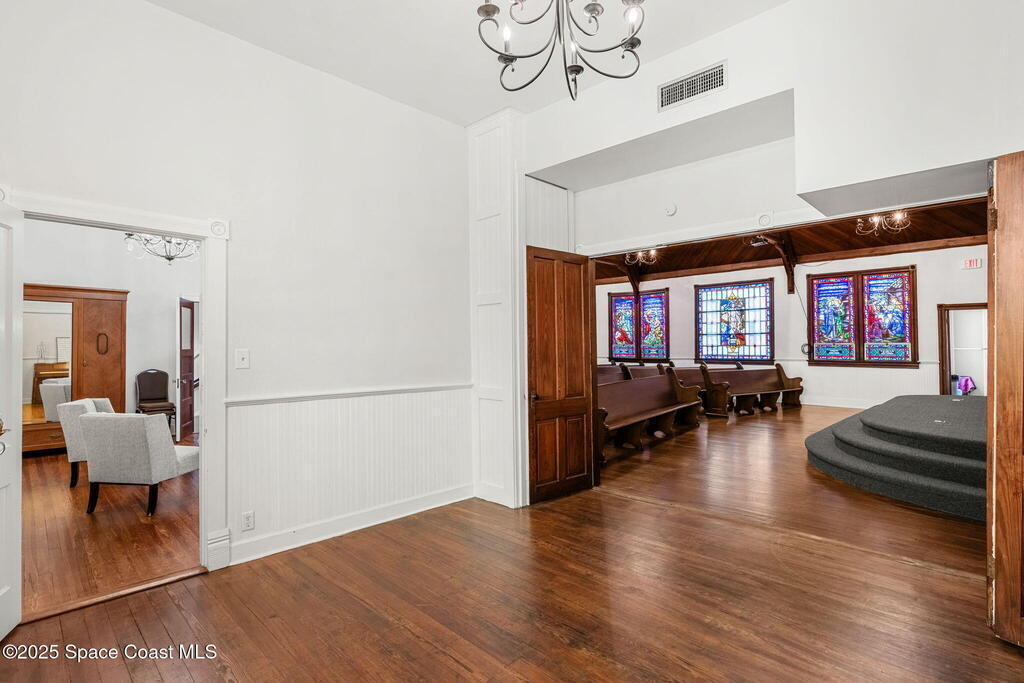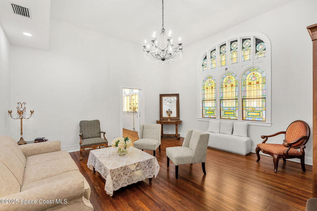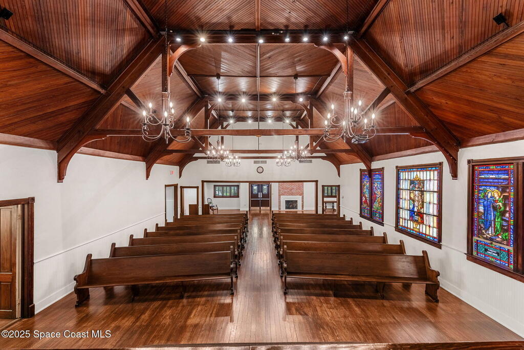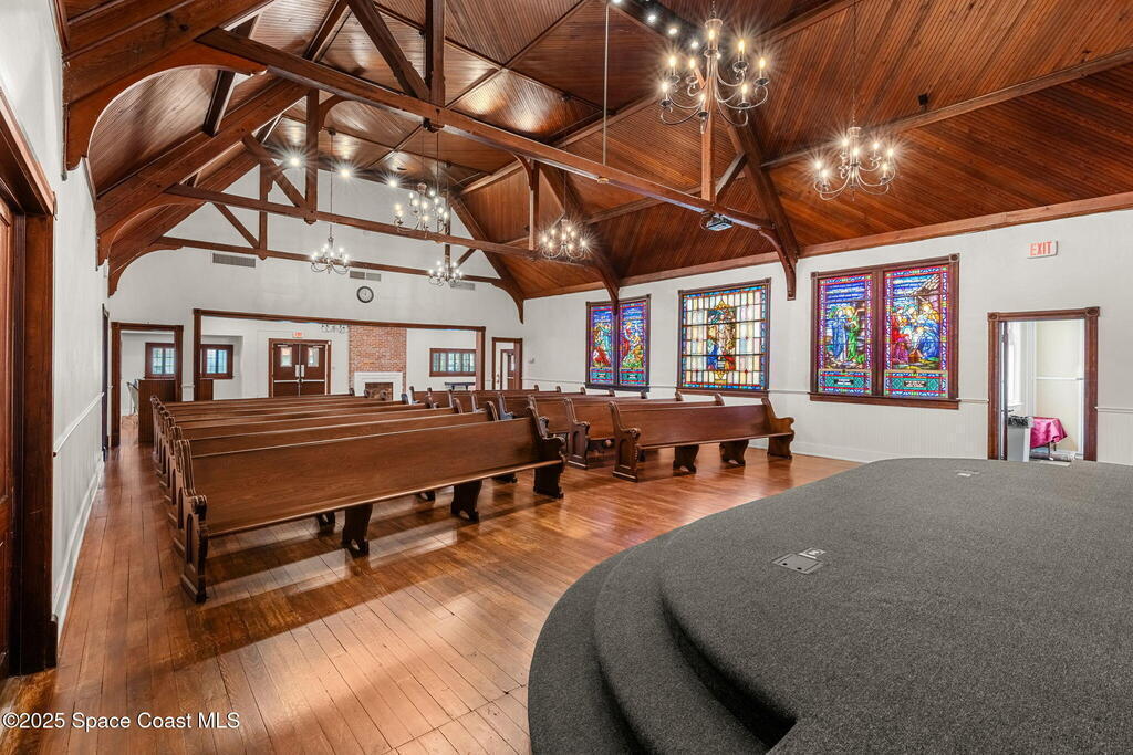 An enchanting landmark property in the heart of vibrant Downtown Melbourne. On just over 1/2 acre, 9000 sq ft of historic character, stained glass windows, hardwood floors,soaring wood ceilings, exposed beams. In addition to the historic structure and blending charm with functionality there is a modern event hall, commercial kitchen,5 bathrooms,offices and several flexible spaces throughout. Zoned C-2. Current use is event venue/church but this property supports a variety of uses: restaurant, music venue, retail, offices,future redevelopment potential.No historic restrictions, building can be modified or removed for redevelopment of the lot.The 2024 est.traffic count is 37,750 vehicles daily.In addition to the private parking on the property,there is a City of Melbourne 1 acre parking lot less than 300 feet away(approx. 120 to 140 cars) with direct sidewalk access and separate alleyway access to the building.History, presence and potential in one of Melbourne's most thriving districts