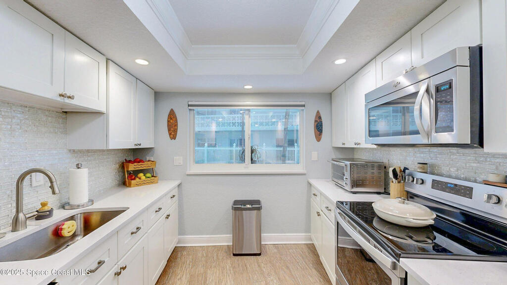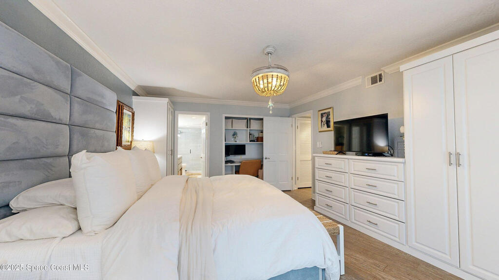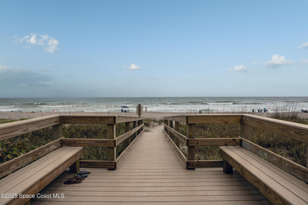 Welcome to your dream coastal retreat! This fully furnished 3-bedroom, 2-bathroom oceanfront condo at The Mark in Cocoa Beach offers the perfect blend of luxury, comfort, and peace of mind -- just steps to your private beach!Step into a beautifully updated home featuring coastal modern finishes throughout -- from light, driftwood-style flooring to crisp white cabinetry, quartz countertops, and chic, beach-inspired decor. The open-concept living space flows seamlessly onto a spacious balcony where you can relax and listen to the waves roll in, or watch a rocket launch!Each of the three bedrooms is generously sized with plenty of closet space, and the two full bathrooms are elegantly remodeled with contemporary fixtures and spa-like touches. The primary suite offers private balcony access, making every morning feel like a vacation.Storage is no issue in this well-designed condo, with ample closet space throughout!