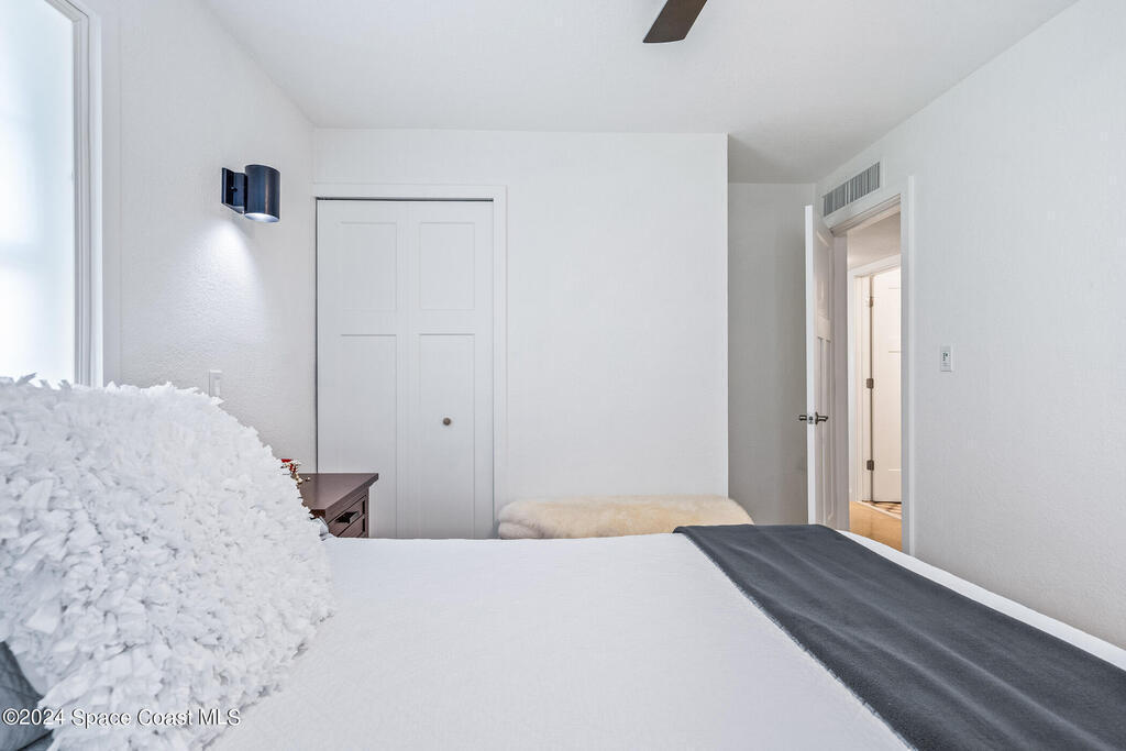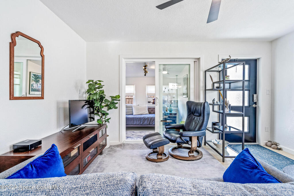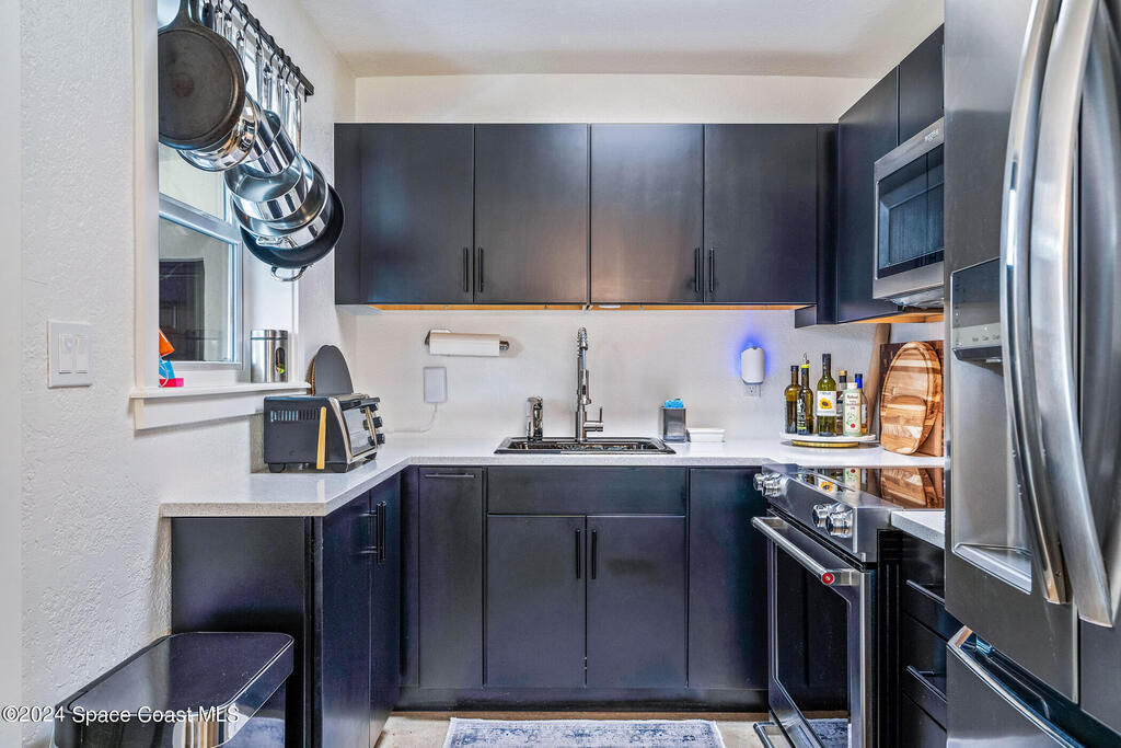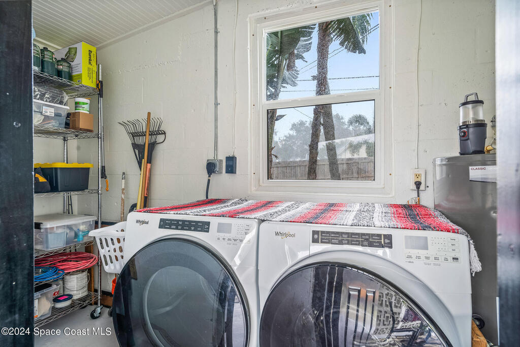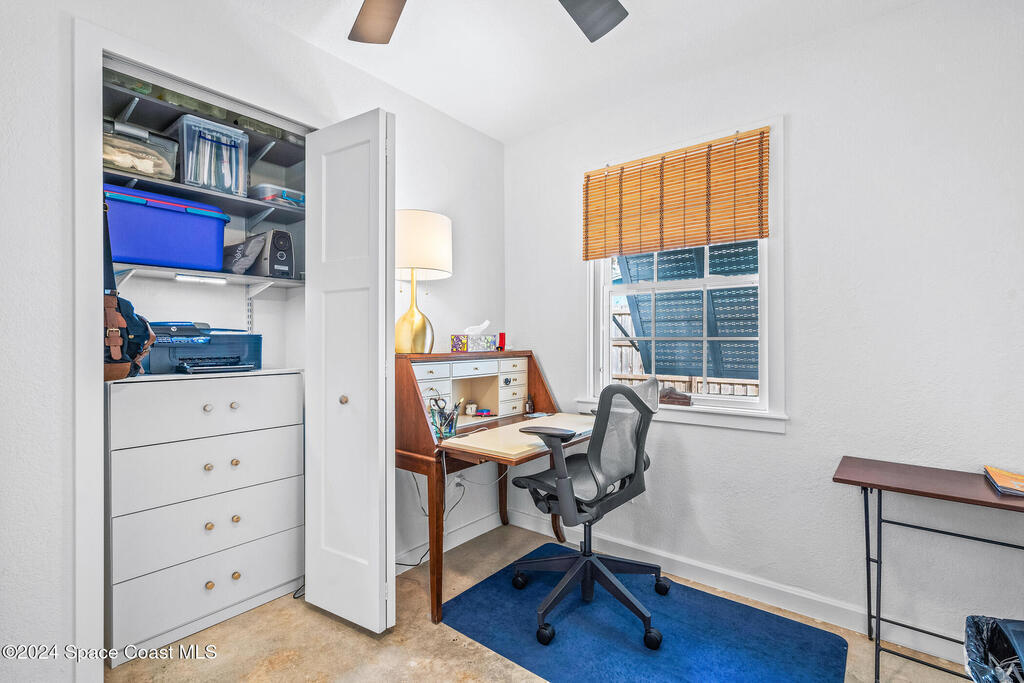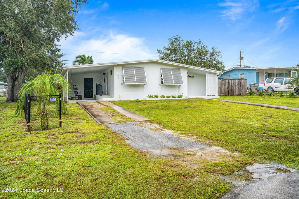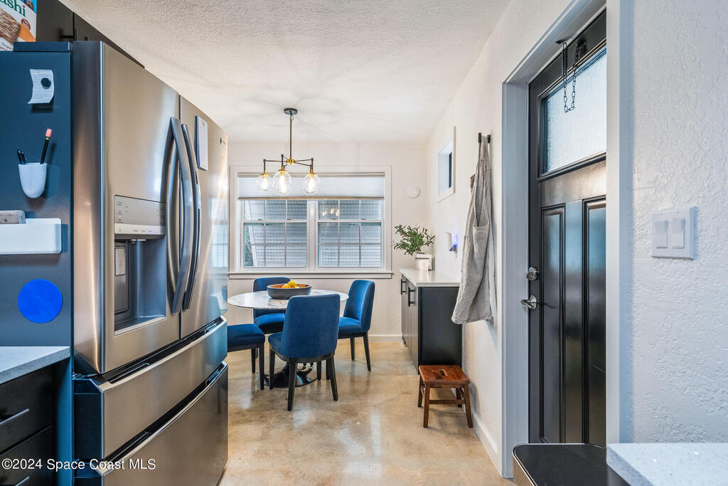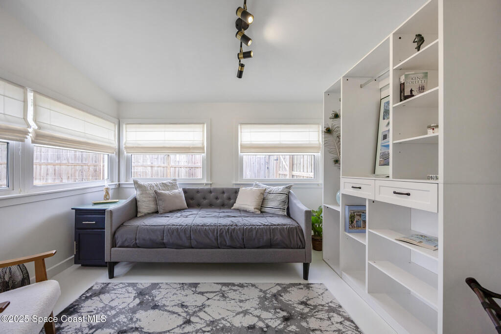 Artfully restored mid-century modern home blending timeless design with modern updates, perfect for downsizers, snowbirds, or STR investors. A newer standing seam white metal roof, impact windows/doors, & rare A-1 insurance rating provide peace of mind & lower insurance costs. Inside, polished concrete floors, vintage-inspired lighting, and custom trim showcase the professional remodel. The chef's kitchen features quartz counters, high-end appliances, Thomasville cabinetry, and a wine cooler drawer. The extended primary suite offers four closets, Indow window inserts for privacy/noise reduction, and a luxurious new bath with double vanities and oversized linen storage. The AC'd guest room adds flexible space for guests or office. Outdoors, enjoy a fenced backyard with a spa-style double shower. With updated systems, full storm protection, and stylish finishes throughout, this home offers low-maintenance living in a prime Vero Beach location.