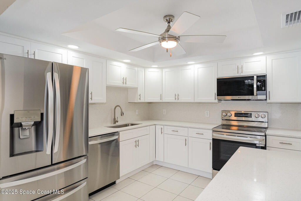 Priced to sell! Enjoy oceanfront living from this 7th-floor condo in a well-maintained community with recent concrete restoration, balconies, railings & pool deck updates already completed. Relax on your private balcony with panoramic water views, rocket launches & sunrises over a quiet stretch of Cocoa Beach. Inside, thoughtful updates include a modern kitchen with quartz countertops, custom cabinetry & new appliances, plus luxury vinyl plank floors in the primary & guest bedrooms. Both baths feature new cabinetry, quartz countertops & fixtures. Freshly painted throughout with professionally cleaned floors, this move-in-ready home has a 2023 water heater & private 1-car garage. Community amenities include oceanfront pool, clubhouse with gathering space & billiards, guest parking, car wash areas & secured lobby. A rare chance to own a direct oceanfront residence with solid building improvements, no major assessments pending & an unbeatable coastal lifestyle.